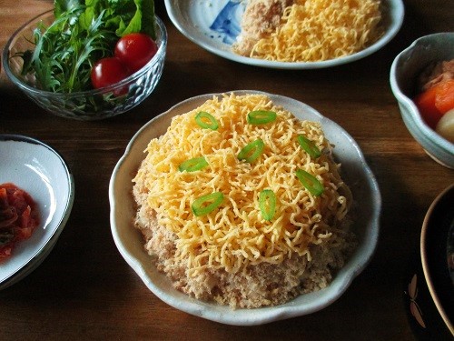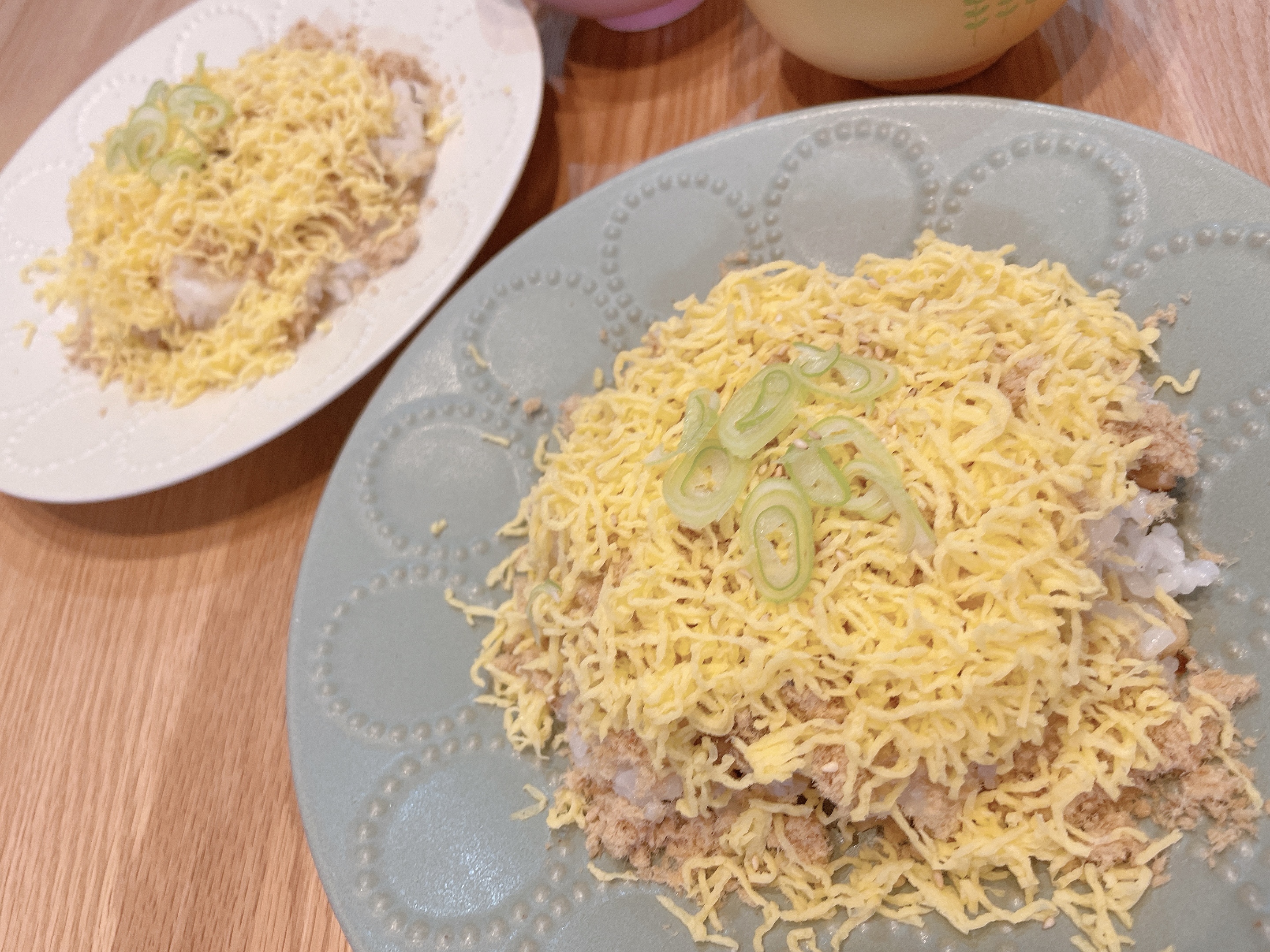 【錦糸卵】油っぽさの無い、甘さも控えめな優しいお味です。ぬるま湯解凍したにも関わらずフワフワでたっぷり、皆、気を使わずに山盛りにしていました。