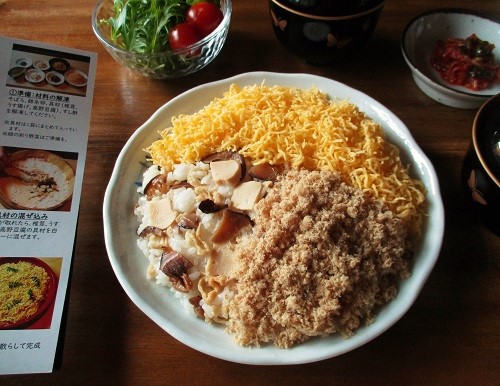 寿司酢まで調合済みで本当に炊いたご飯に混ぜるだけなので、普段は手の回らない茶碗蒸し等サイドメニューも用意する余裕が出来そうです。
