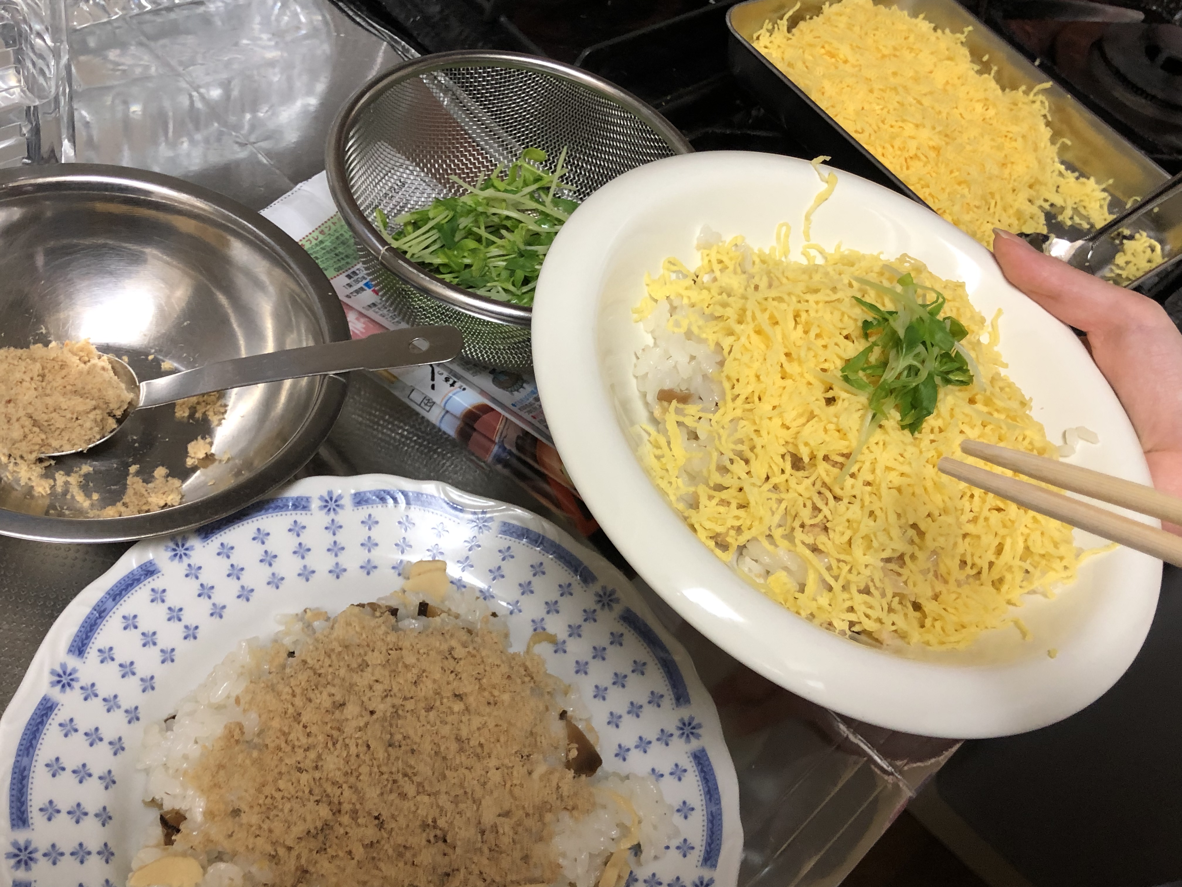 鰆のそぼろと錦糸卵は自分で用意するとしたらな量の3倍は入っていたので、寿司飯を1.5倍にしてもまだ余るほど。