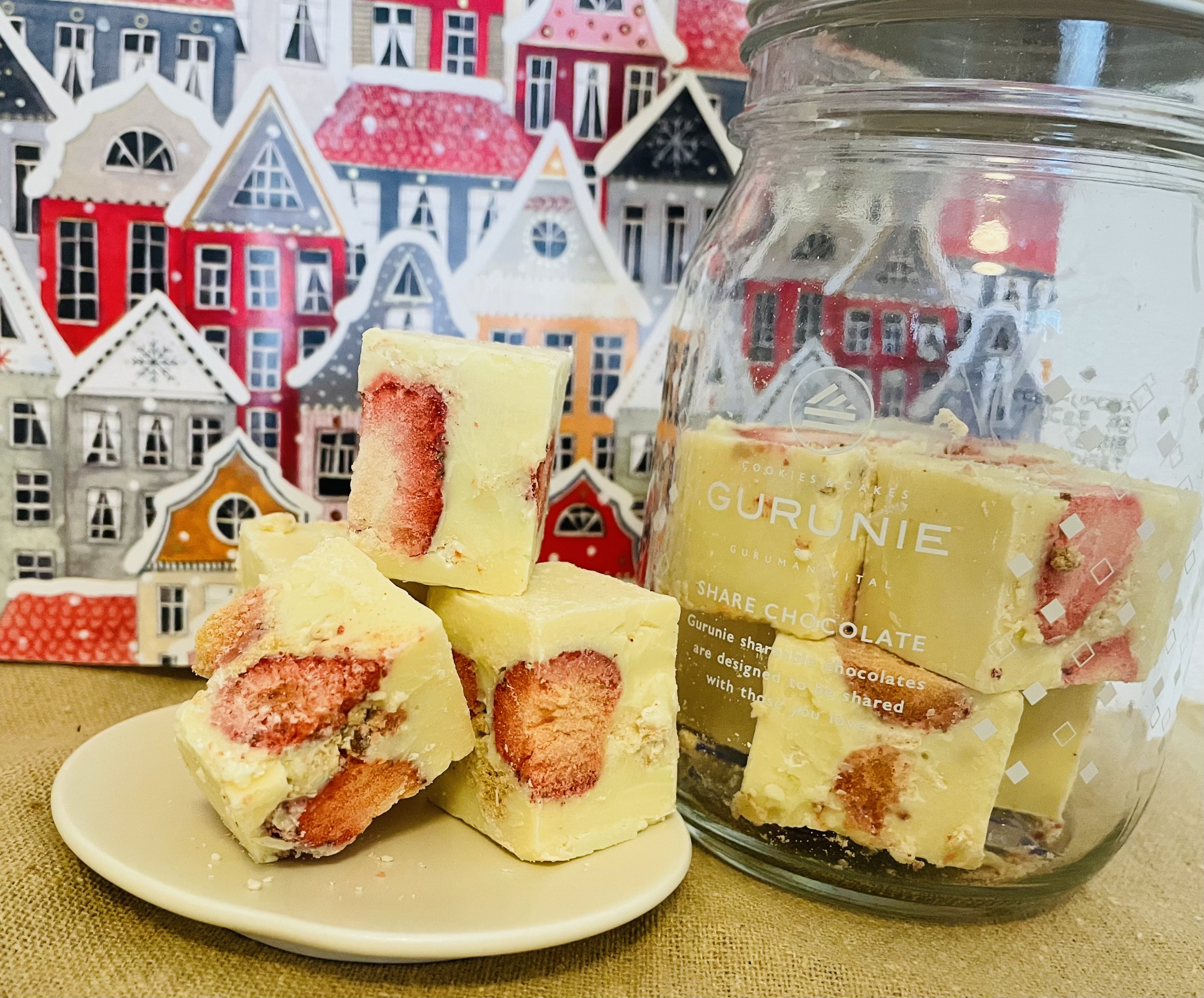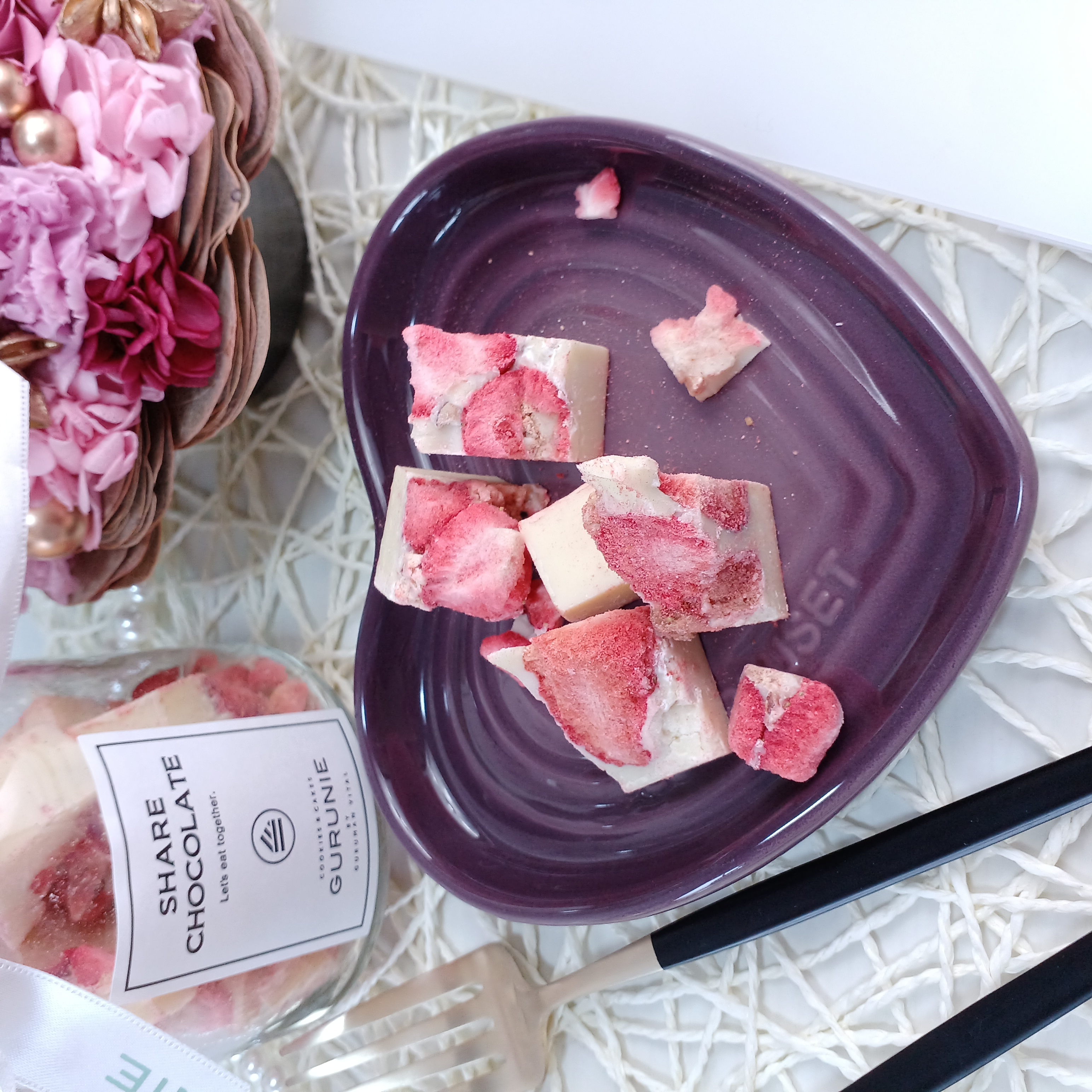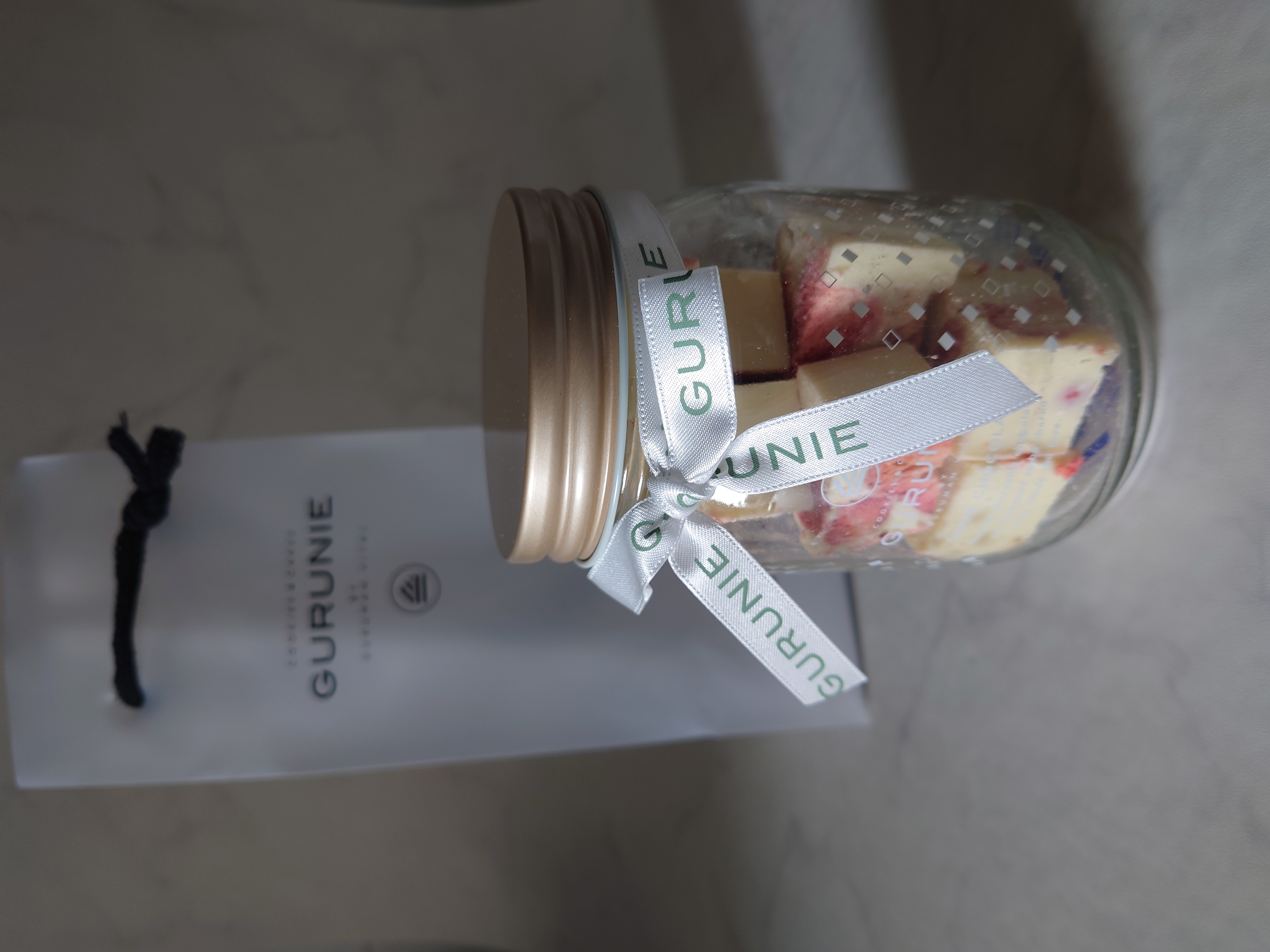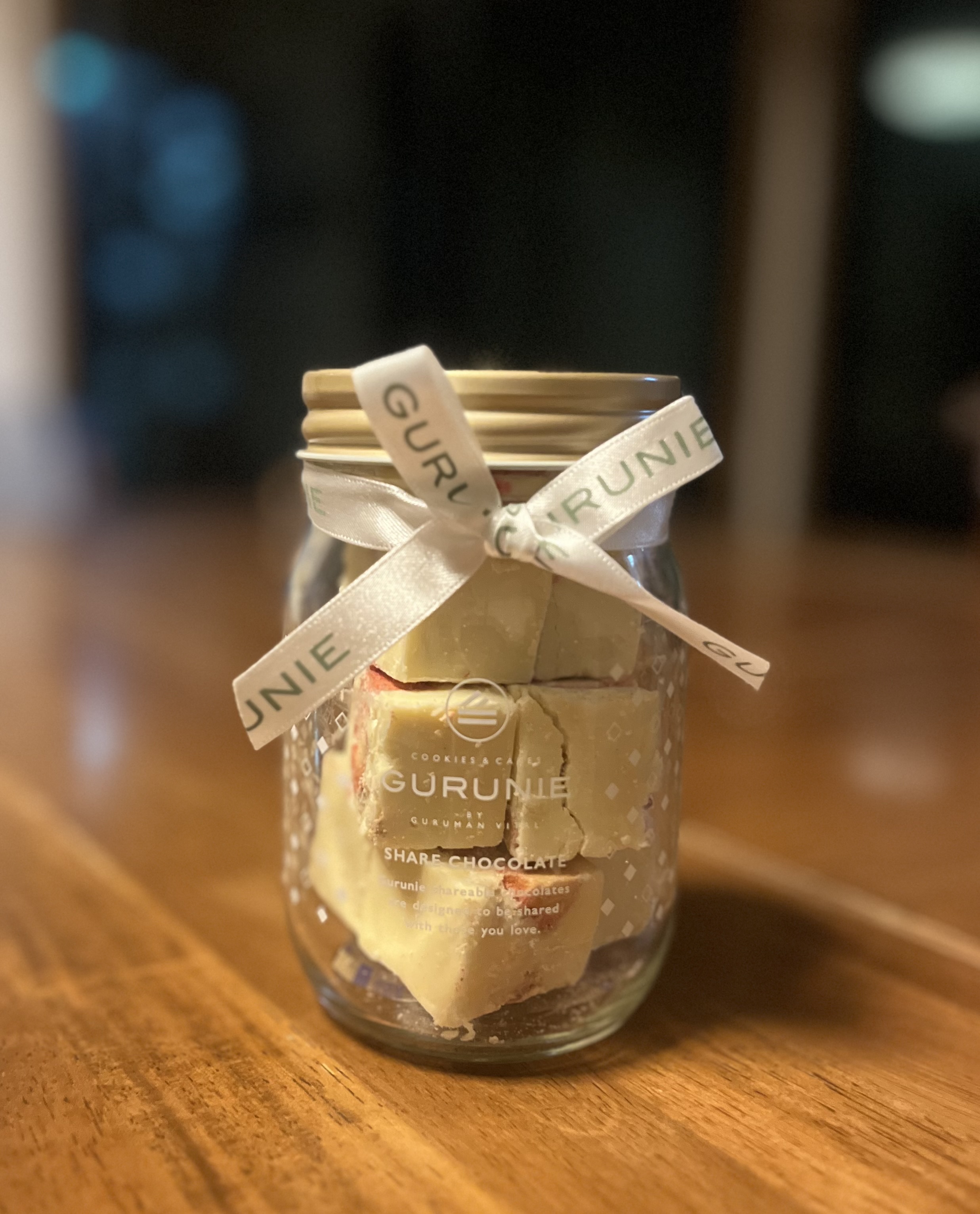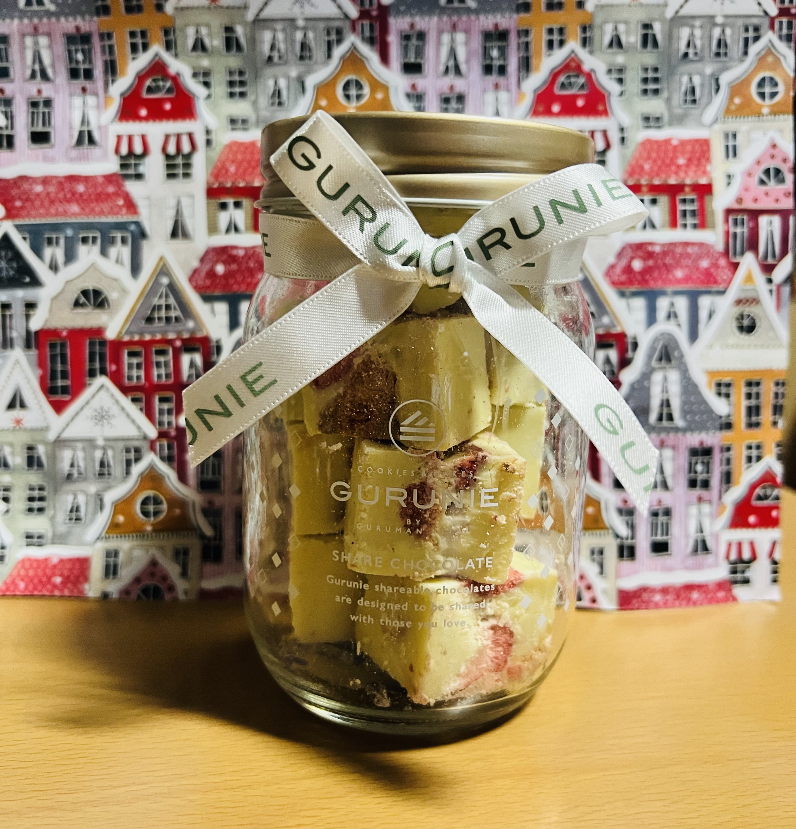 甘酸っぱいドライストロベリーと、ナッツをたっぷり入れたホワイトチョコレート。軽い食べ心地で、男性にも女性にも喜ばれてる瓶入りの贈り物にぴったりなチョコレートです。
