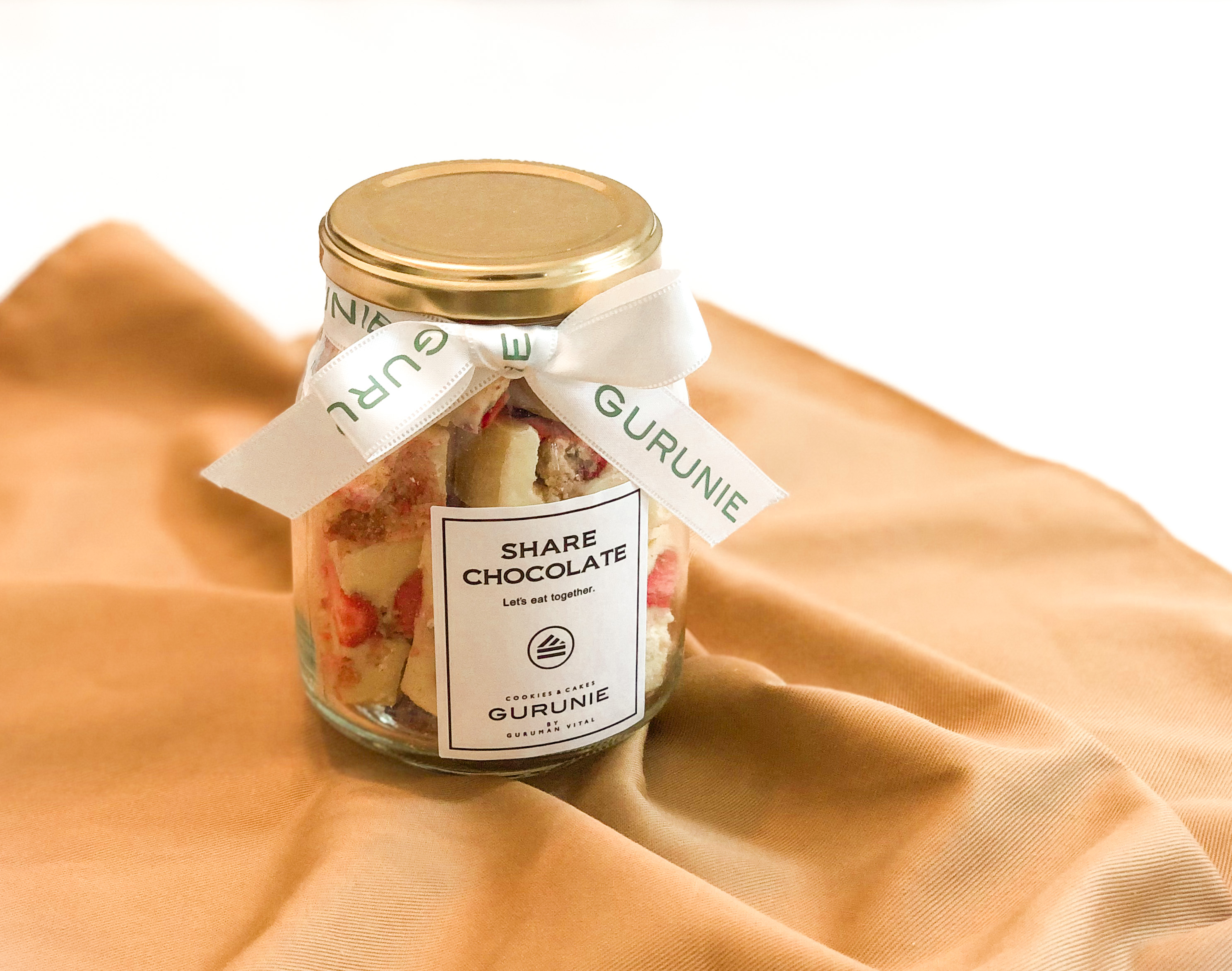 ベルギー産ホワイトチョコレートのテンパリング作業、ドライストロベリー、クッキー、ナッツを一面に敷き詰める作業、カット、瓶詰までの全工程をすべて手作業で行っております。そのため、1日に製造できる限界がありますが、その分真心こめてお作りしております。