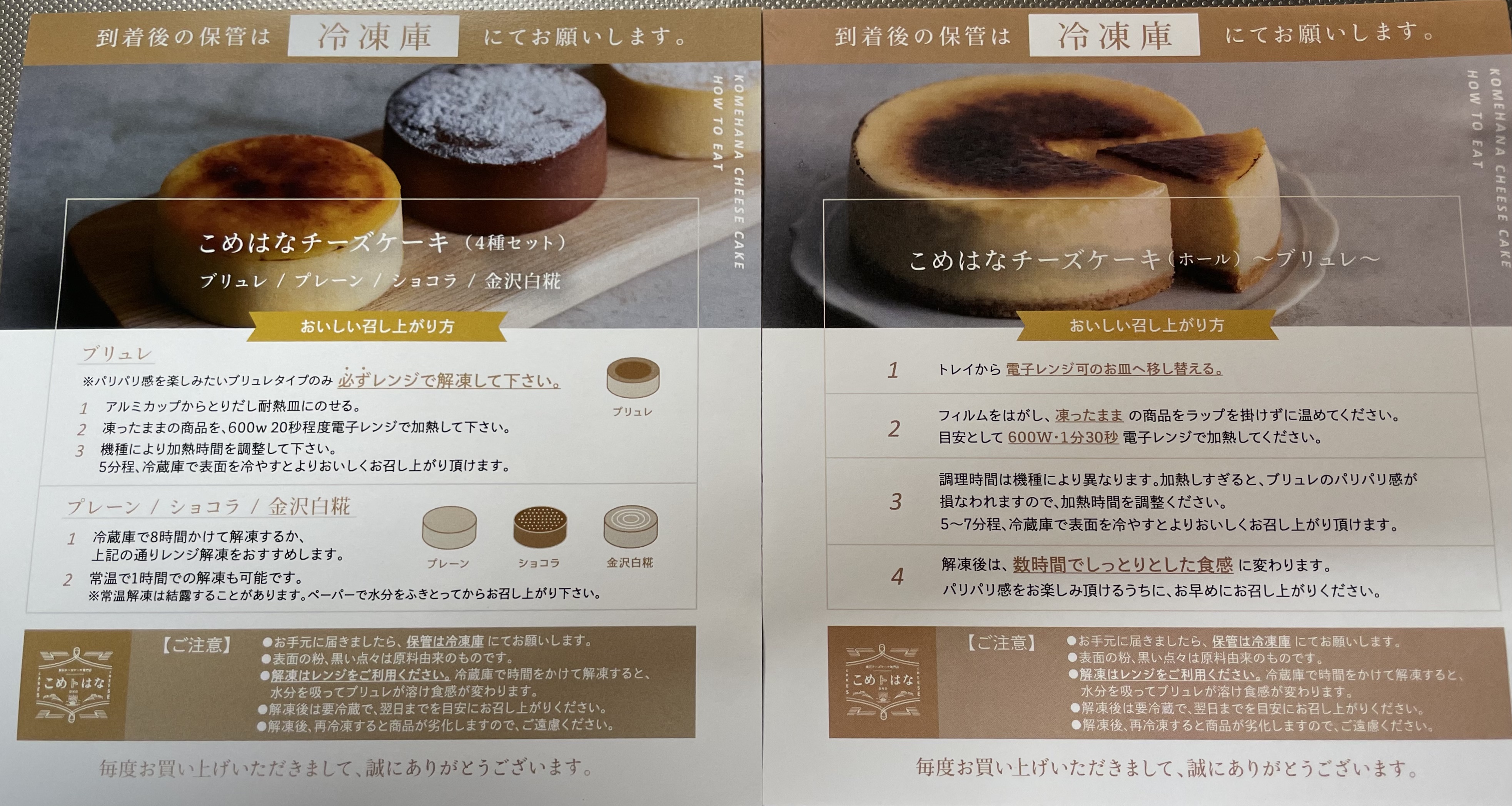 解凍方法が載った案内も一緒にお届けいたしますので、贈り物でも安心してご利用いただけます。