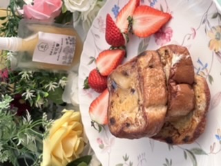 次にレーズンパンでフレンチトーストを作り、百花蜜をかけていただきました。バターとの相性もバッチリで、おいしかったです。