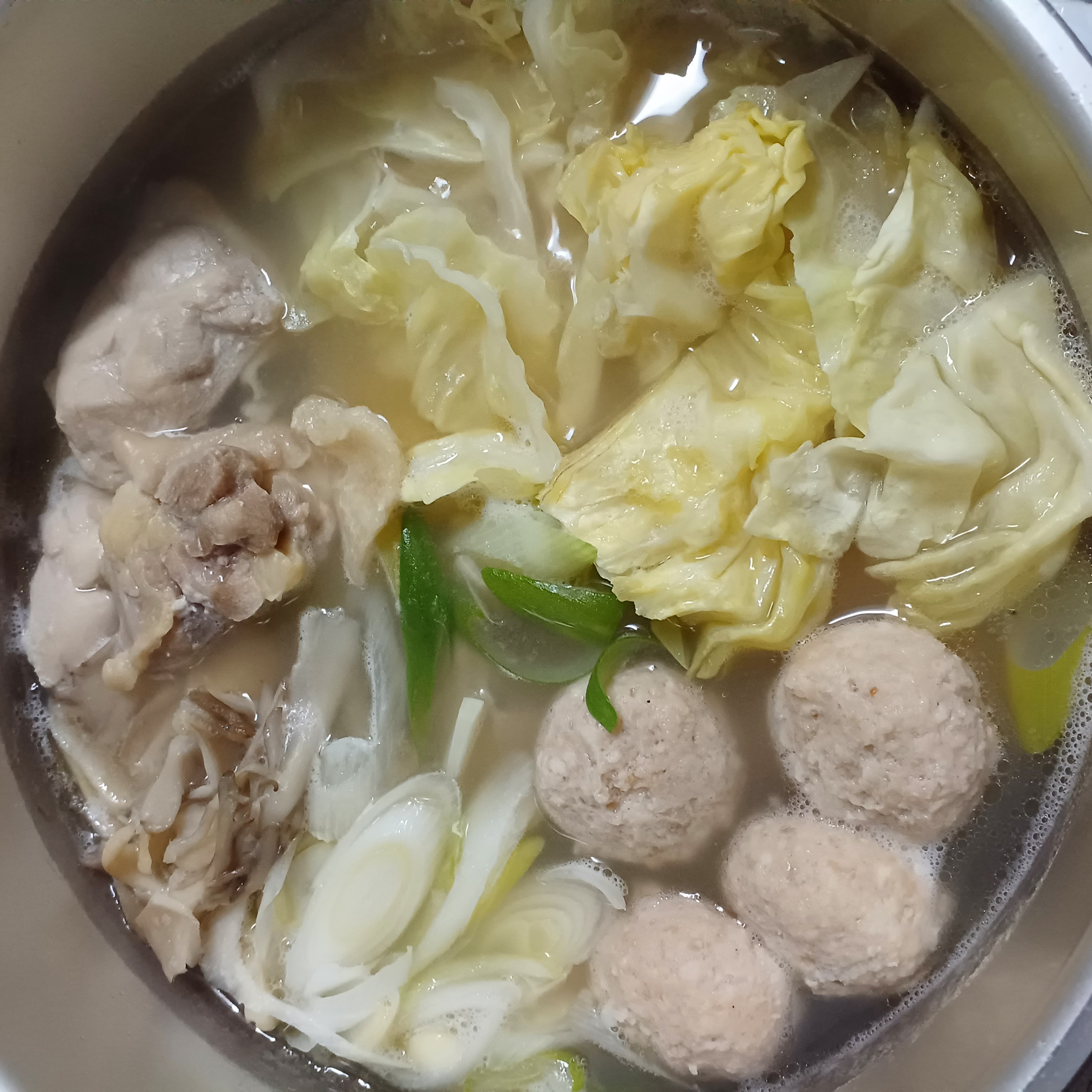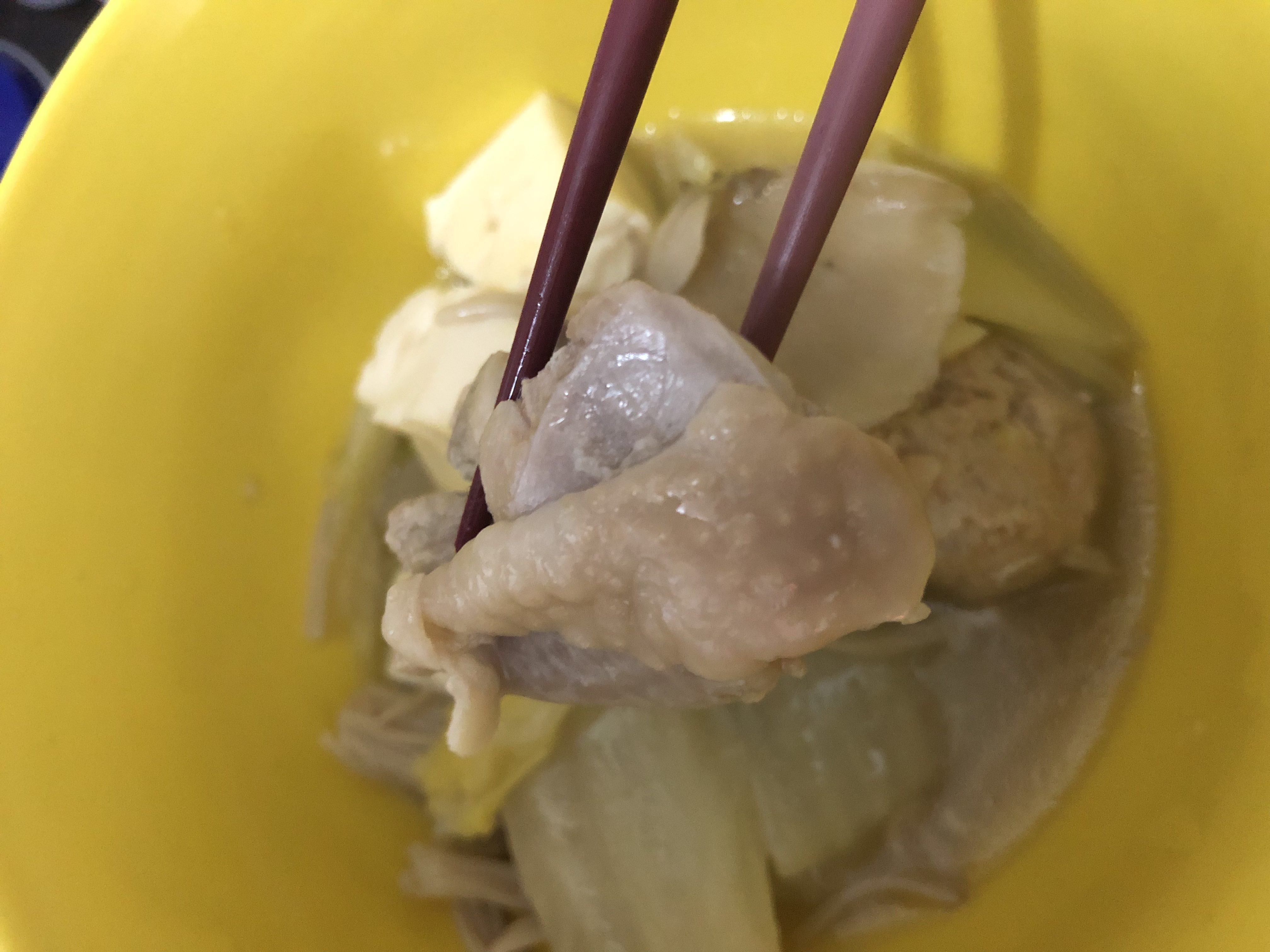 沸いたらお塩ひとつまみ入れてスープそのものを味わいます。コラーゲンたっぷりでとろみのあるお出汁がとても美味しく、コクと旨味がぎゅっと凝縮されています。
