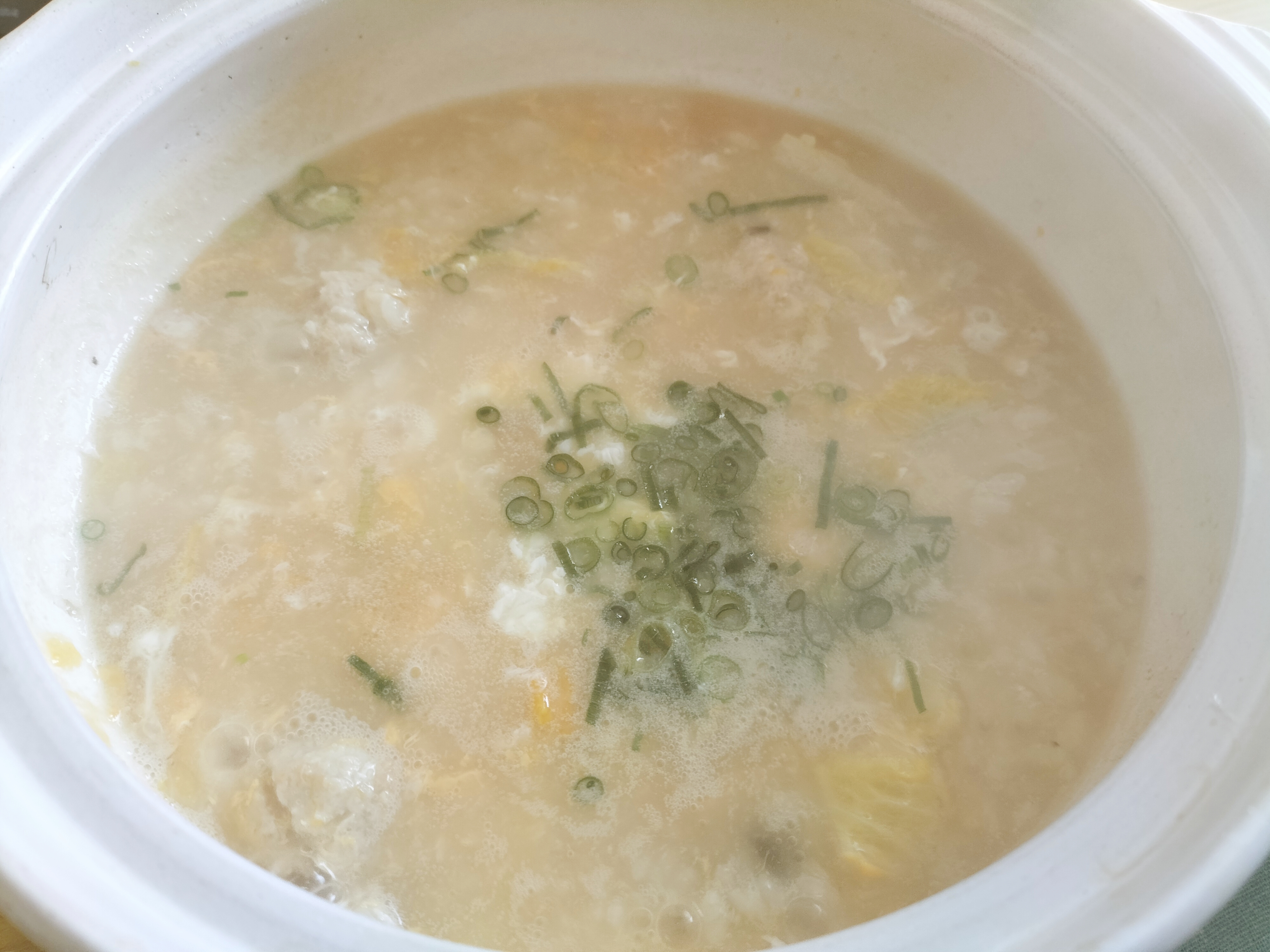 残ったスープにお米と溶き卵を入れればふわふわのたまご雑炊の出来上がり。