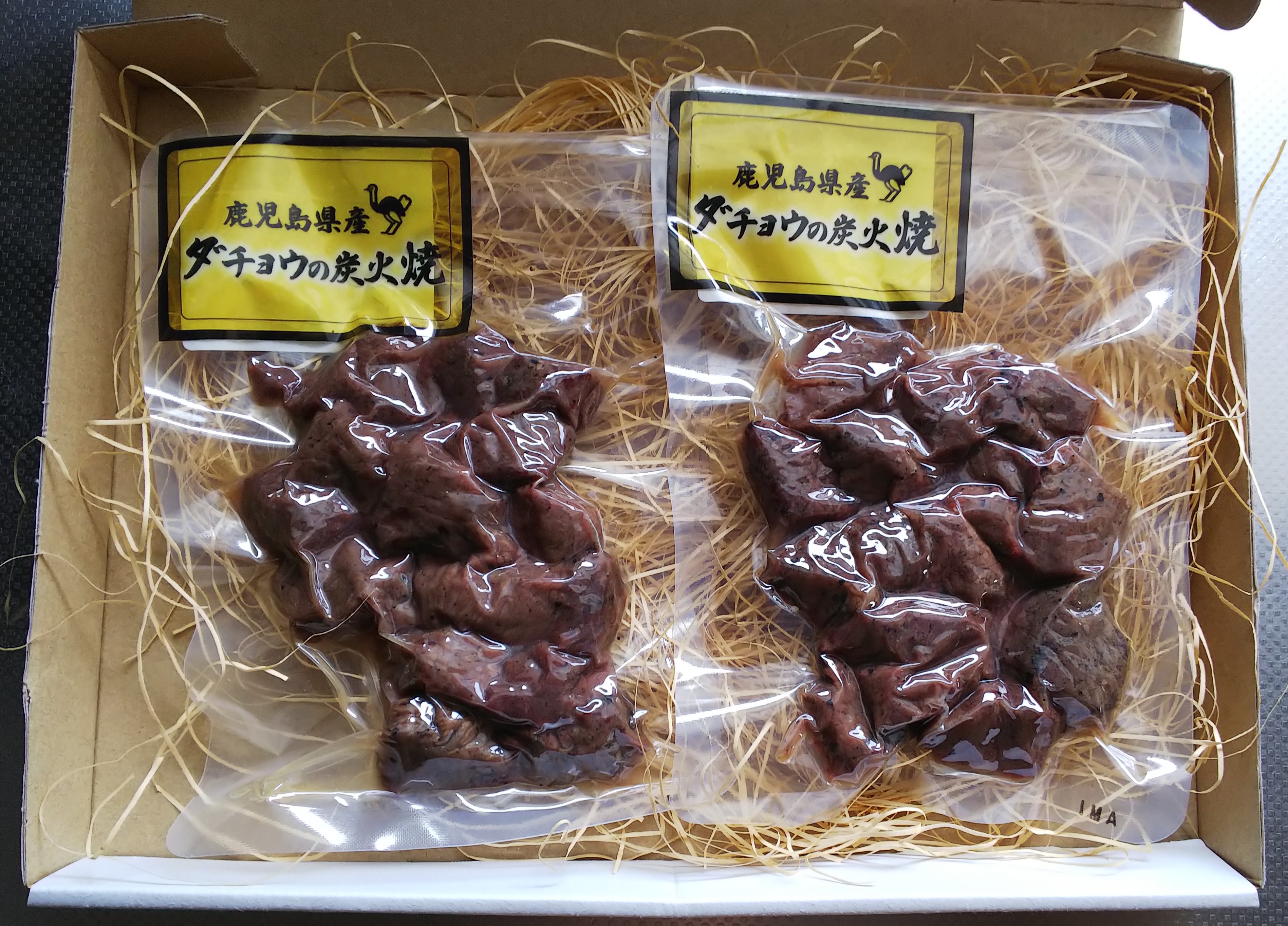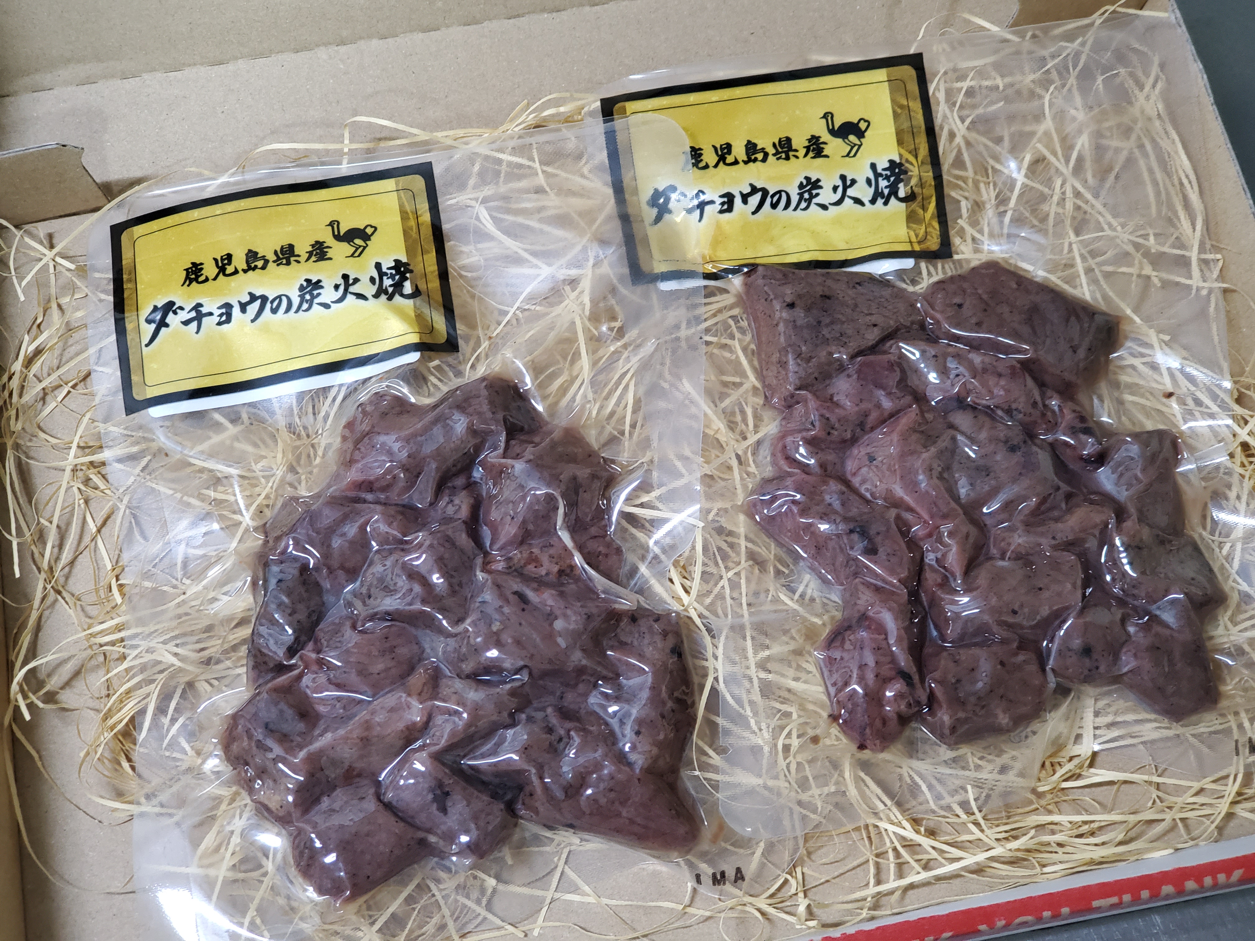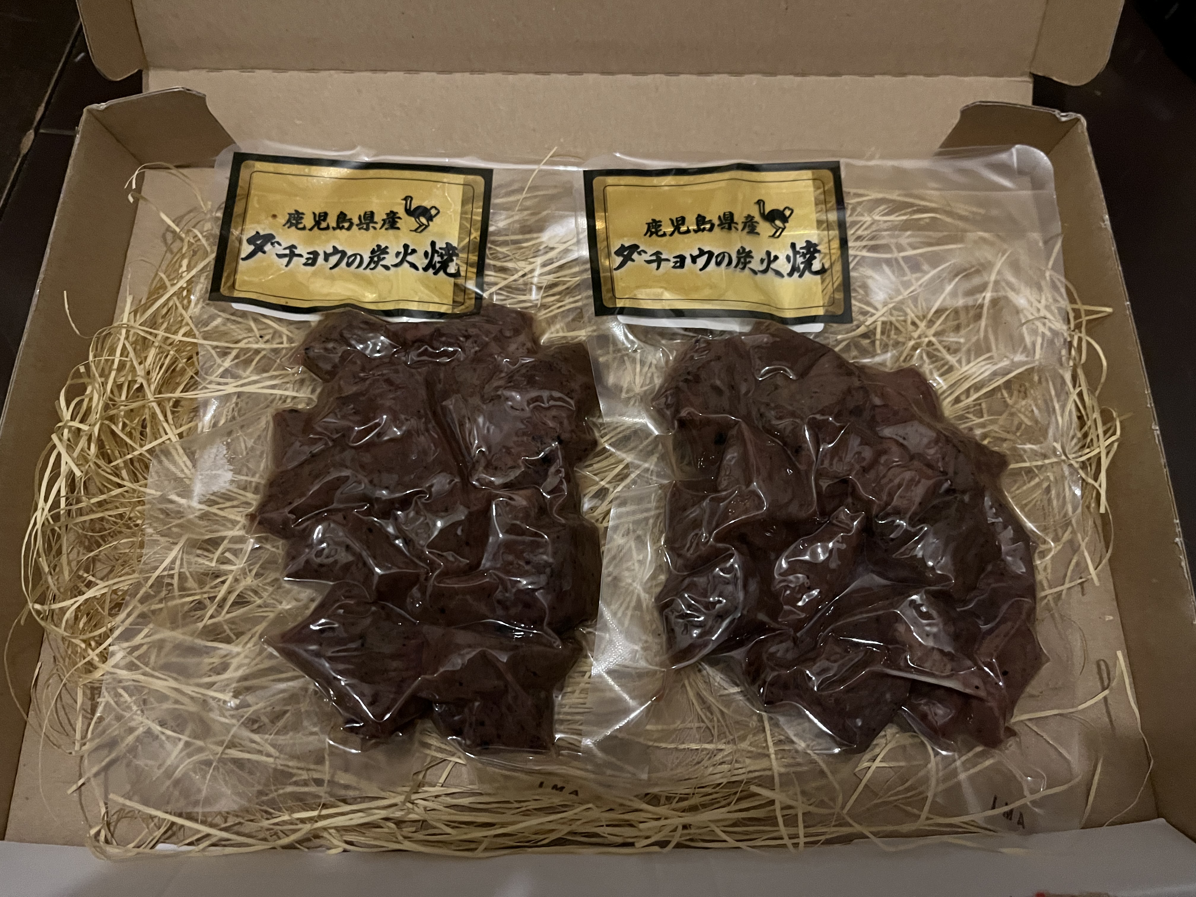 霧島市の山間で自然に近い環境で伸び伸びと育てた「ダチョウ肉の炭火焼き」です。ダチョウの肉は、脂肪が少なく、癖もなくさっぱりとした味わいです。食感は柔らかく100%赤身肉なのも特徴です。鹿児島の温暖な気候と10年以上かけて開発した、独自配合した餌を食べさせることにより、高品質の肉へと仕上がっています。丹精込めて育てたダチョウの肉を、本場宮崎の熟練の職人が七輪で丹念に手焼きしました。味付けはシンプルに「調合塩」。生から焼き、すぐに真空パックすることで旨味と炭火の風味が広がります。
