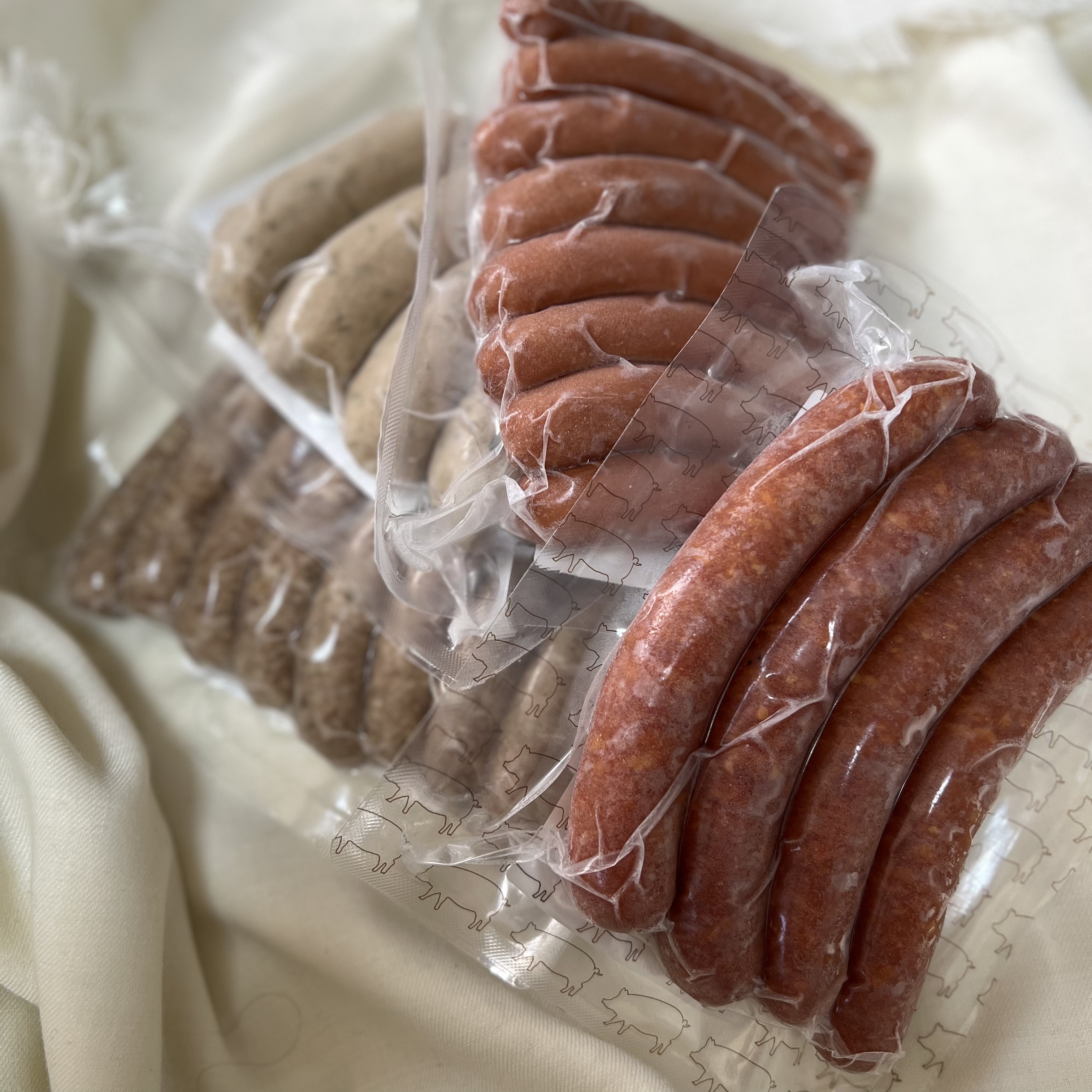 羊腸を使用してパリッと感とスパイスの香りを生かした無塩せきソーセージ。