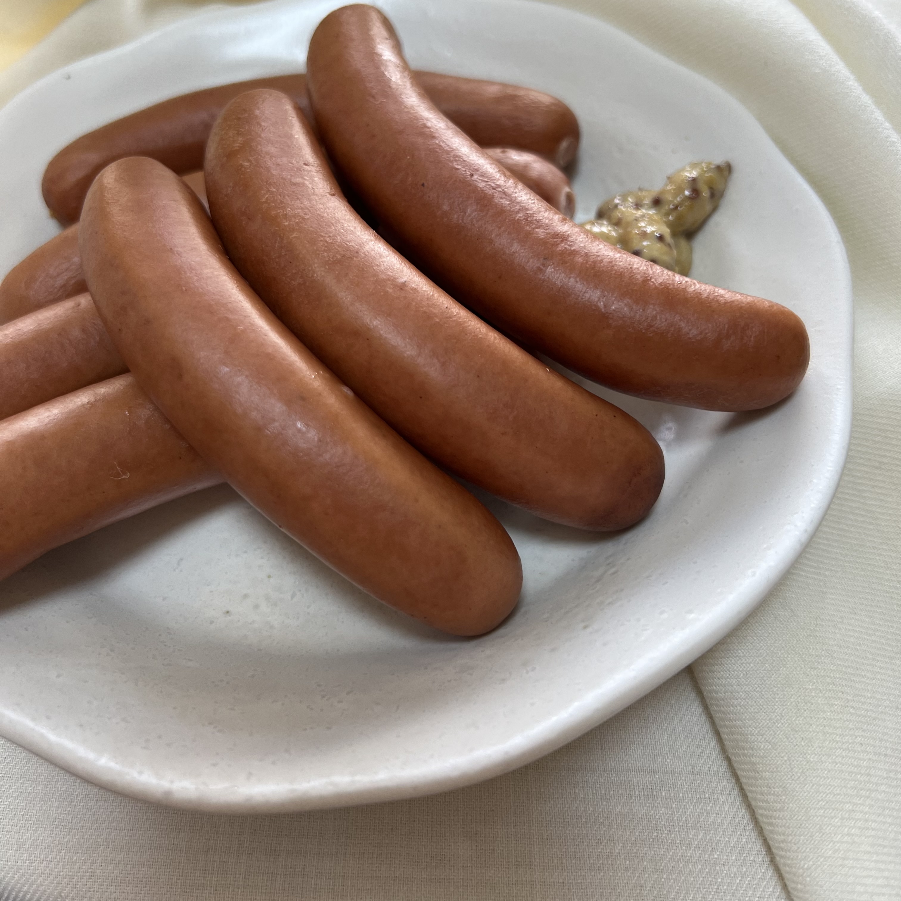 羊腸を使用してパリッと仕上げたコクのある絹びきのウインナー。 シンプルながらも肉の美味しさとゲゼレ取得職人のスパイス使いが光る味わいです。