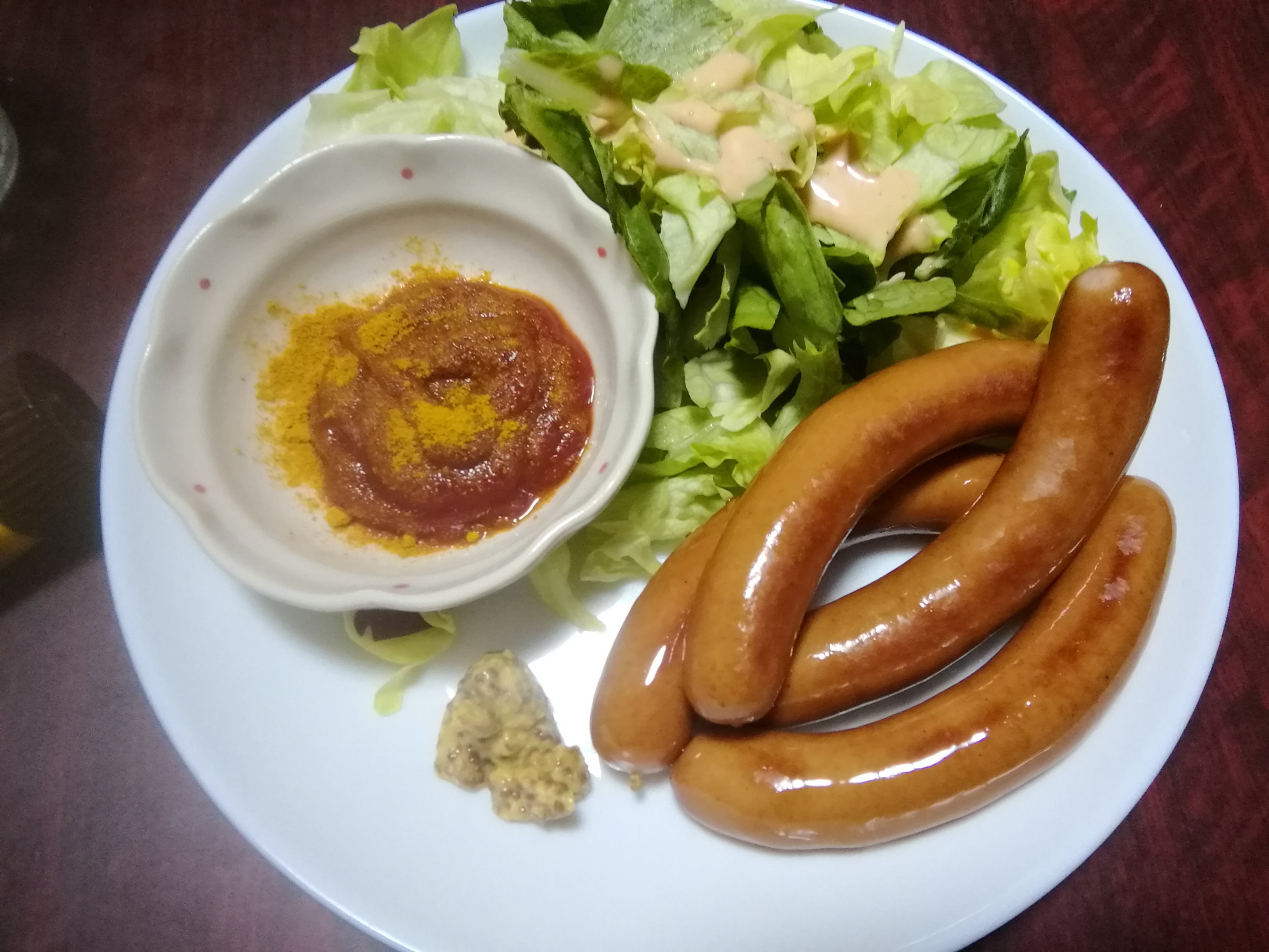 ウインナーソーセージでカリーブルスト風のソースを作り、ビールと一緒に楽しみました。