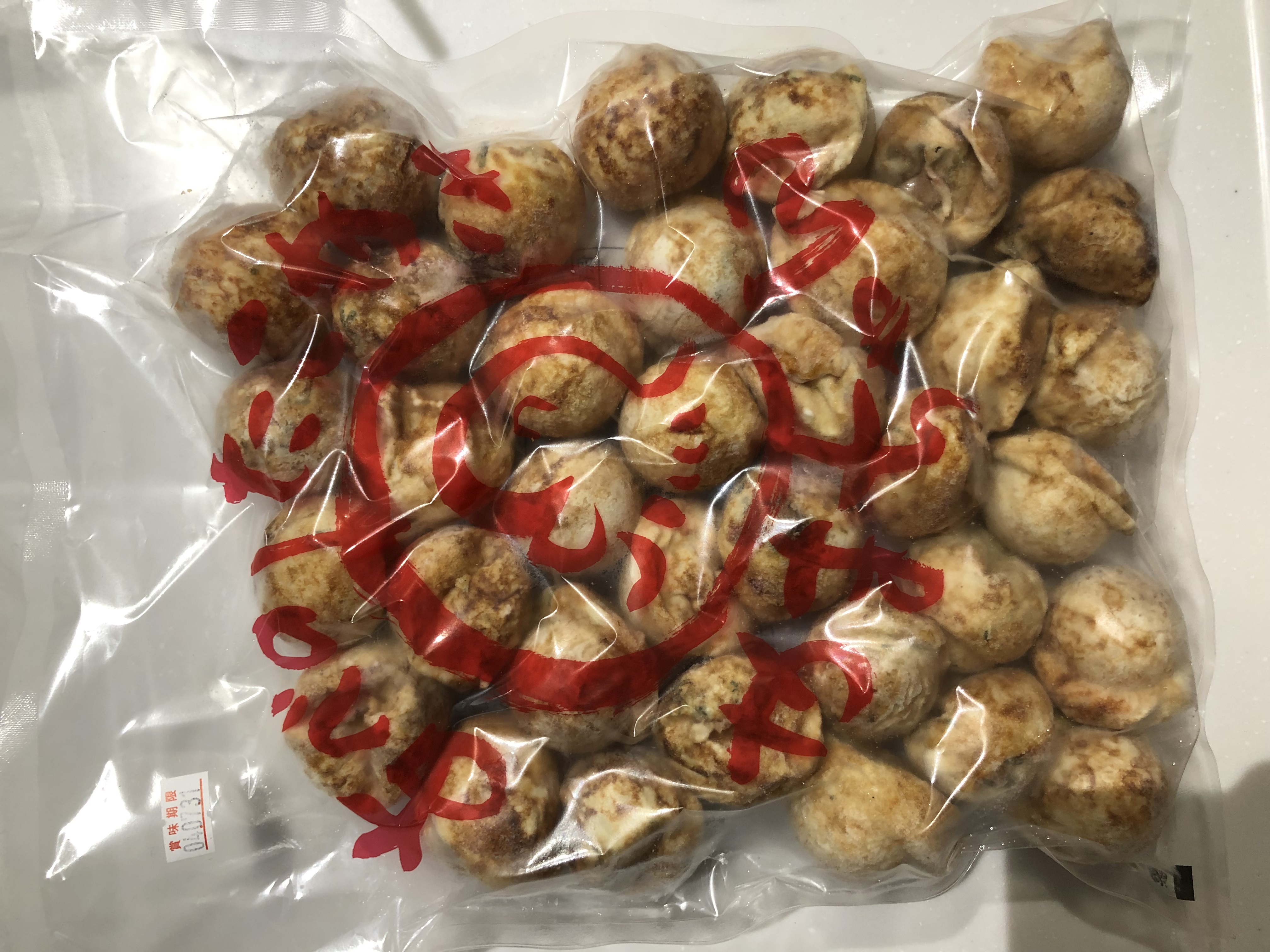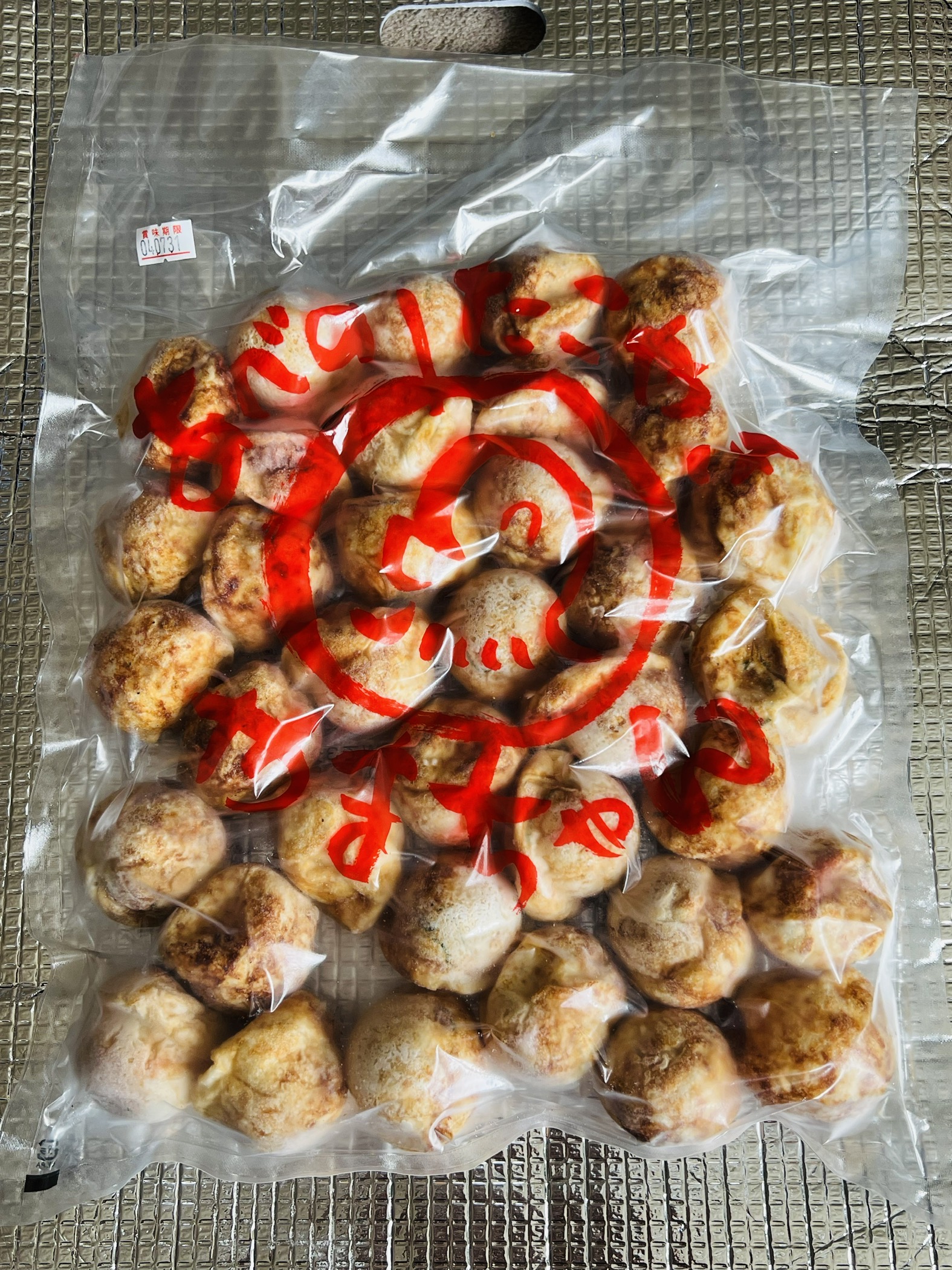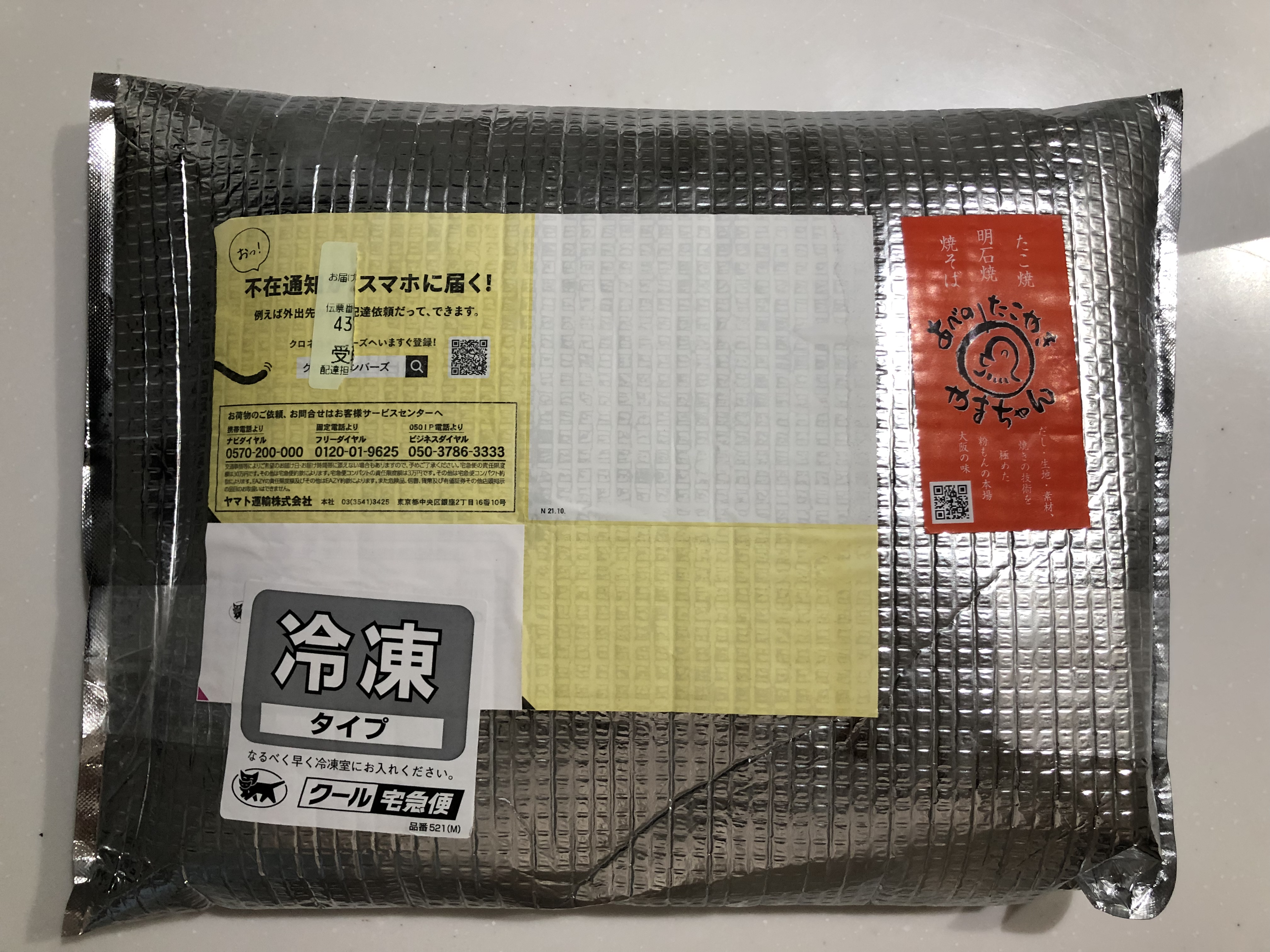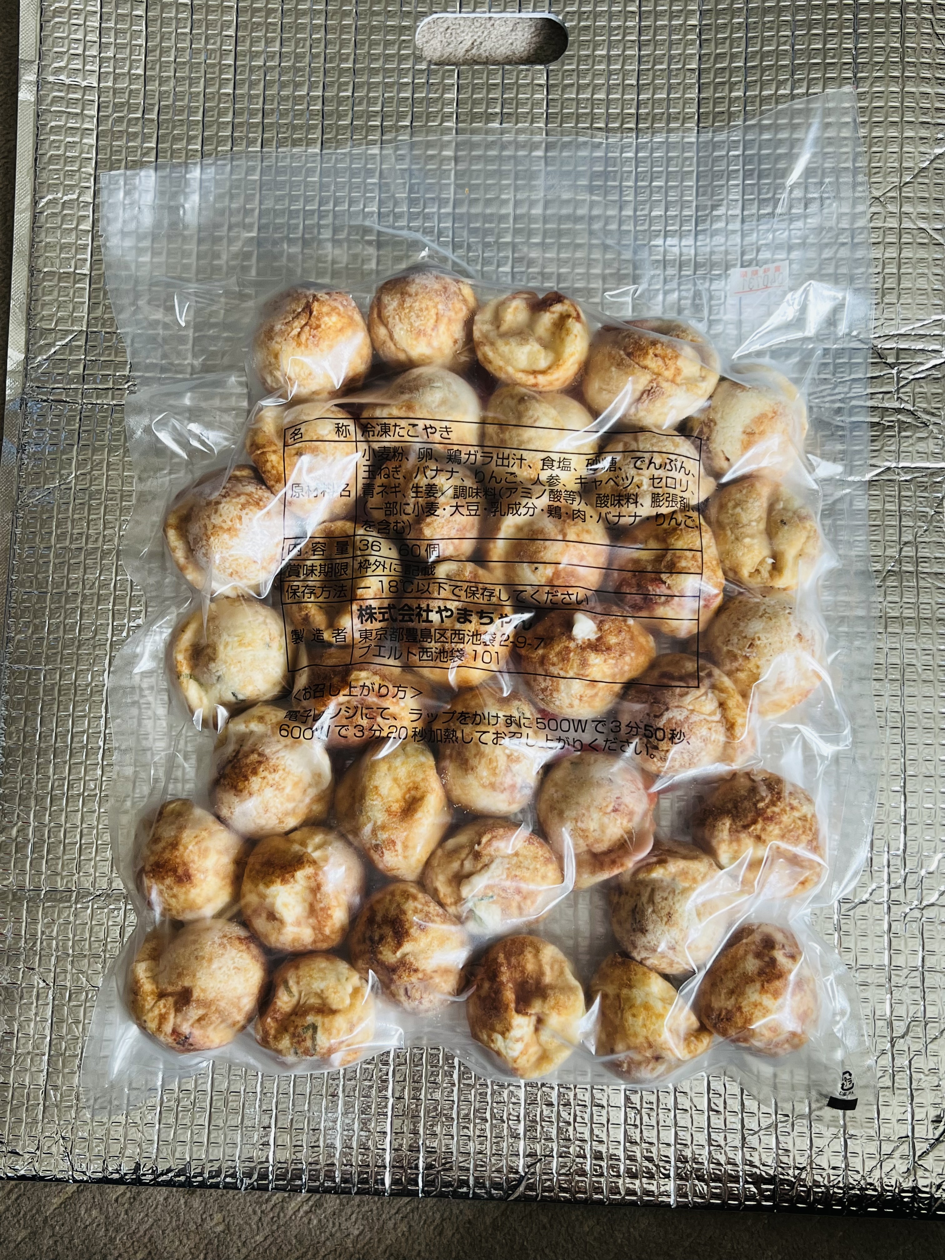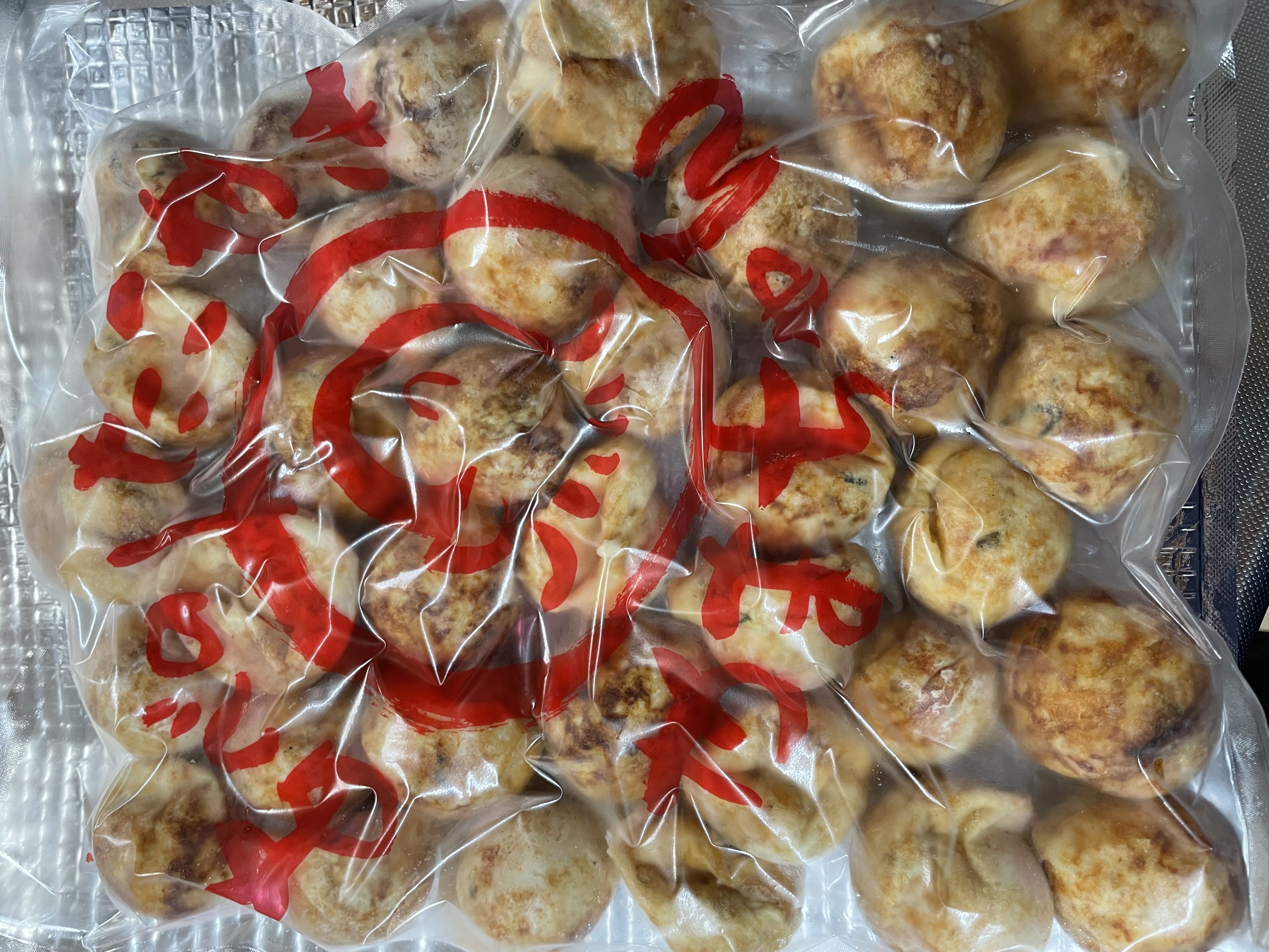 クール宅急便で指定時間に届きました。シルバーの宅配用保冷袋の中には、真空パックになったたこ焼き。シンプルでエコな包装に好感をもちました。たこ焼きは手軽におやつのように食べるものだから、これくらいのカジュアルさがちょうどいいです。36個の大きなたこ焼きが袋いっぱいにゴロゴロ入っているさまは、圧巻です!