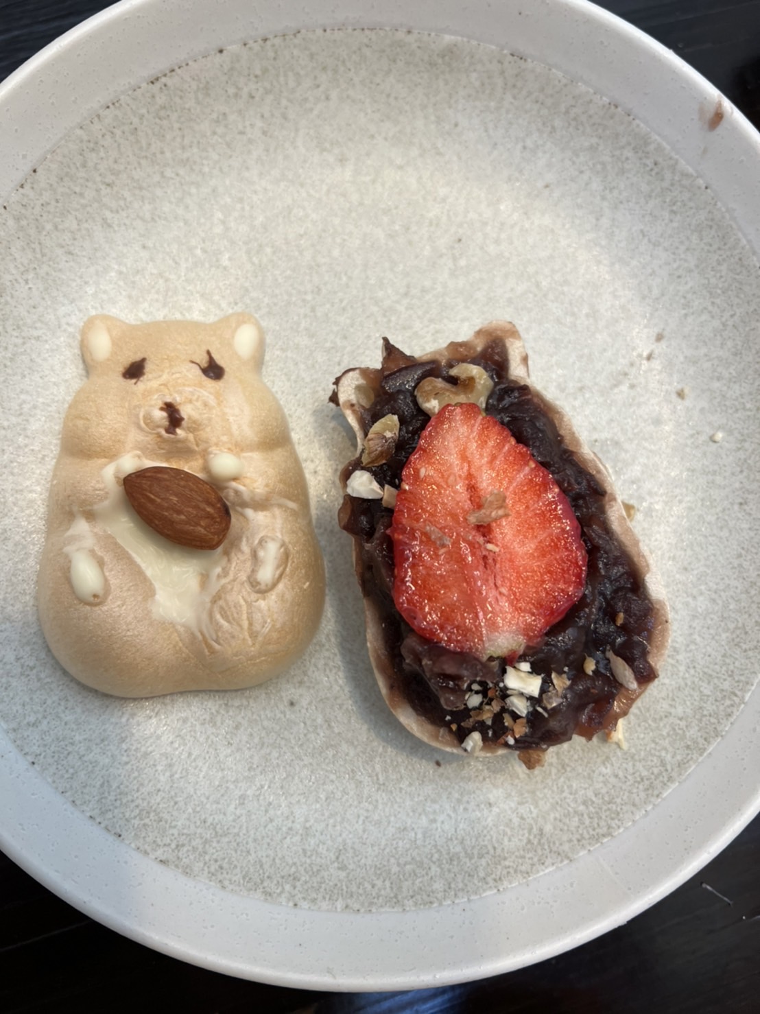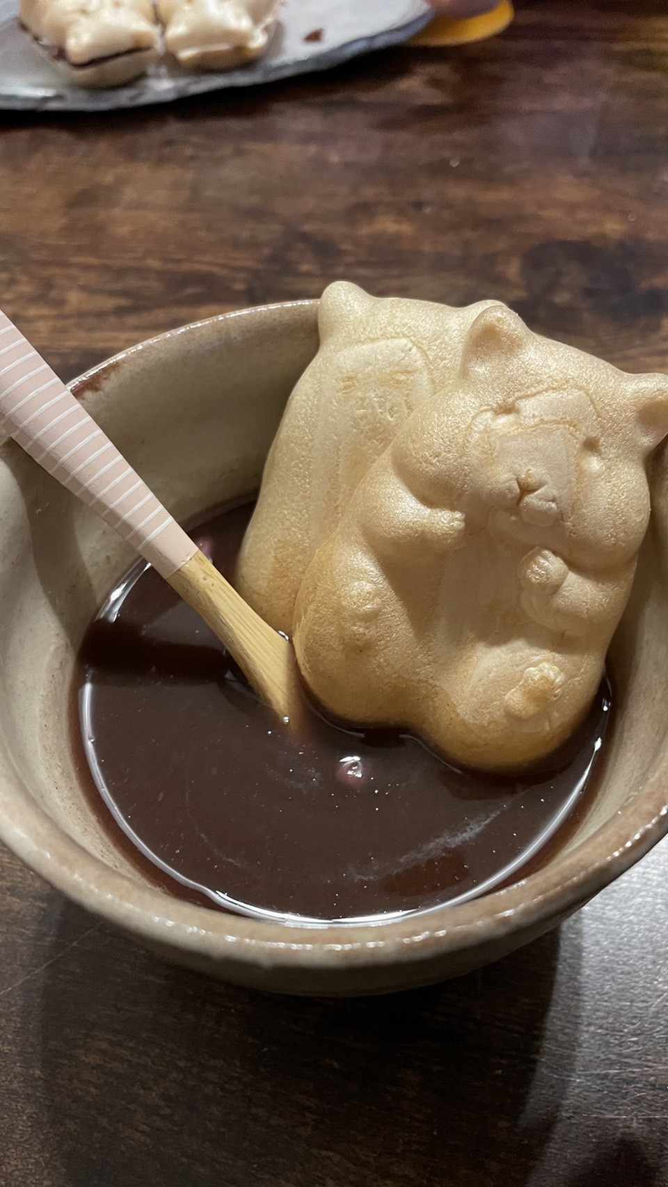 可愛らしいハムちゃんを自分で飾れる楽しさはもちろんのこと、「あんこ」は、ひとつひとつ個包装された最中にいただく直前に入れて食べる為、普段いただいていたしっとりとした最中の食感とは違い、サックサクとした香ばしい最中の食感はもう病みつきになります。