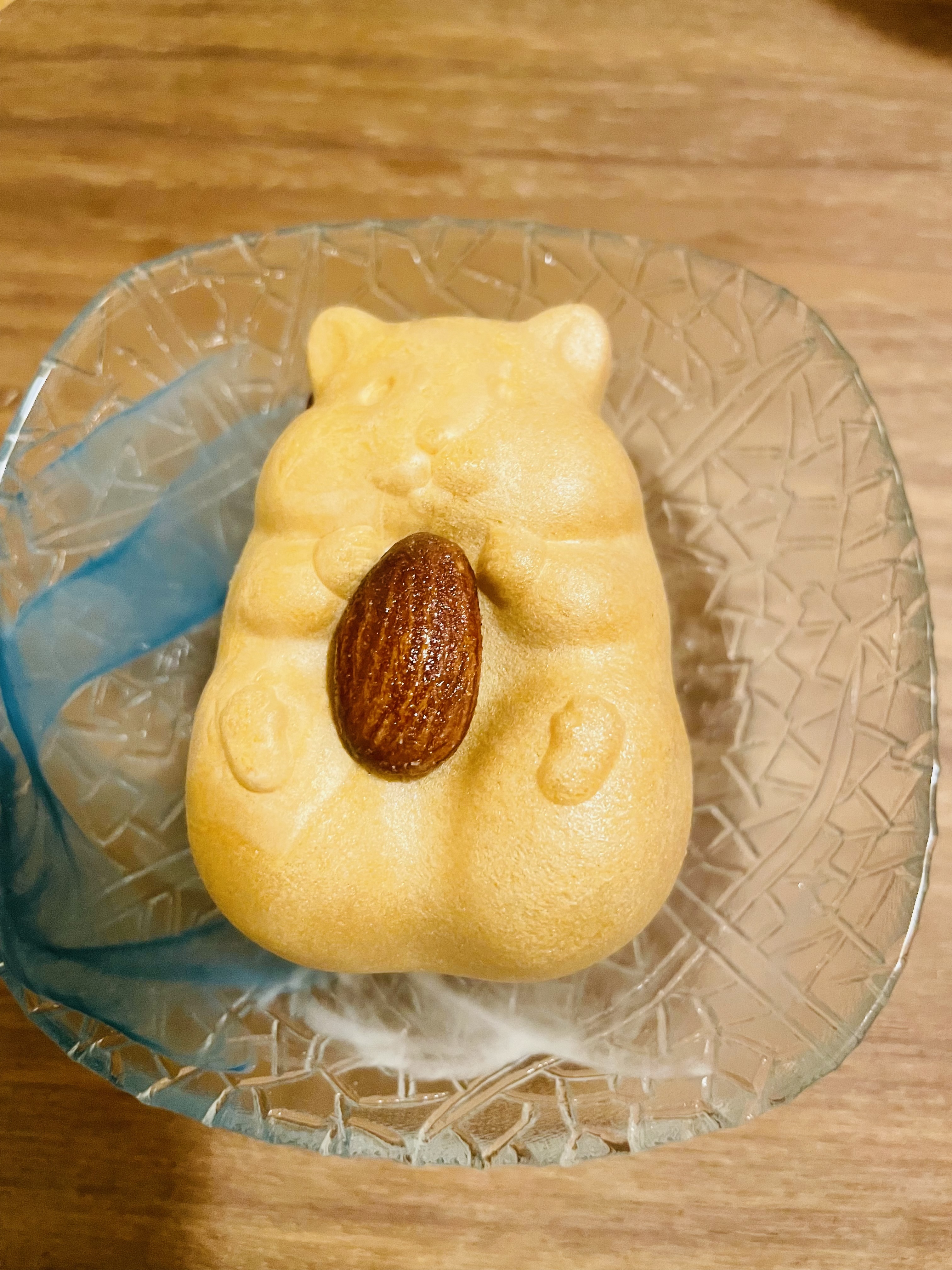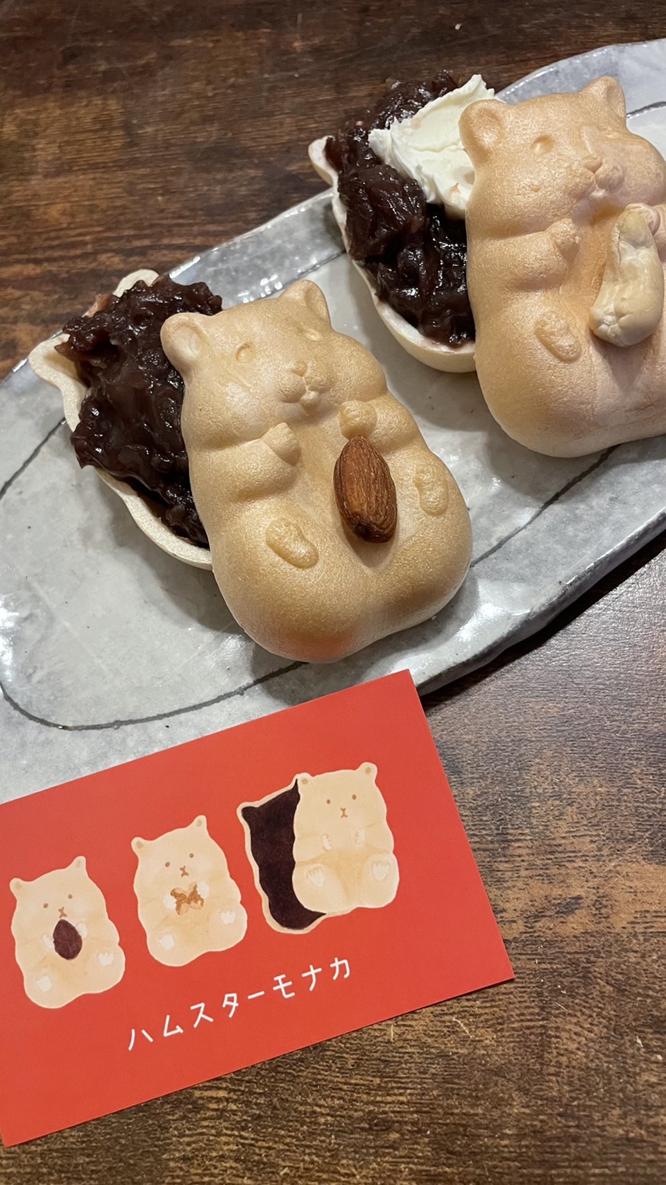 ナッツを握りしめたフォルムがキュートな「ハムスターモナカ」です。パリパリのモナカの皮に北海道産のあんこをたっぷりと詰め、ほんのり塩気のあるナッツをお腹に乗せて完成。皮、あんこ、ナッツが別々に届くので、餡子の量を加減したり、クリームチーズやクルミなどを加えたり好みに合わせてカスタマイズできる楽しい商品です。チョコペンなどで目や耳を書いたりすれば、なお一層可愛らしく仕上がります。ハムスターのイラスト付きのボックスで届くので、手土産スイーツとしてもおすすめです。