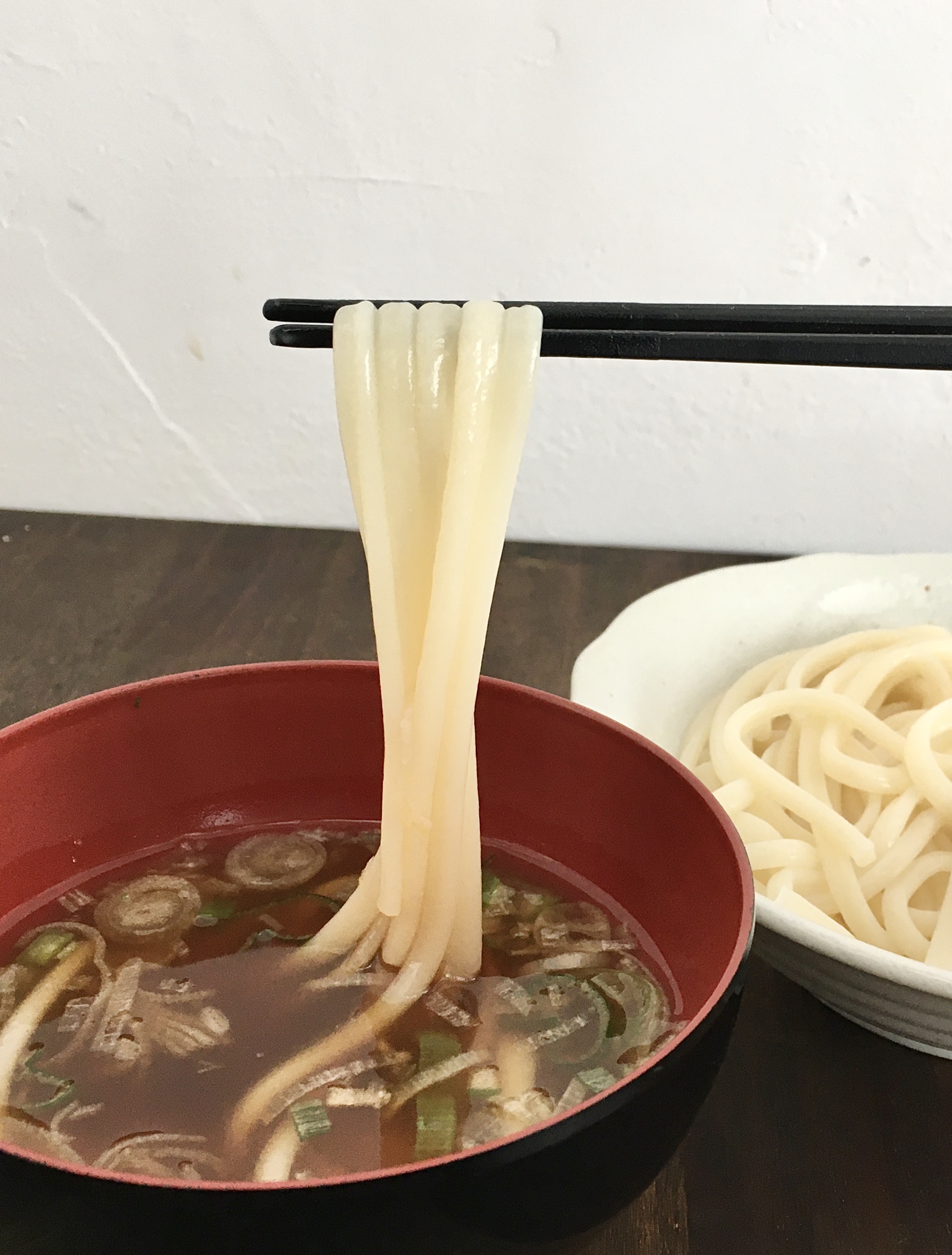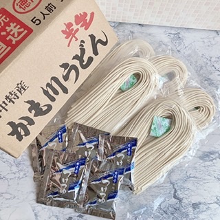 江戸時代から受け継がれてきた「半生手延べうどん」と「つけつゆ」のセットです。手延べの製法で一本一本手作業で延ばしているので、コシがあり、嚙んだ時にモチモチっとした粘りのある食感が特徴。半生ならではの太口麺で、手延べならではの食感をしっかりと感じられます。ざるうどん、釜あげうどんなどシンプルに楽しむのがおすすめです。煮込んでも煮崩れしにくいので煮込みうどんにも向いています。相性抜群のめんつゆもセットになっているので、手間なく調理できるので便利です。