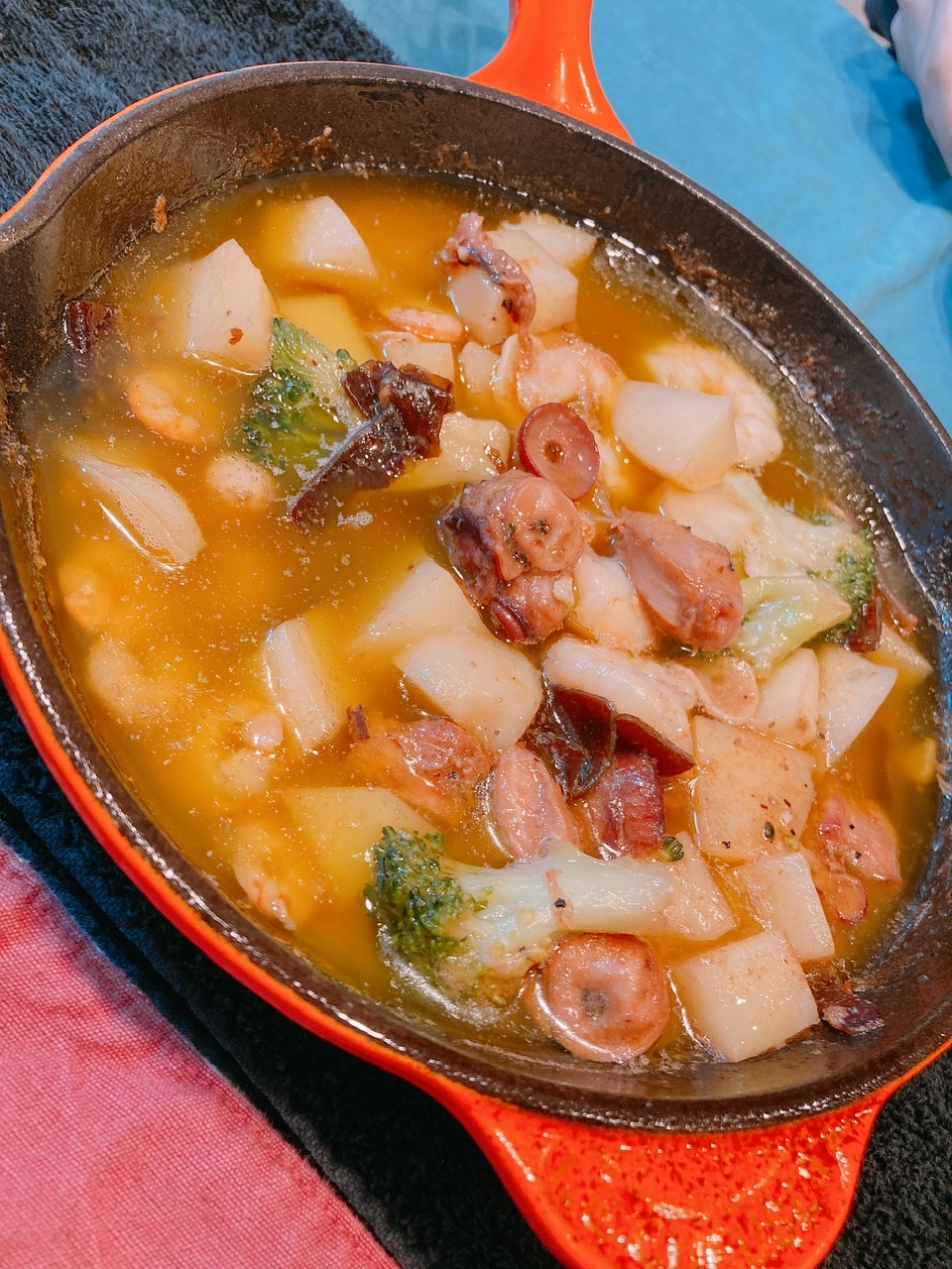 タコも大きいサイズがごろっと入っているため、食べ応えがありました。このサイズ感とコリコリとした食感のたこが入ったアヒージョは豪華だと思いす!