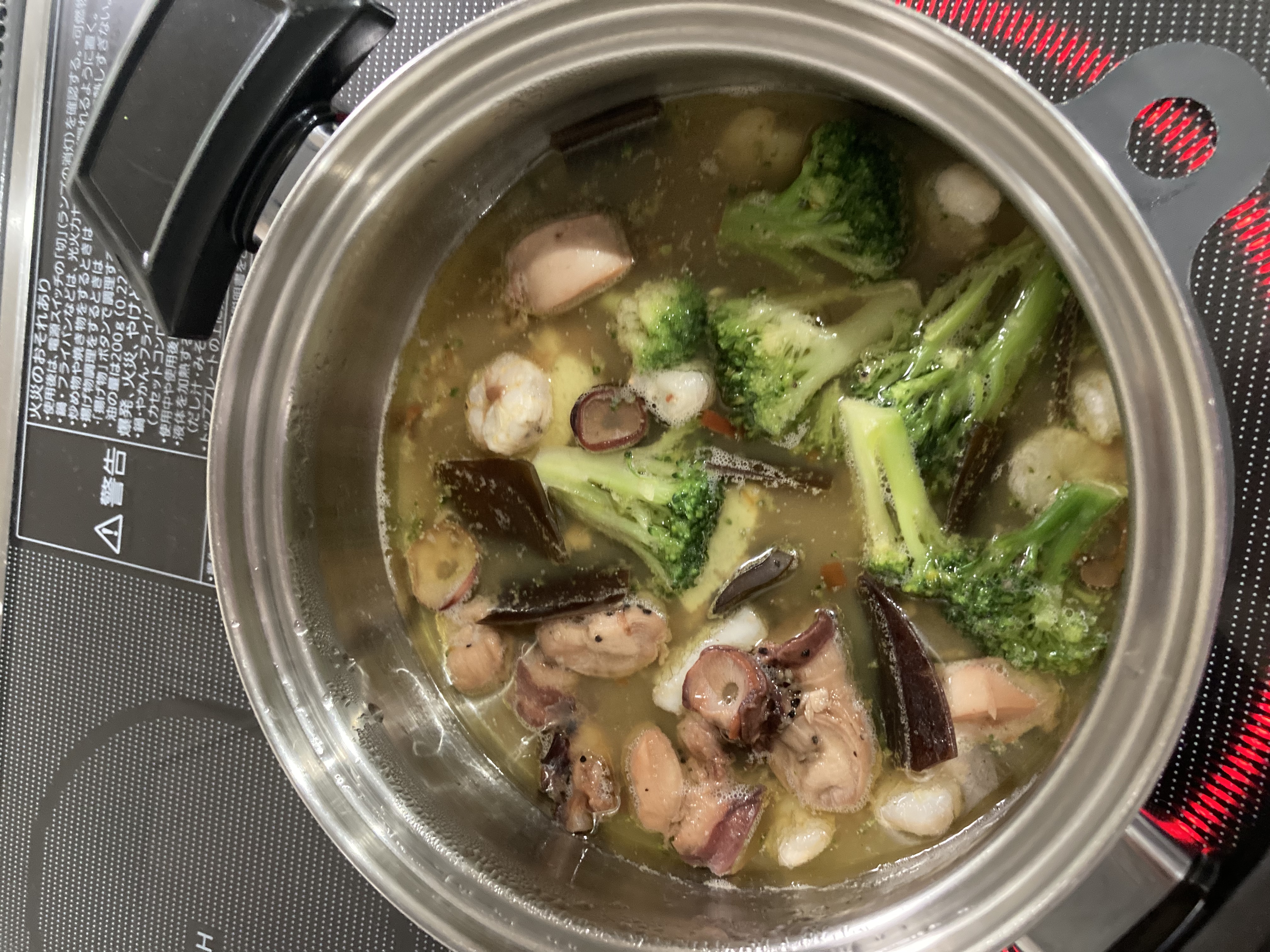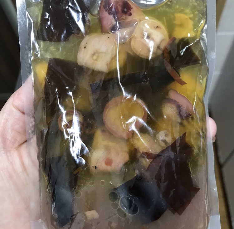 中身はミズダコ、昆布、にんにく、鷹の爪などが入っており、自分で野菜などの準備をする必要があります。