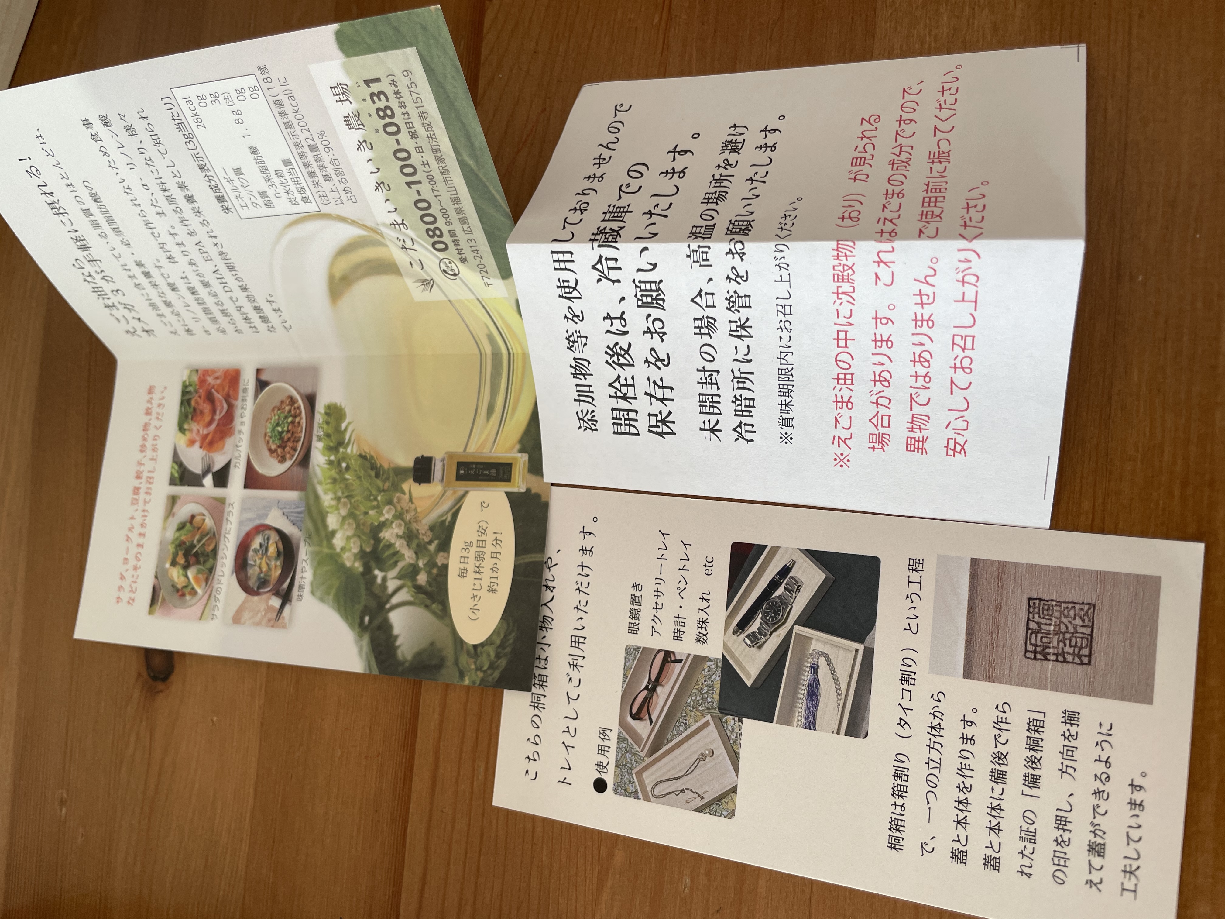 広島県産えごまを100%使用したえごま油です。日々の食事にぜひ小さじ1杯をお召し上がりください。オメガ3は欠かせない栄養です。シンプルな桐箱は小物入れやトレイとしてご利用いただけます。