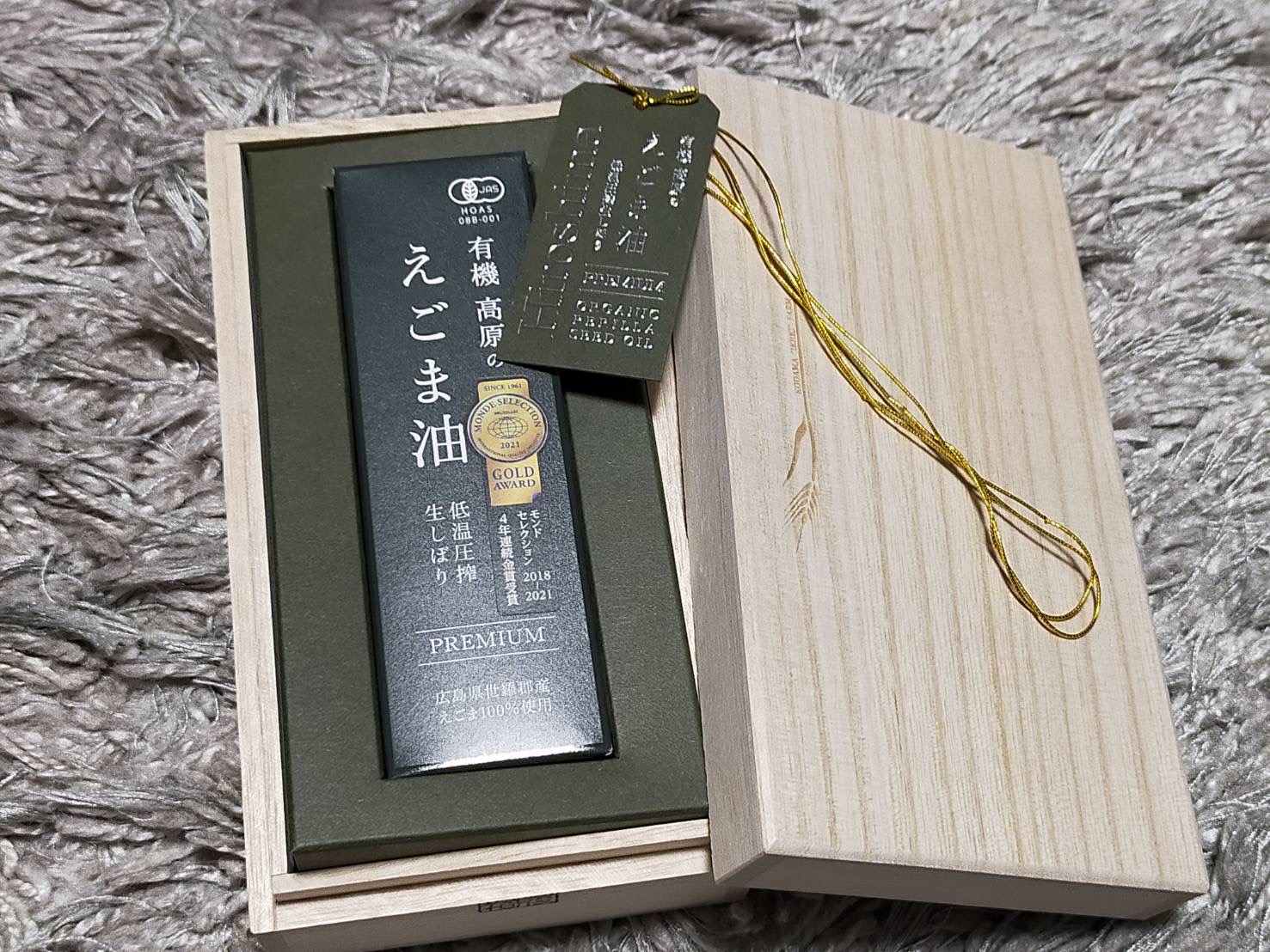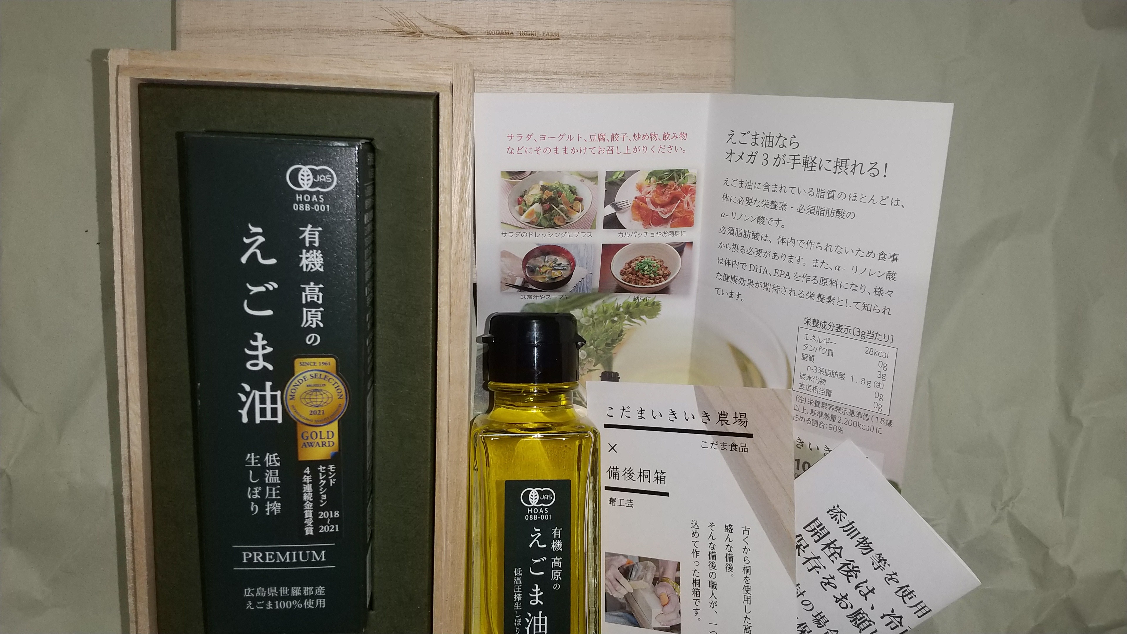 ギフト用 備後桐箱入り 有機 高原のえごま油