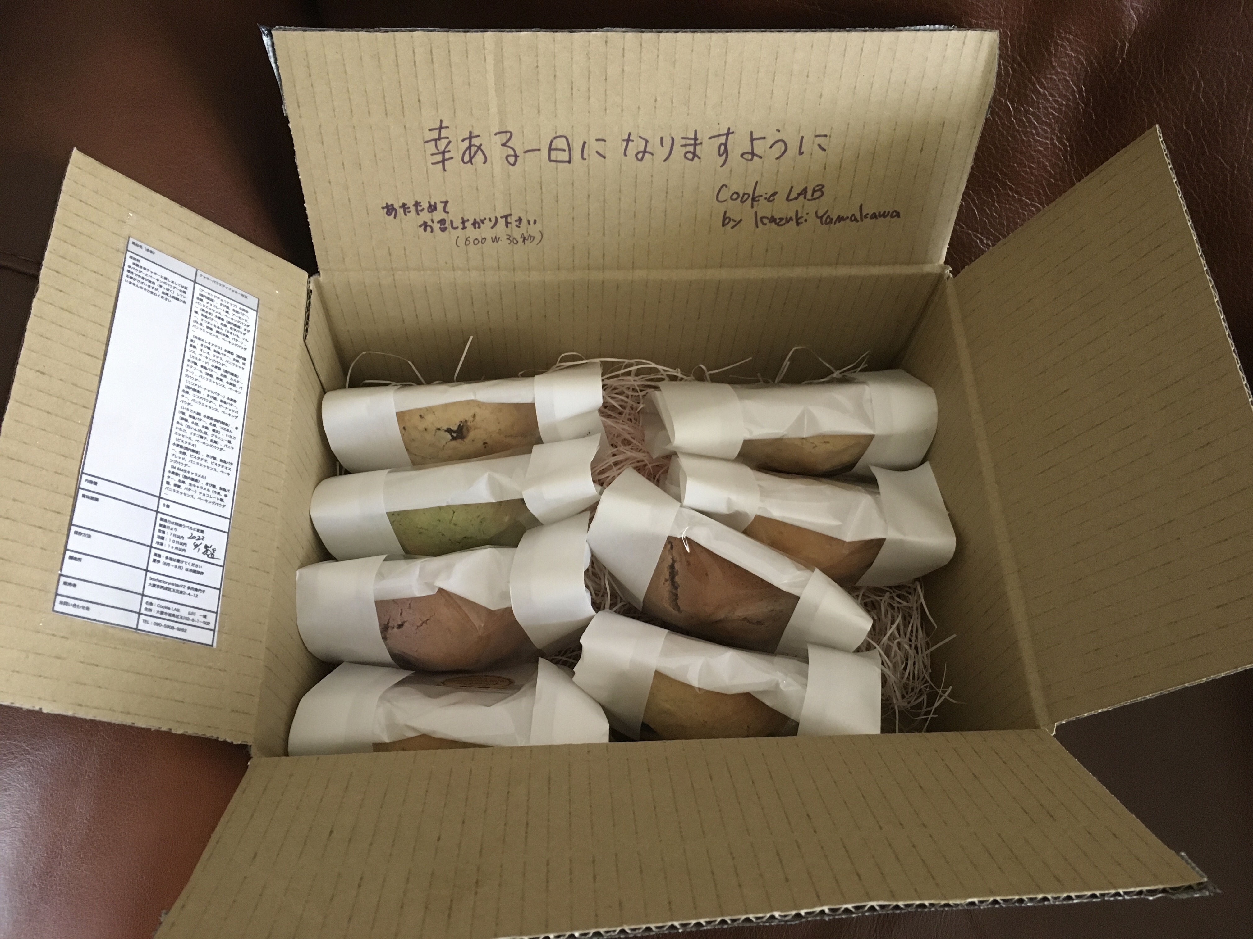 届いた箱を開けると…ビッグ!!!なクッキーが、どどーん!と8個きれいに並んでいます。(このサイズ、もうパンやん!という衝撃的なサイズに圧倒されました笑)