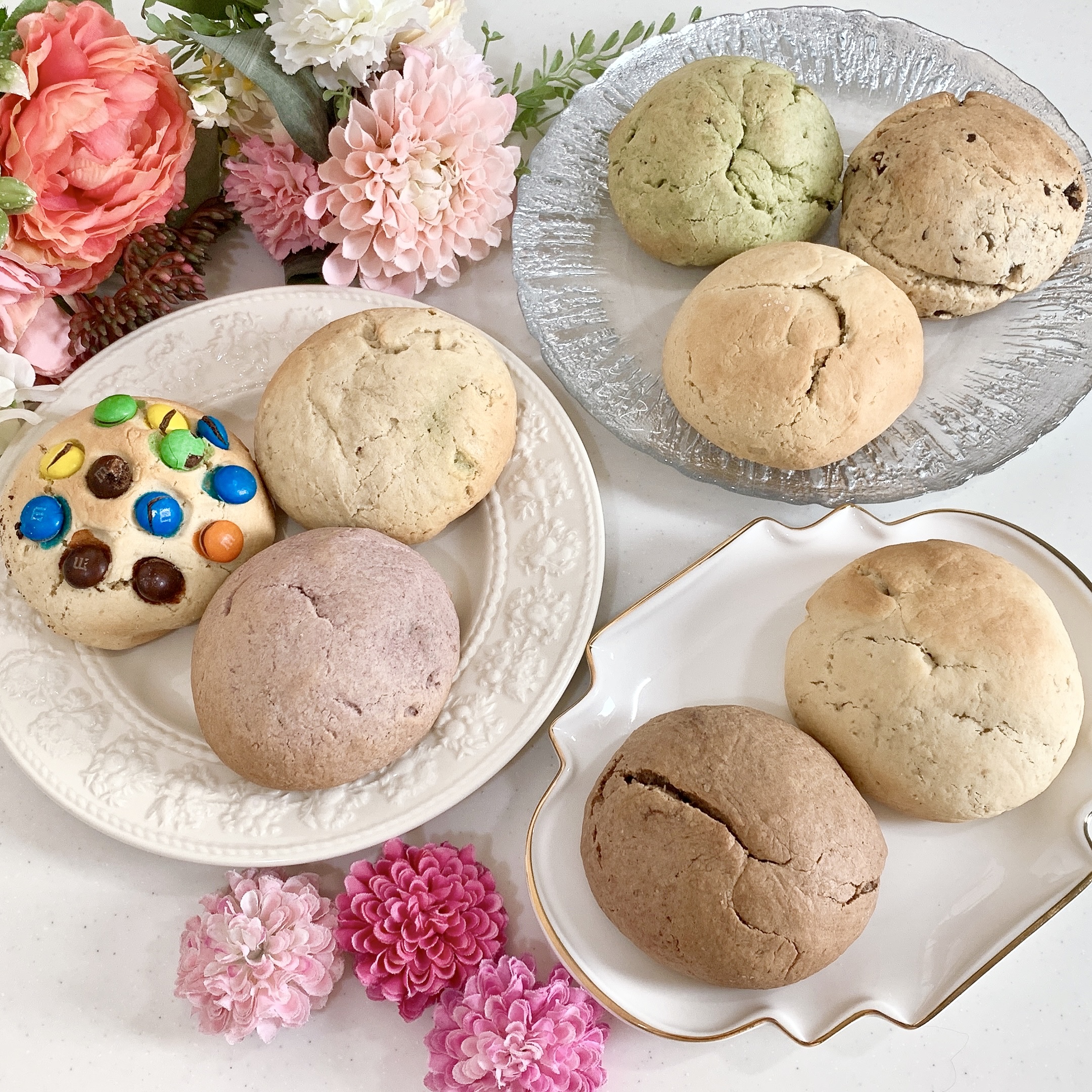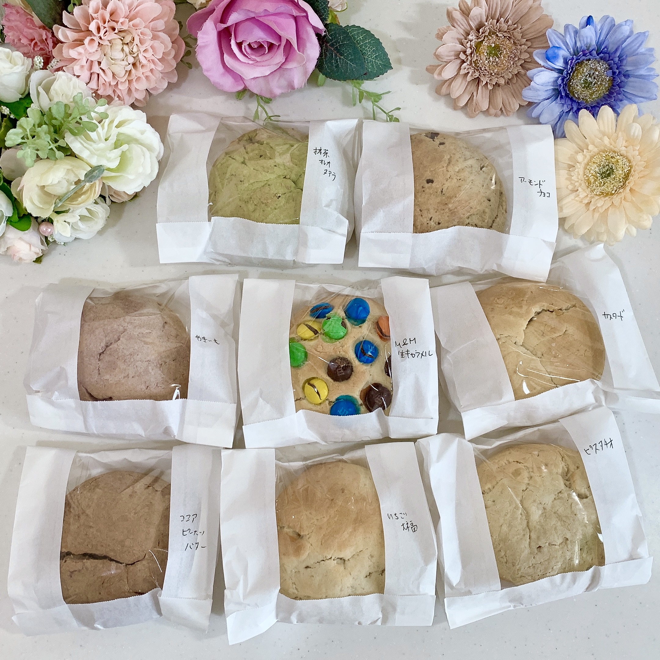 100gを超えるビッグサイズ!食べ応え抜群の「アメリカンクッキー」です。アメリカンクッキーは、外はサクッ、中はしっとりやわらかい、クセになる食感が特徴。月替わりの商品で、数十種あるフレーバーからショップ厳選の8種がBOXに入って届きます。手作りのカスタードクリームや生キャラメル、あんこなどなど割って驚く仕掛けや、カラフルなトッピングや生地の色合いも楽しい商品です。