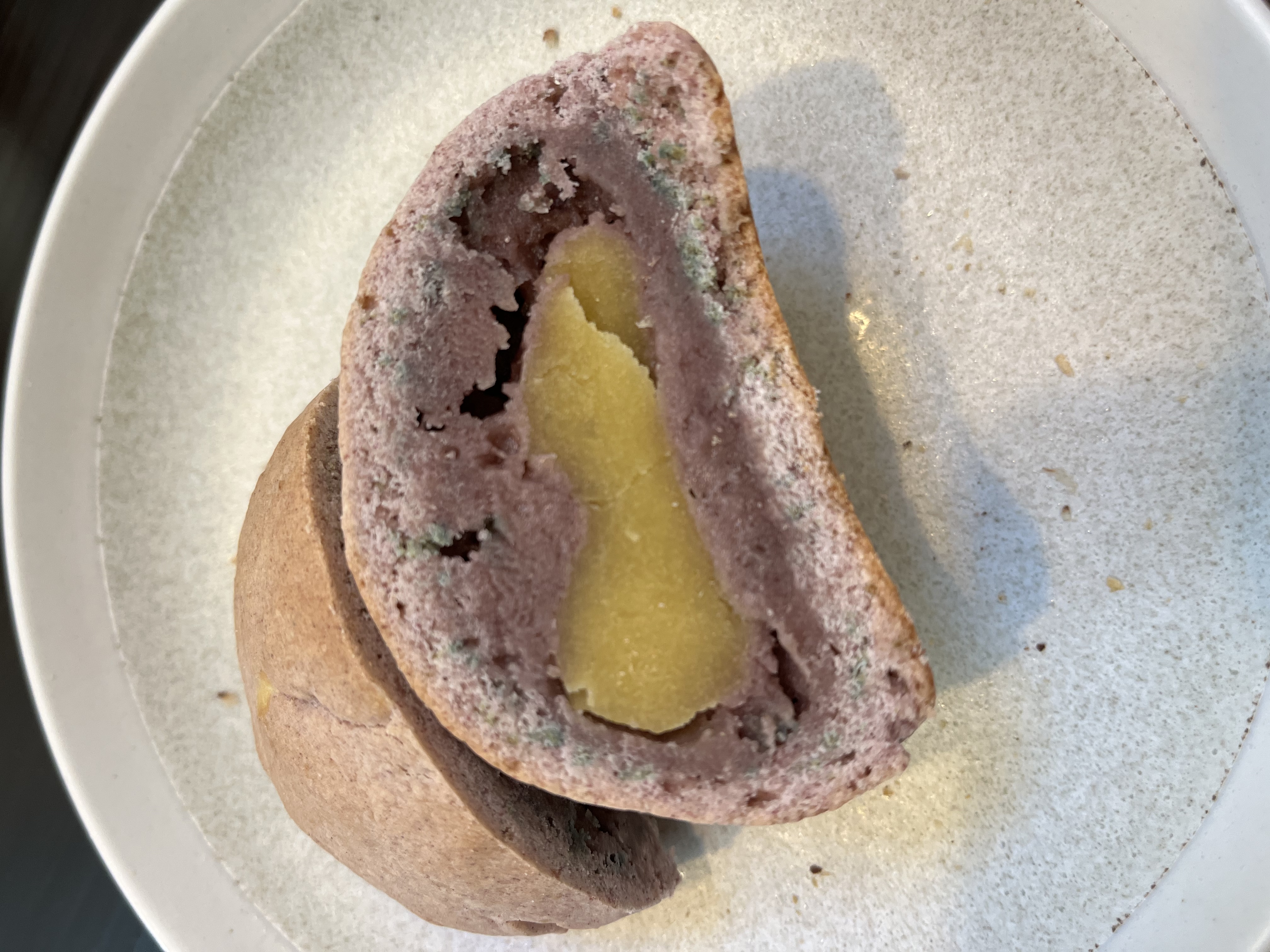 見た目もほんのり紫色。中には芋餡が入っていました。サツマイモを練りこんだクッキーはよくありますが、このタイプは初めて!女子受けしそうです♫