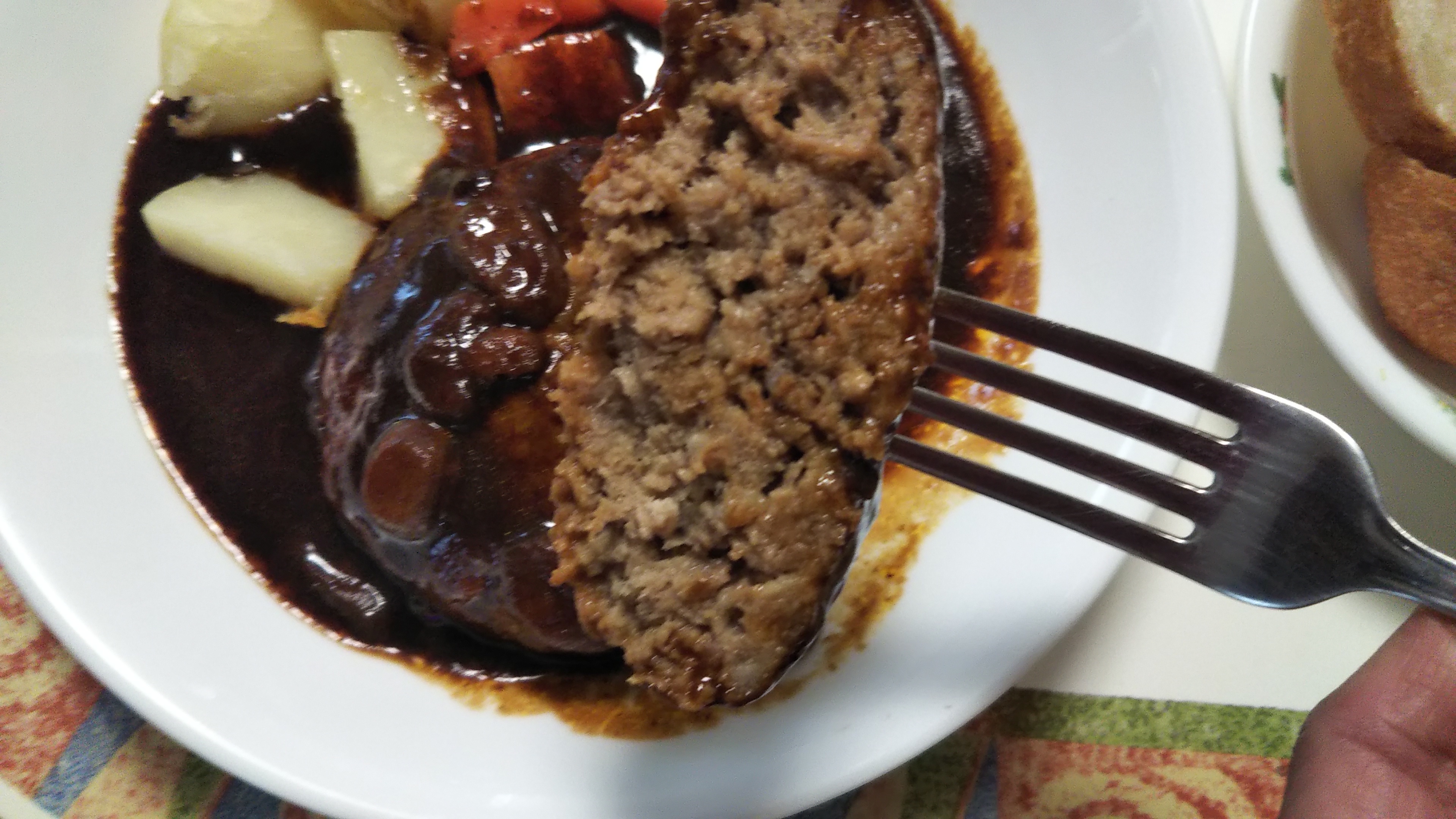 そしてハンバーグ!豚肉を絶妙の割合で配合してあるせいか牛肉100%ハンバーグにありがちな臭みがなく口の中で肉汁が溢れお肉がとろける感じで絶品でした。