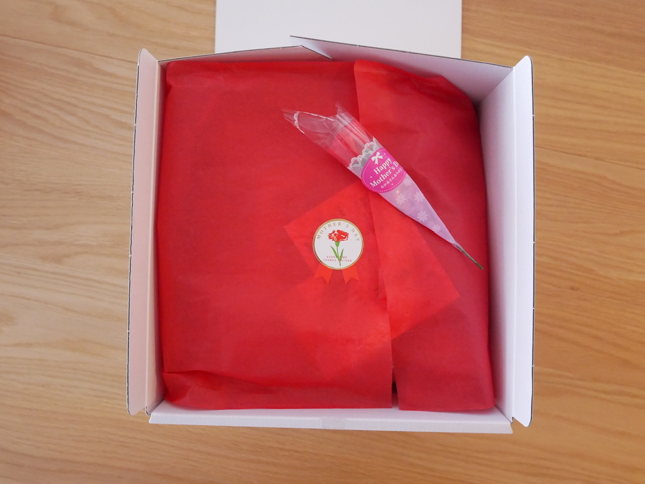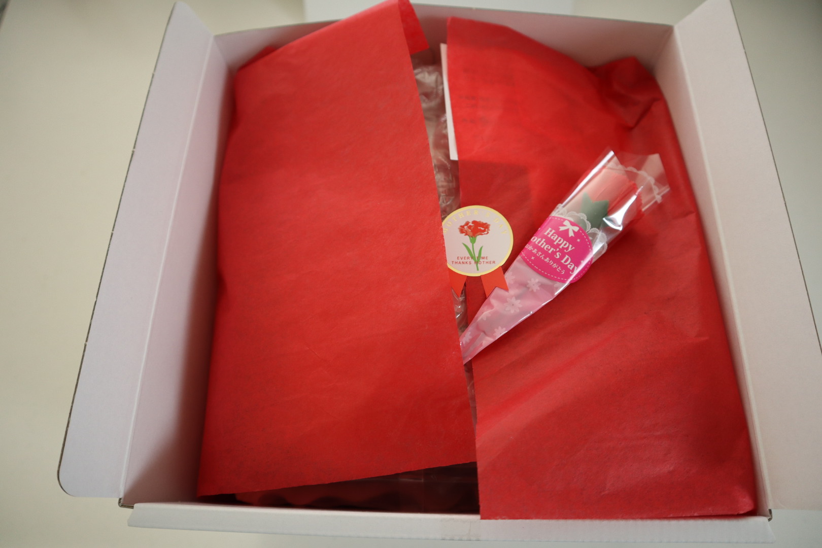 母の日セットとのことで、可愛らしいカーネーションも入っていました!優しさがいっぱい詰まった商品だと思います。掛け紙からも優しさが溢れていてすごく母の立場ではないのに、素敵な気持ちになりました!