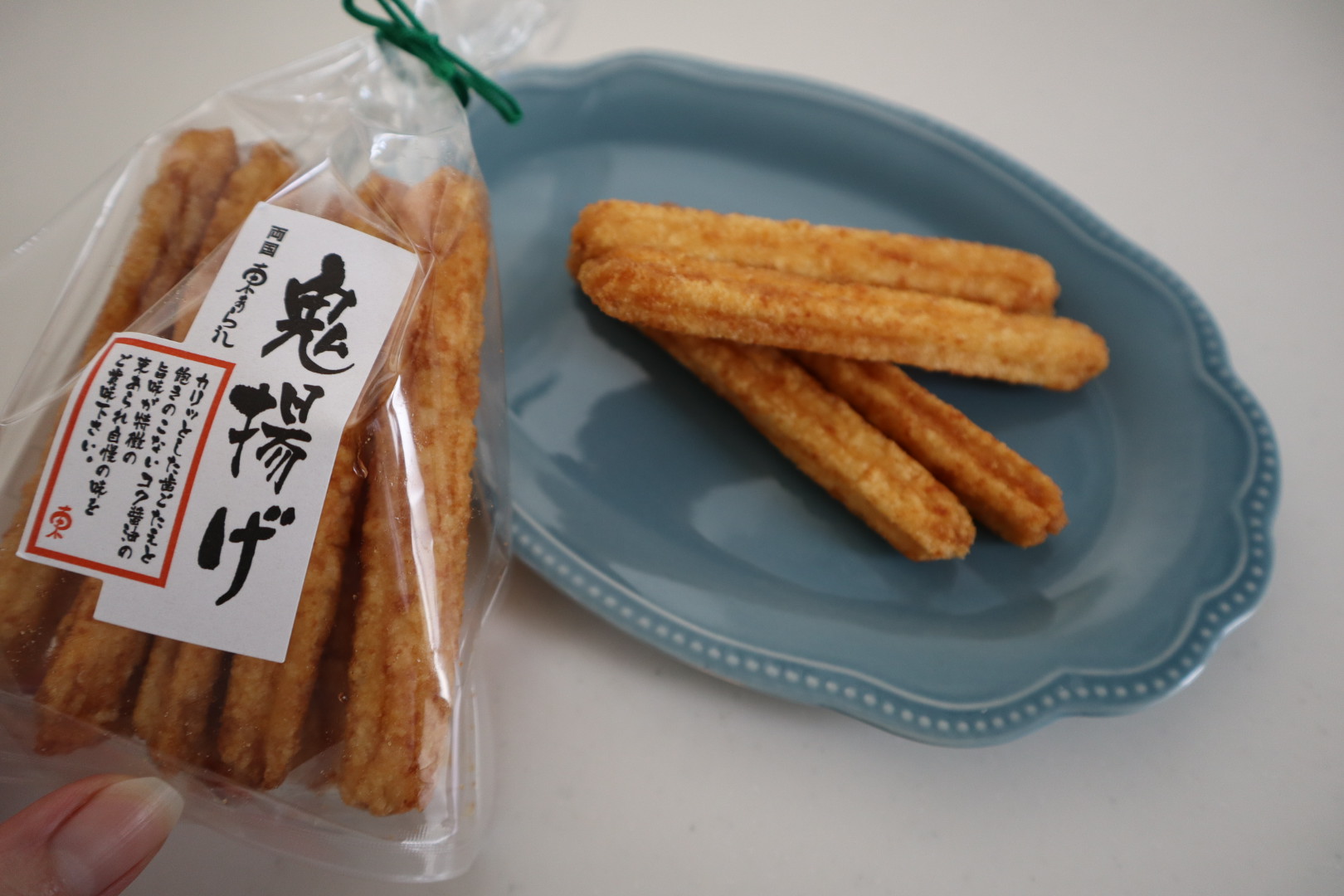 硬い食感で噛むと旨味が広がる揚げおかきでした。棒状の形状が食べやすかったです。