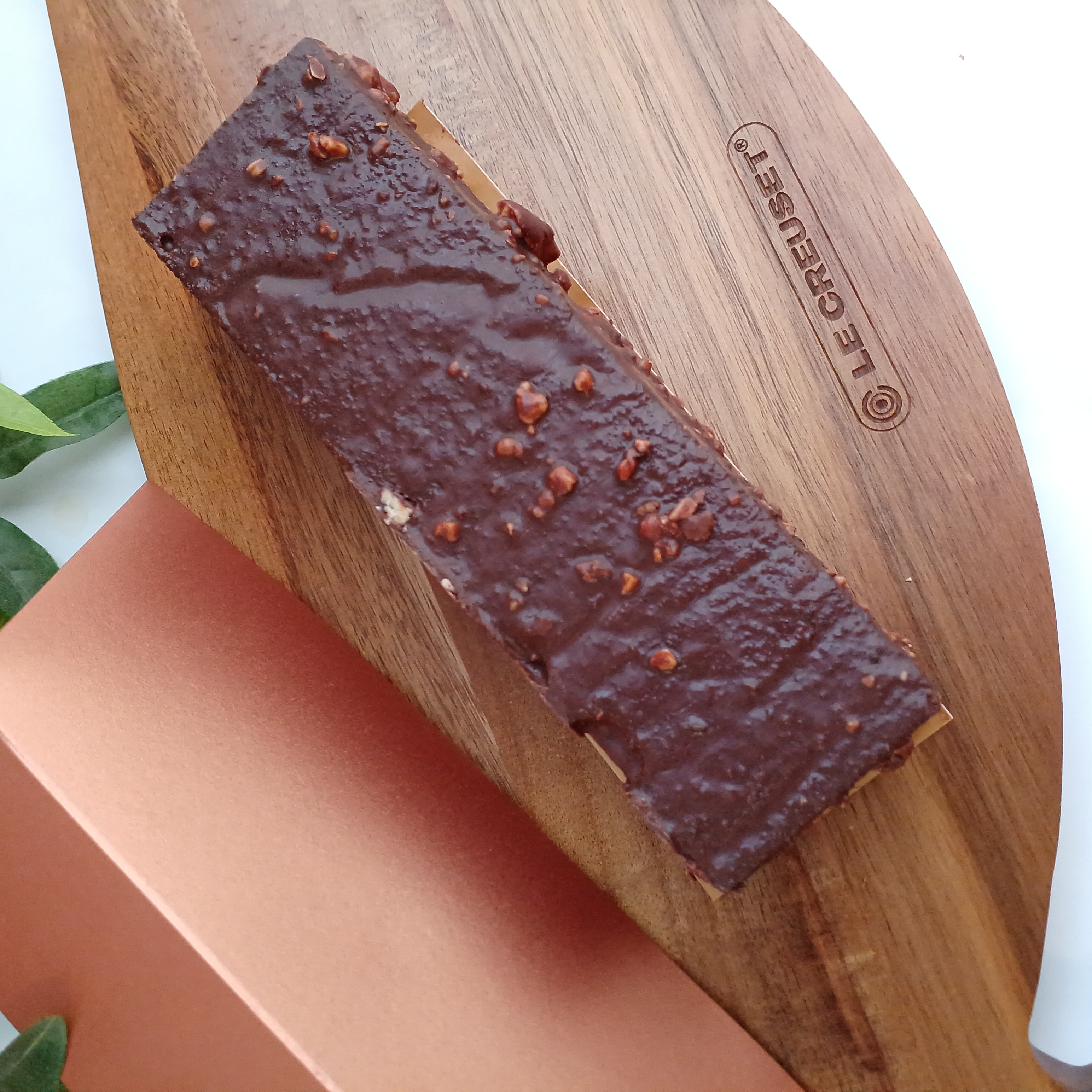 有機カカオパウダーと自家製ガナッシュクリームを使用したグルテンフリーの「ガトーショコラ」です。有機カカオパウダーを生地に贅沢に使うことで、しっとり感と軽さを実現しています。口溶けの良い生地と、甘すぎない自家製ガナッシュクリームを幾重にも重ね、断面も綺麗に仕上がっています。仕上げのチョコレートのコーティングに散りばめられたオーガニックアーモンドの食感がアクセント。オーガニック・フェアトレードのチョコレートを使用するなど随所にこだわりを感じるスイーツです。