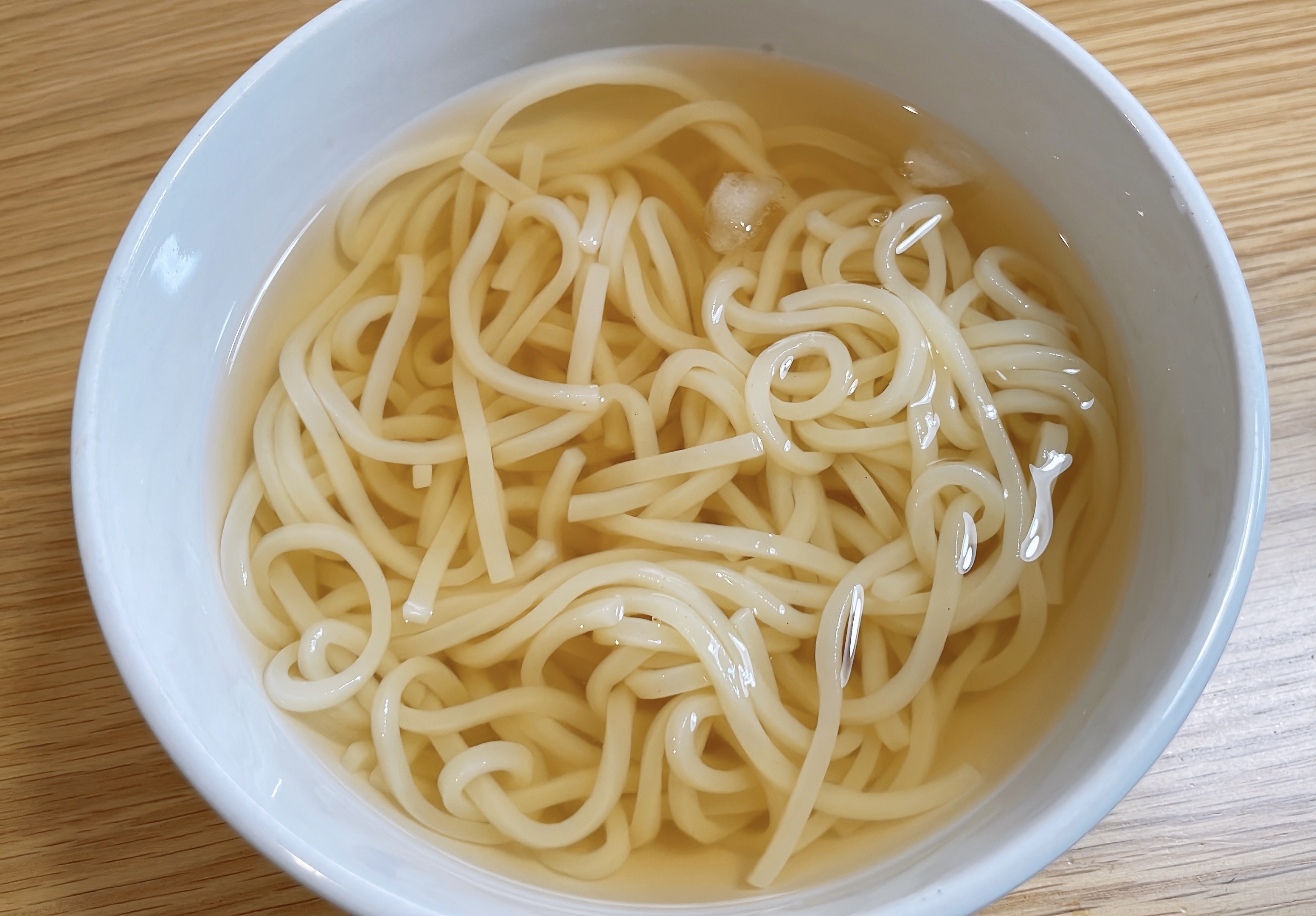 しっかり洗っても、麺がこわれることなく、どんどん白く、きれいなツヤが増していきます。