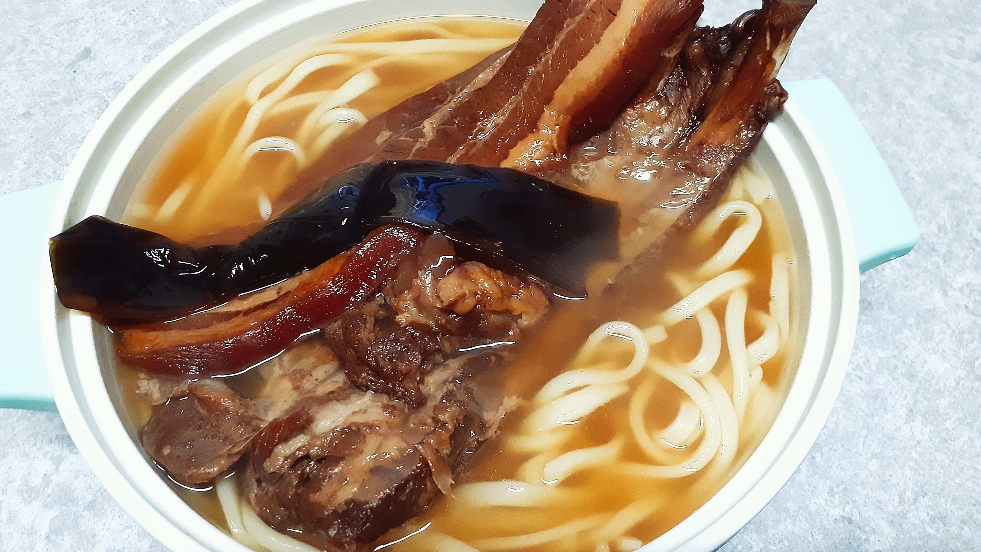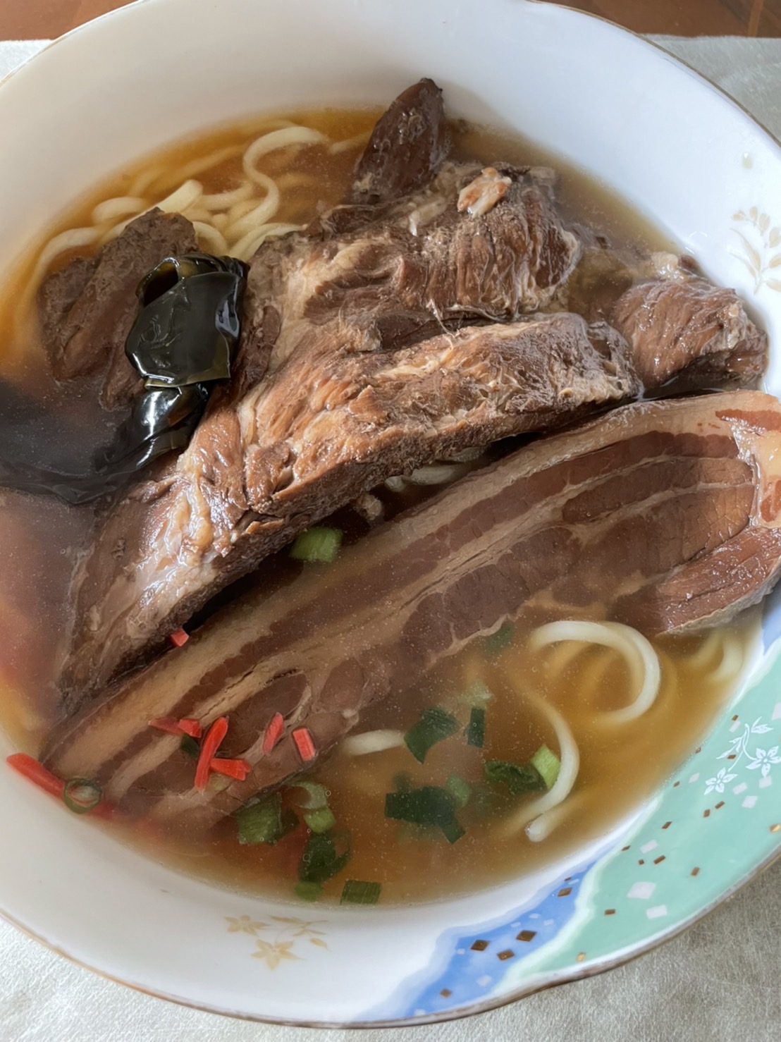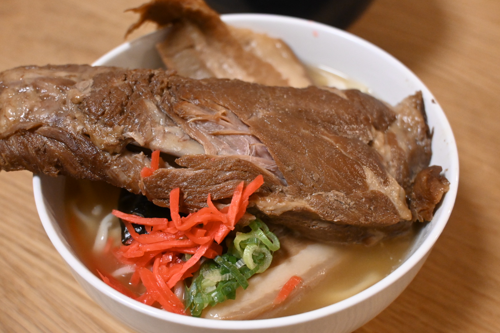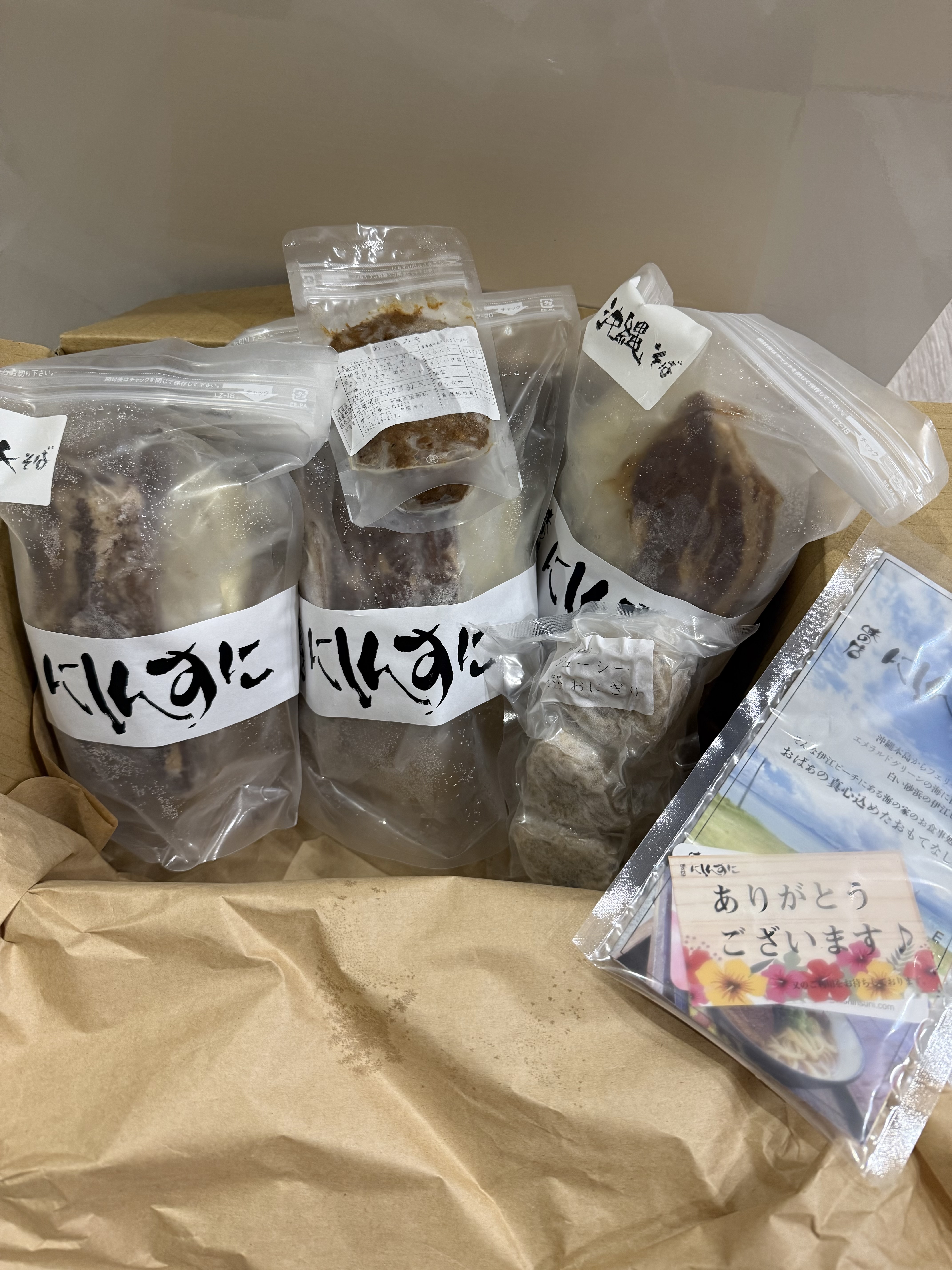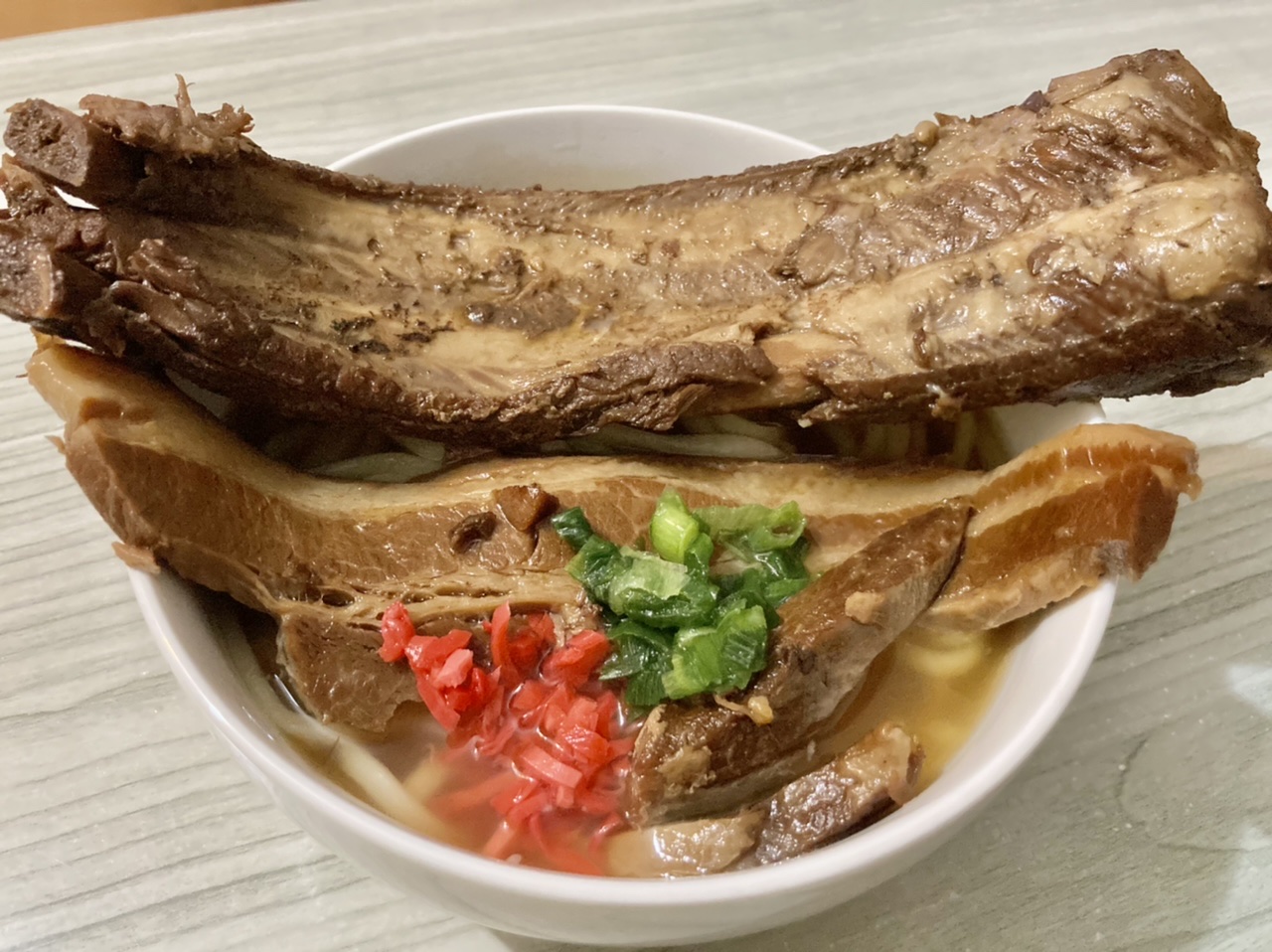 トロトロ三枚肉と特大ソーキをダブルで乗せた、贅沢すぎる沖縄そば!三枚肉とソーキのそれぞれの大きさにも驚きましたが、ダブルでのせた時のインパクトはとにかくすごいです!まさに「全部のせ」。型崩れしないように丁寧に入っていますが、食べる時はホロっと身が取れるので嬉しい♪豚骨だしベースに昆布と鰹節をプラスしたダシですが、思いの外あっさりしていて、でもダシの旨みがつまっているのでスープだけでも美味しい☆調理方法の案内が写真付きで同梱されているので、案内通りに作ることができました。
