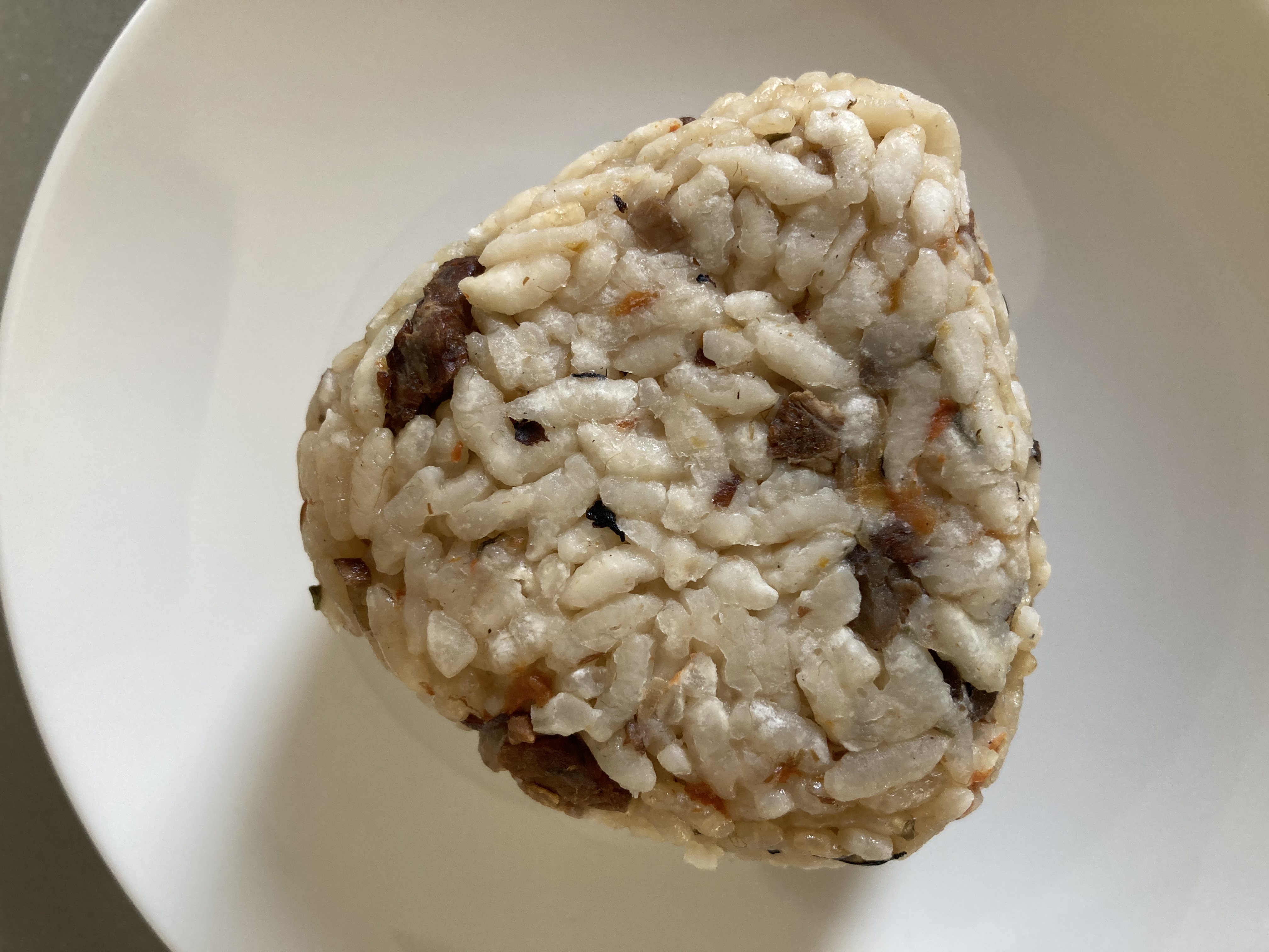 大きめのおにぎり。レンジで温めていただきました。ダシと甘めのほぐし肉が相性抜群で、一つ一つのボリューム感があります♪ひじきも入って栄養満点!