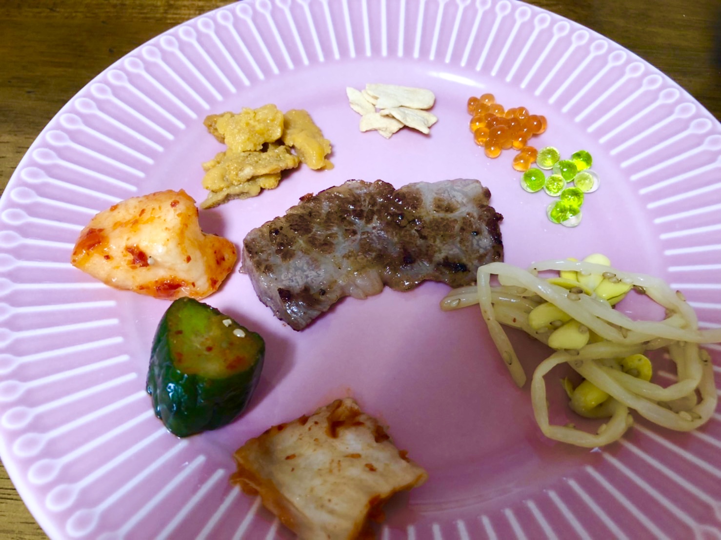 個人的にテンションがあがった焼肉のお供です。浅漬け気味で、野菜の食感がよく残っていて、甘辛くて美味しかったです。