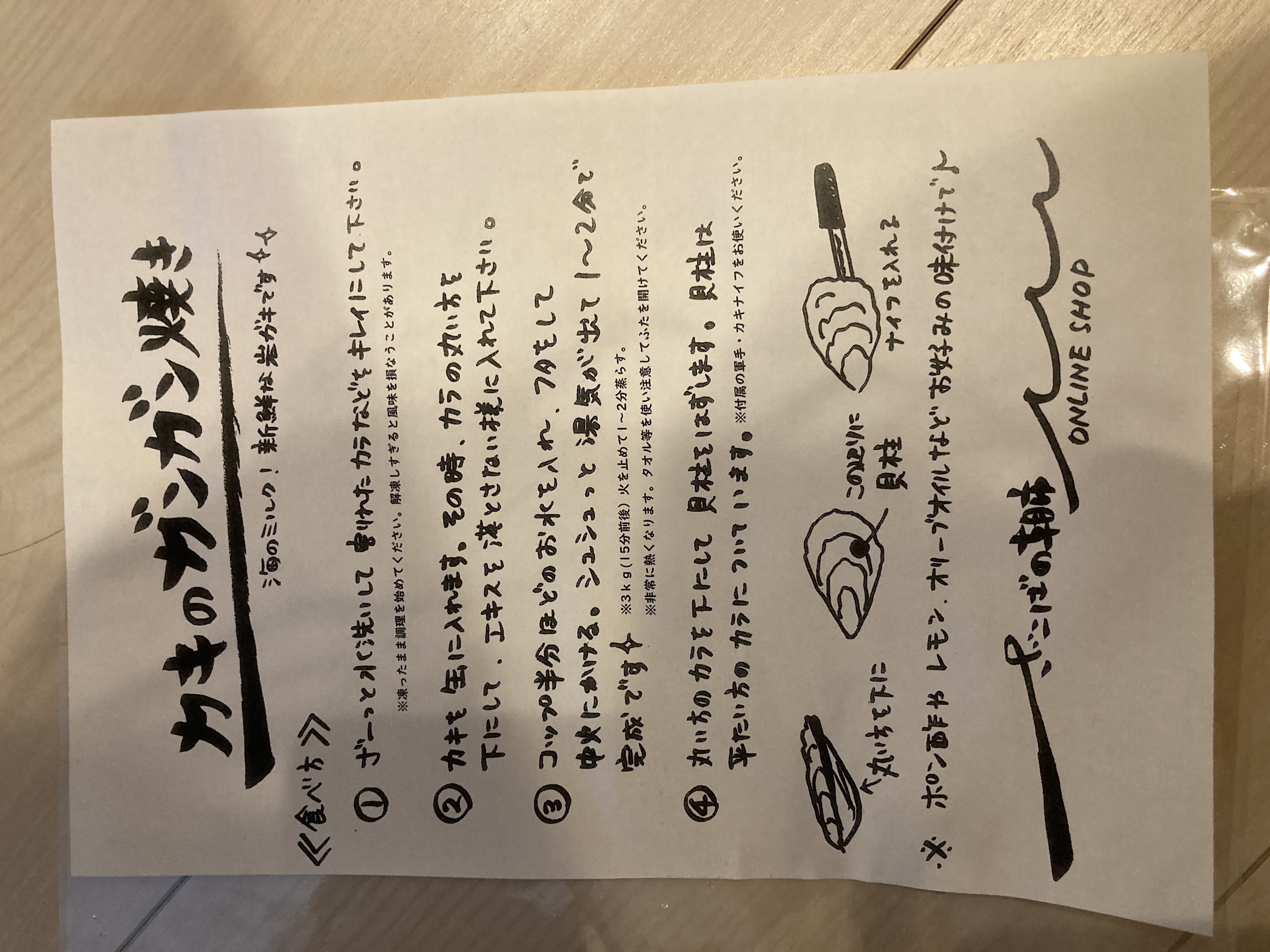 調理法、牡蠣の殻の剥き方もイラスト入りでわかりやすく書かれた用紙が同封されているので、どなたに贈っても安心です。
