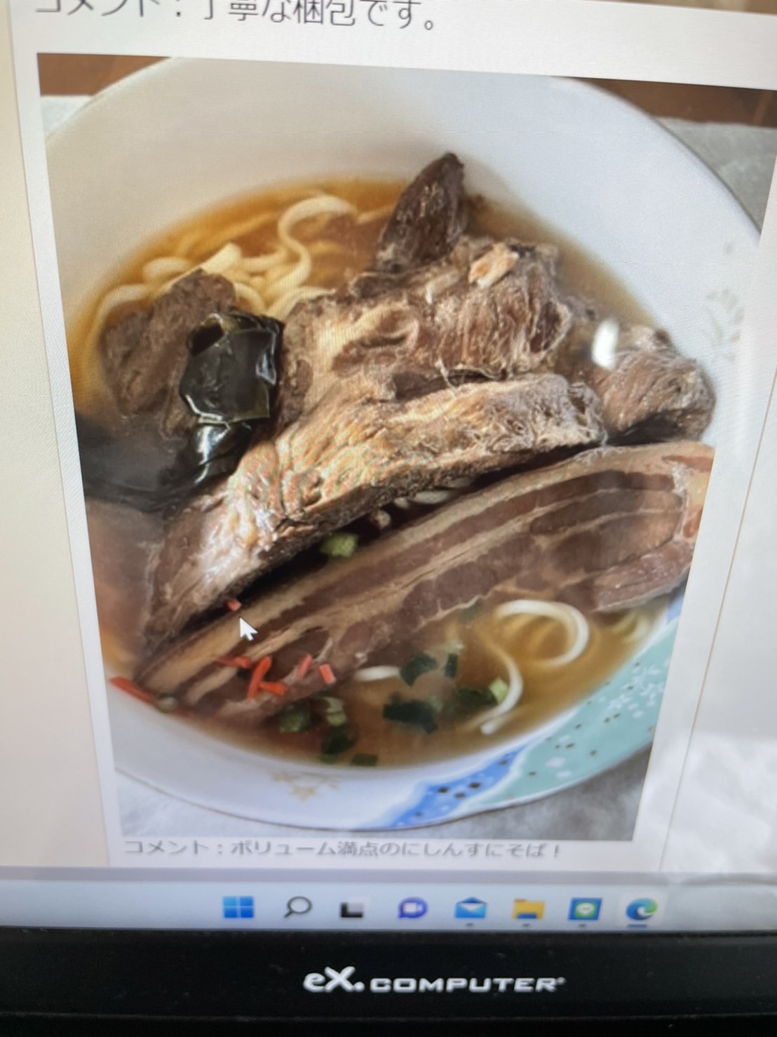 見た目のインパクトが何より骨つきソーキ肉(どデカ本ソーキ)が凄く大きく厚みも有り柔らかでじっくり煮込まれていて橋を入れても「すっーと」お肉が剥がれ、味も良く染みて柔らかく美味で私が沖縄そばを食べて来た中でNo.1に成りました。