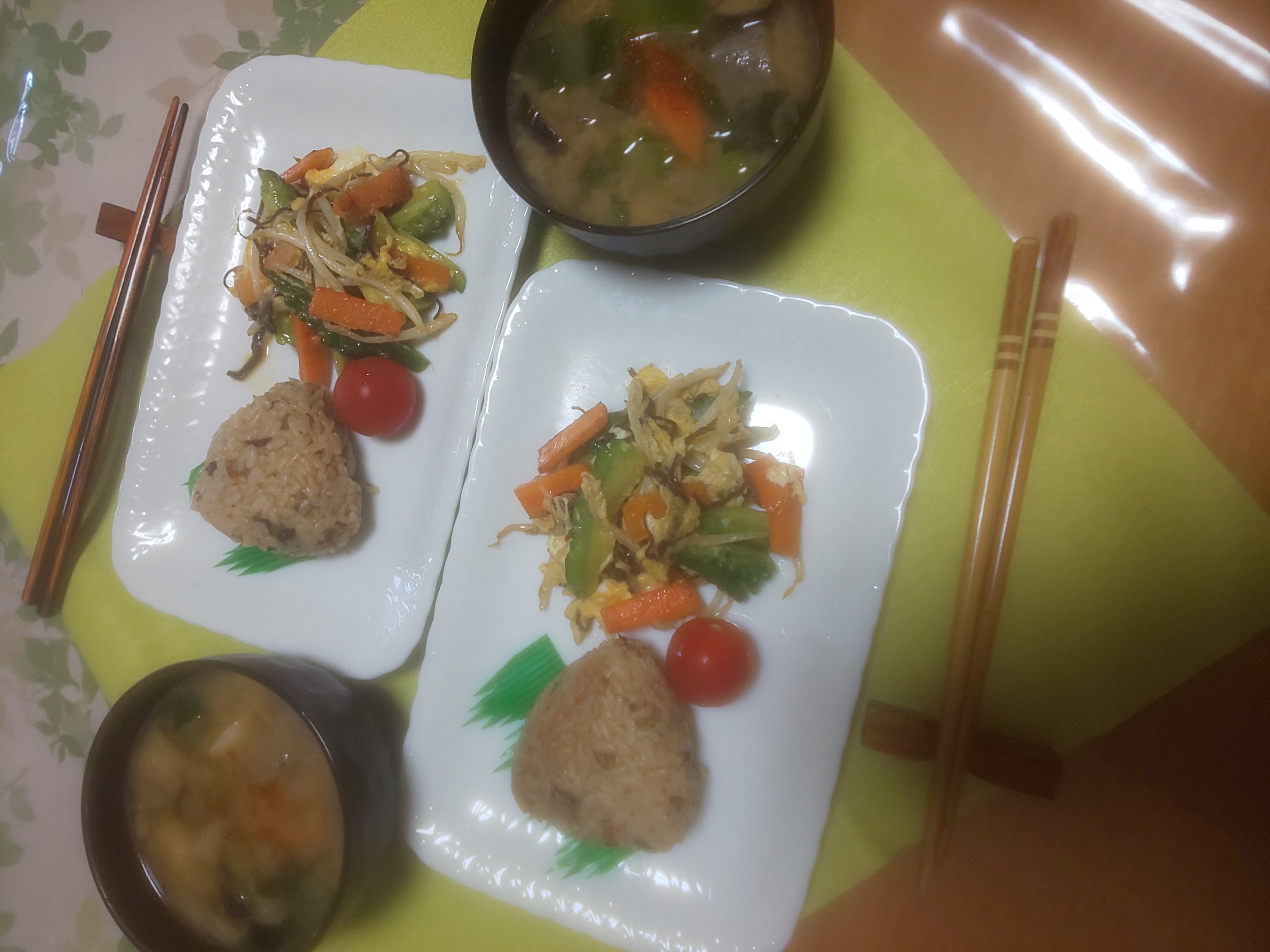 温めるだけで優しい味の野菜いり混ぜ御飯おにぎりに成っていたので食べやすかったです。
