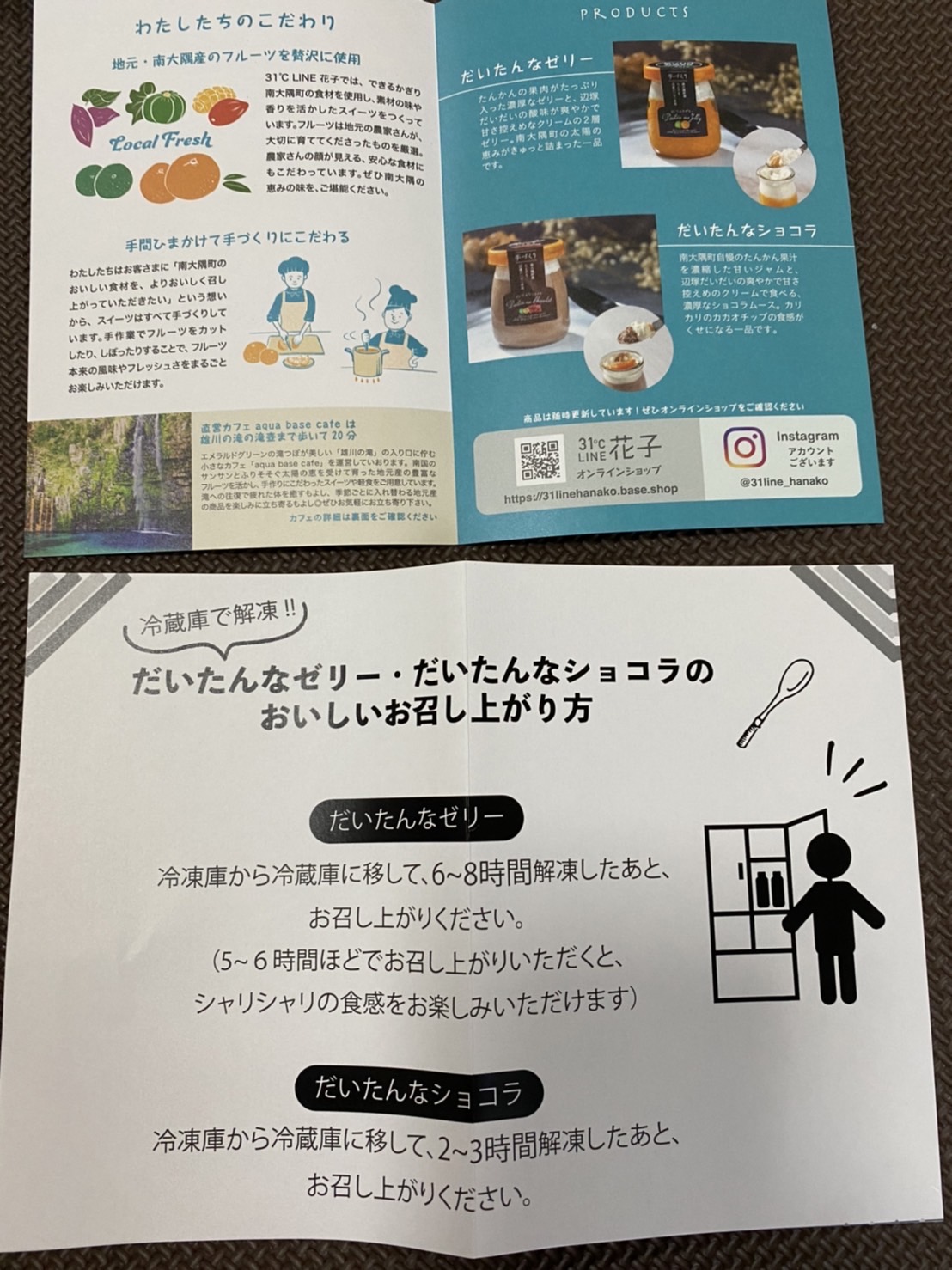 31℃ LINE 花子では、できるかぎり南大隅町の食材を使用し、素材の味や香りを活かしたスイーツをつくっています。フルーツは地元の農家さんが、大切に育ててくださったものを厳選。農家さんの顔が見える、安心な食材にもこだわっています。ぜひ南大隅の恵みの味を、ご堪能ください。