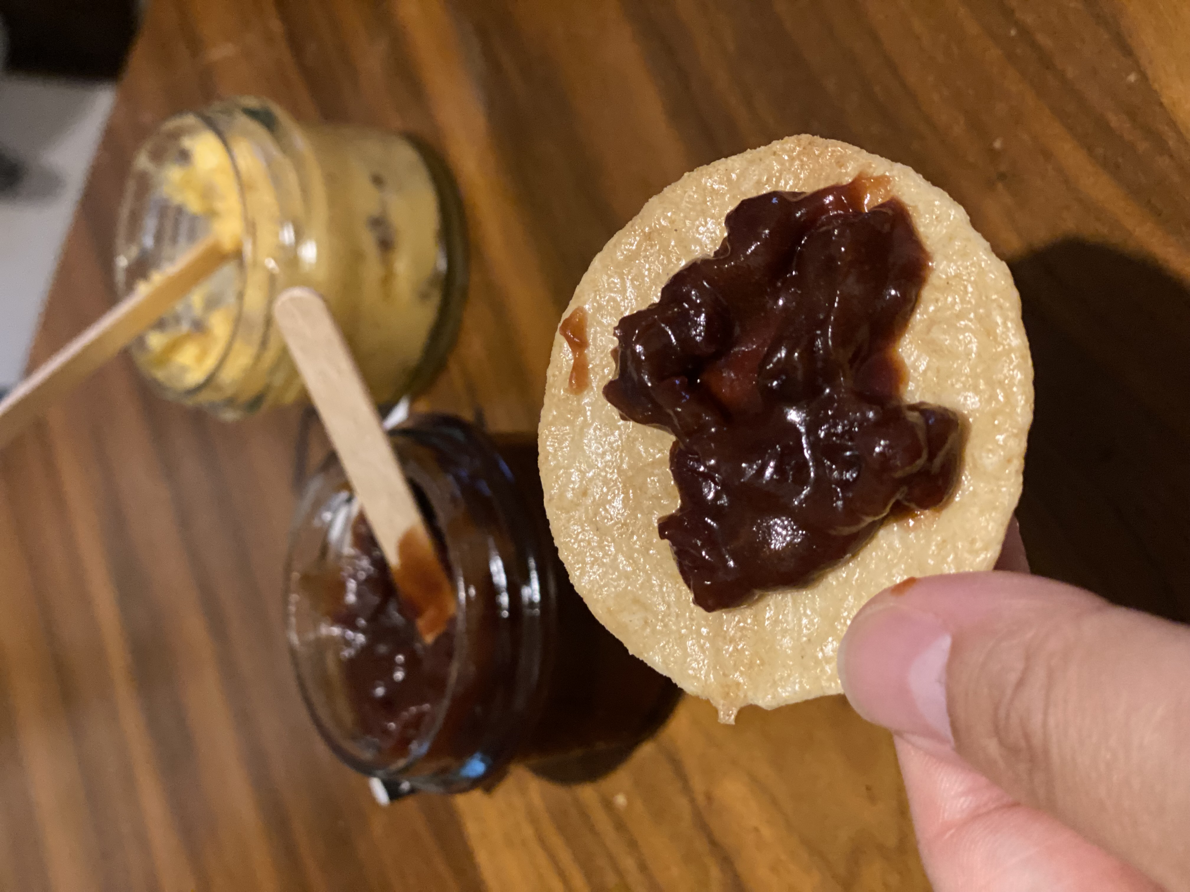 素焼きの玄米煎餅は、軽くて飽きのこないシンプル味、それにピッタリのディップ!