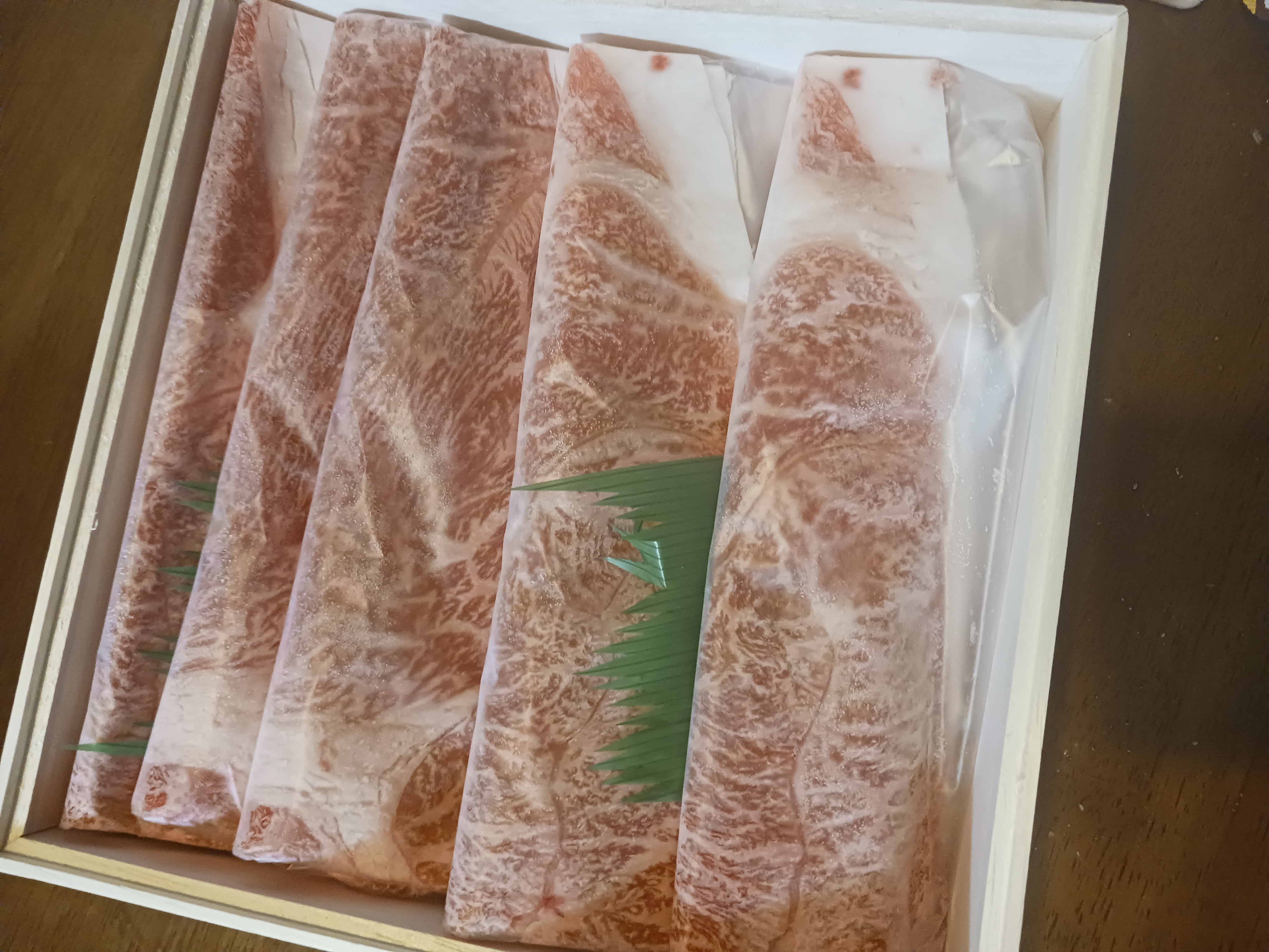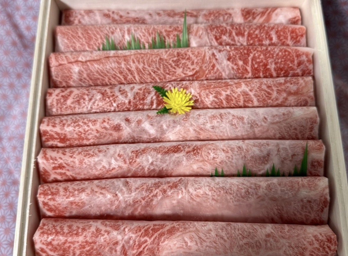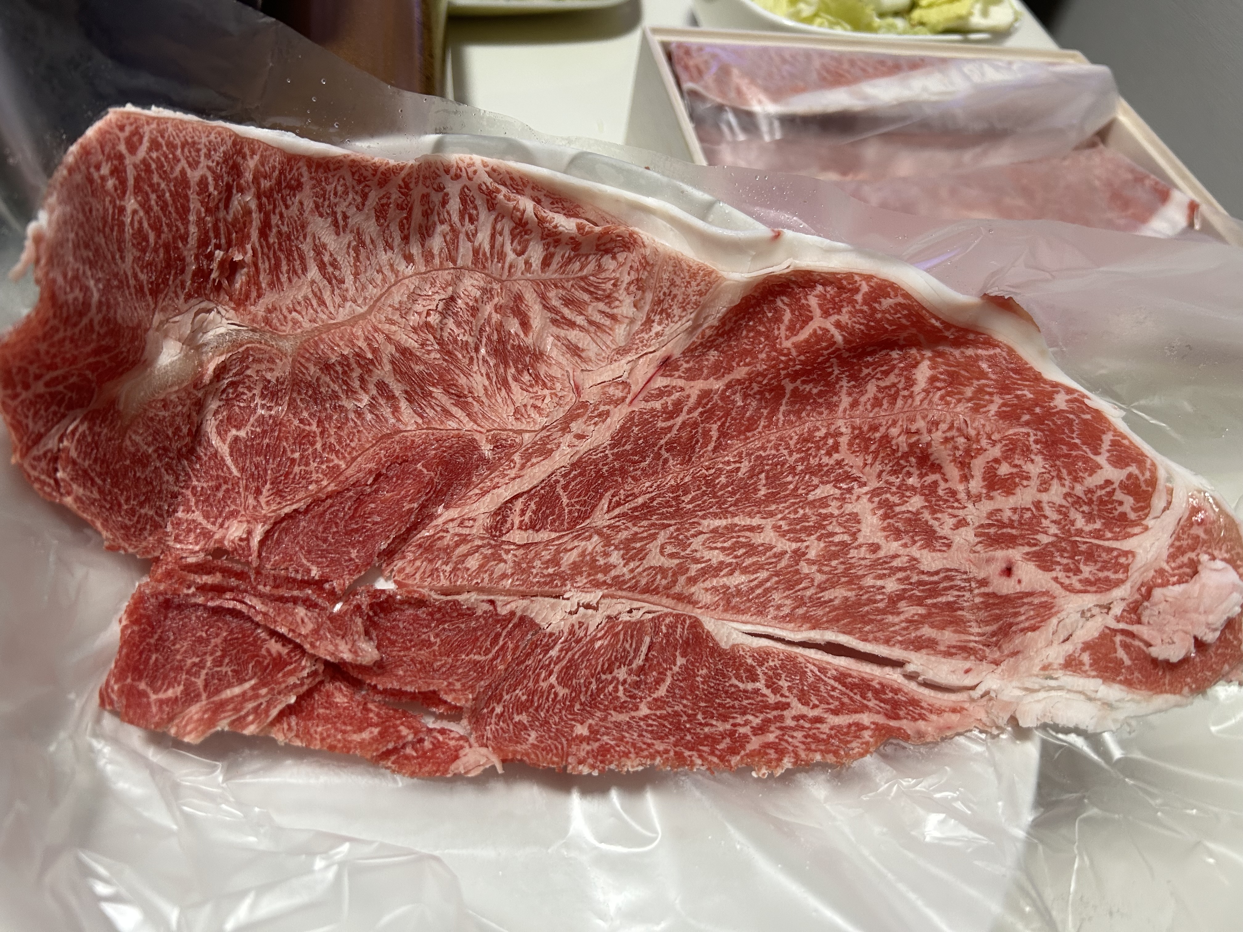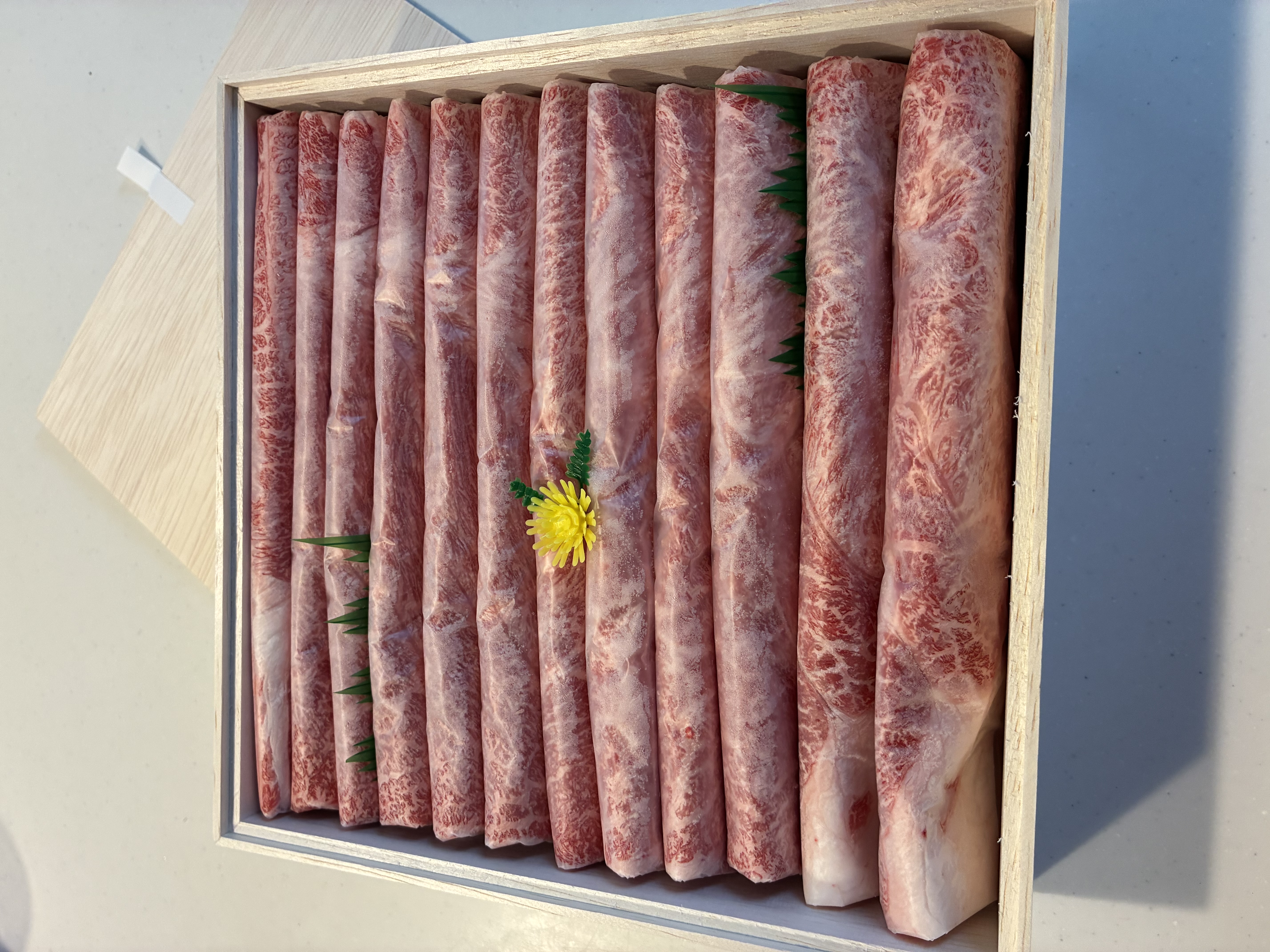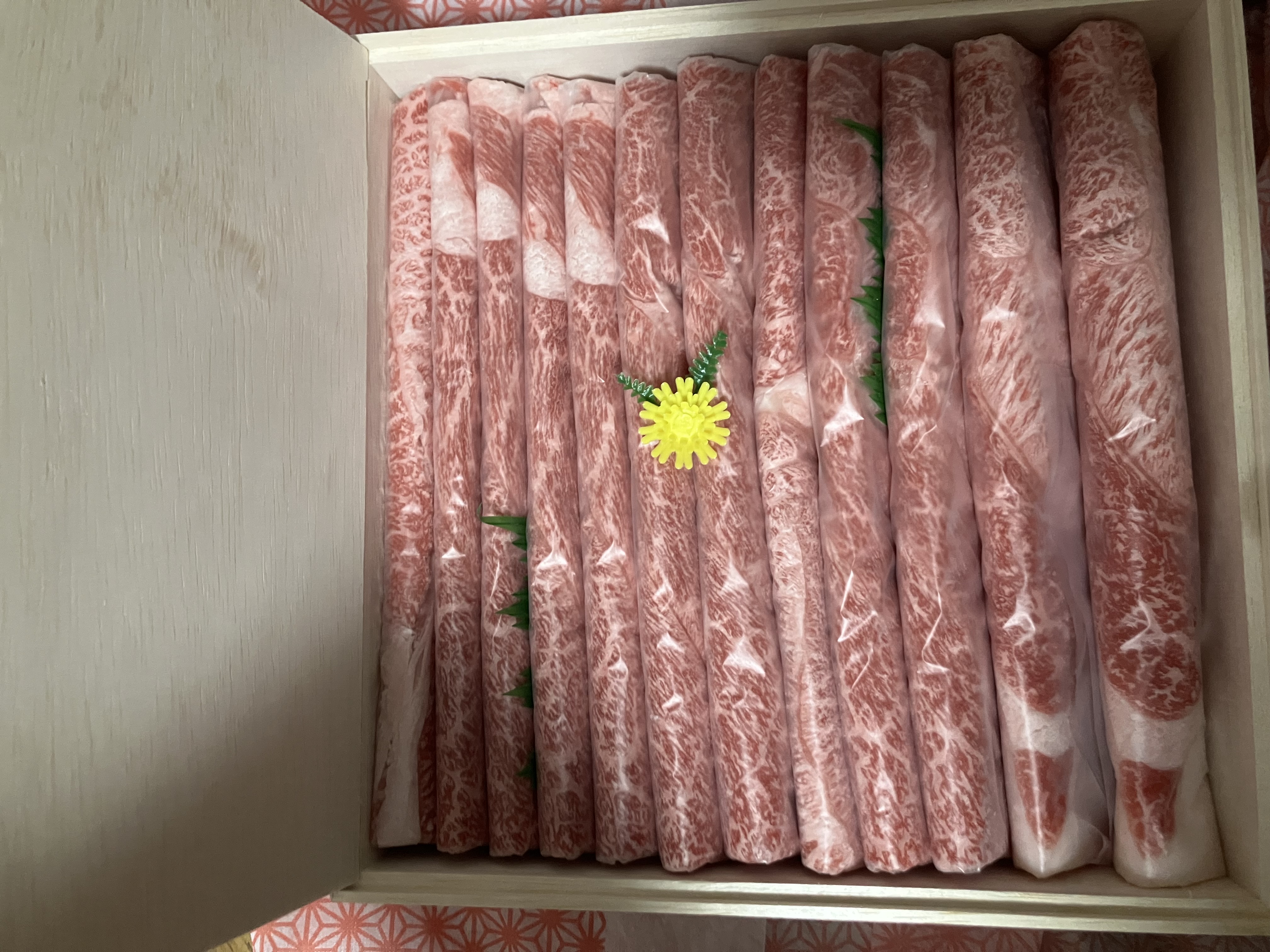 赤身が多くてヘルシーなこの部位ウデ、ミスジはしゃぶしゃぶやすき焼きに最適な部位だとか!納得の美味しさです。