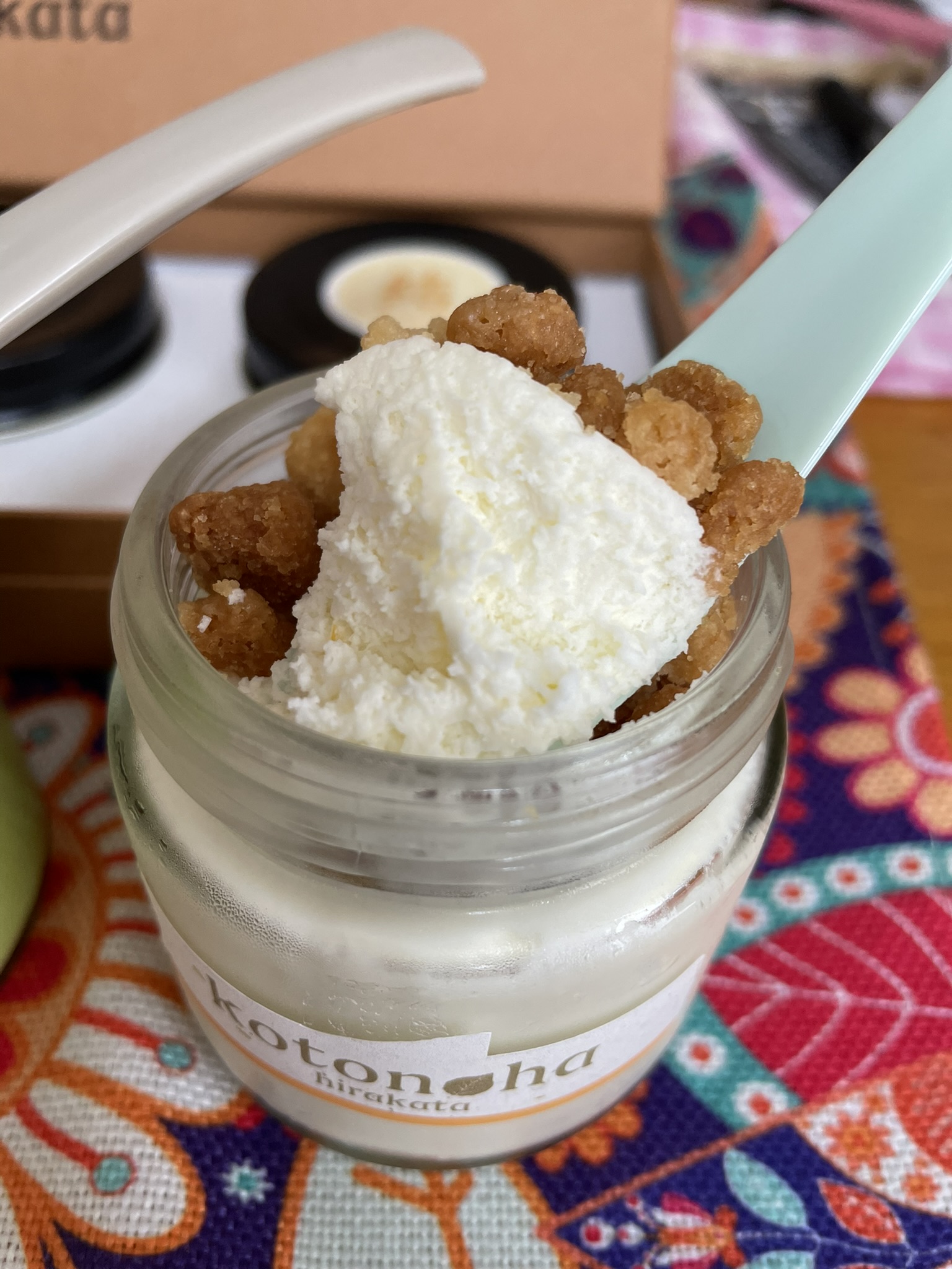 個人的にはシュトロイゼルのクッキーと一緒に食べるのが最高なので、もう少しクッキーが多いと最後まで一緒に味わえて良いなと思いました!