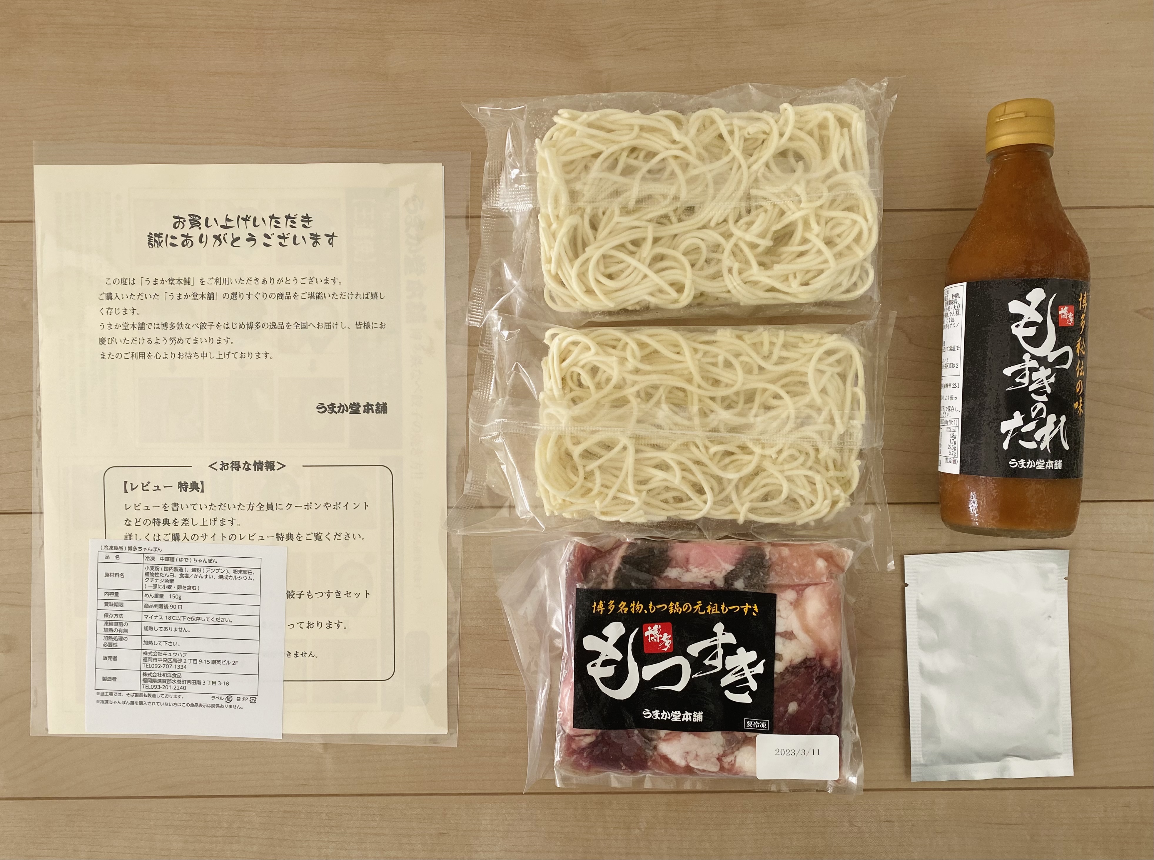 ショウチョウ、赤センマイ(ギアラ)、モウチョウ、センマイ、ハツ、鮮度抜群の5種の部位がミックスして入っています。食べるたびに食感が違うのが、面白いです。締めはちゃんぽん麺が付属しています。九州の締めという感じで、これまた甘辛いタレによく合います。ご飯をお供に食べるのも美味しいですが、味が染み込んだちゃんぽん麺は別格です。冷凍で届くので、ニラやキャベツなど好きな野菜を入れればバランスもいいし、お酒のお供としても最適なのではないかと思いました。個人的にまたお取り寄せしたいと思えるような美味しい逸品でした。