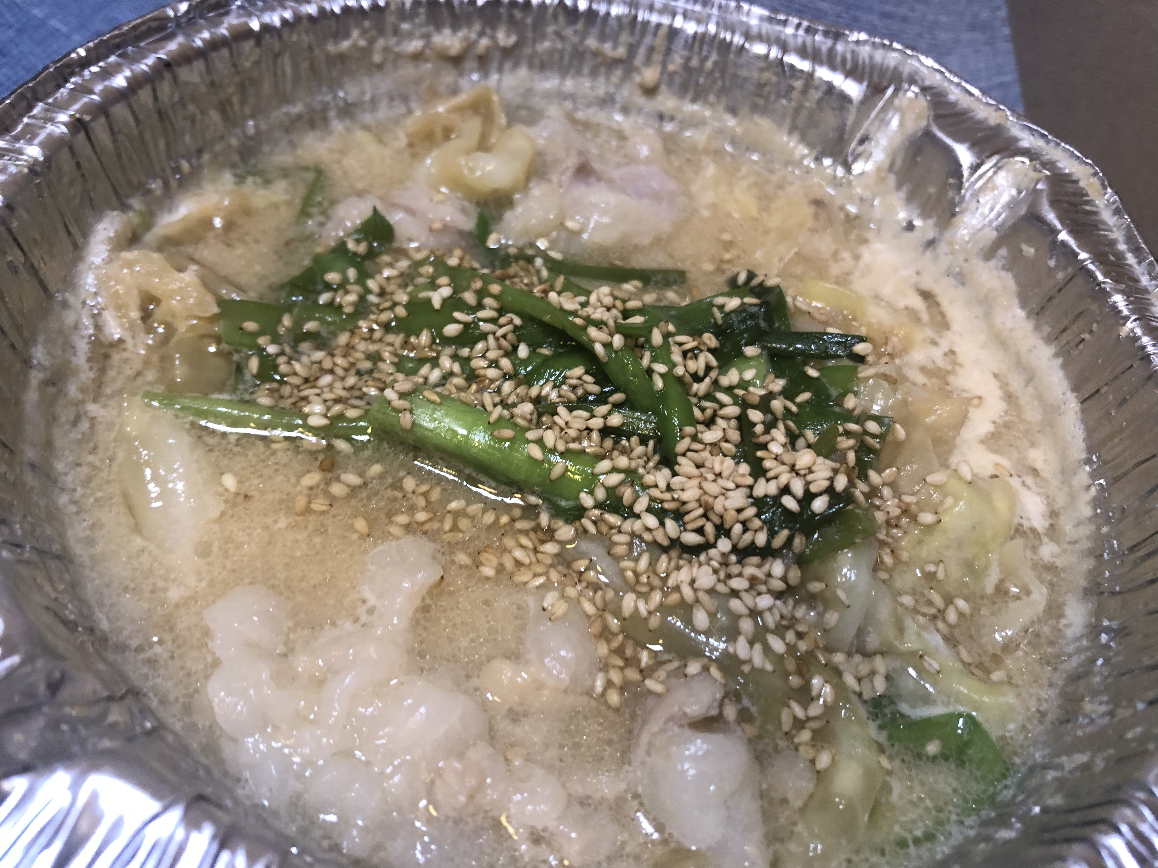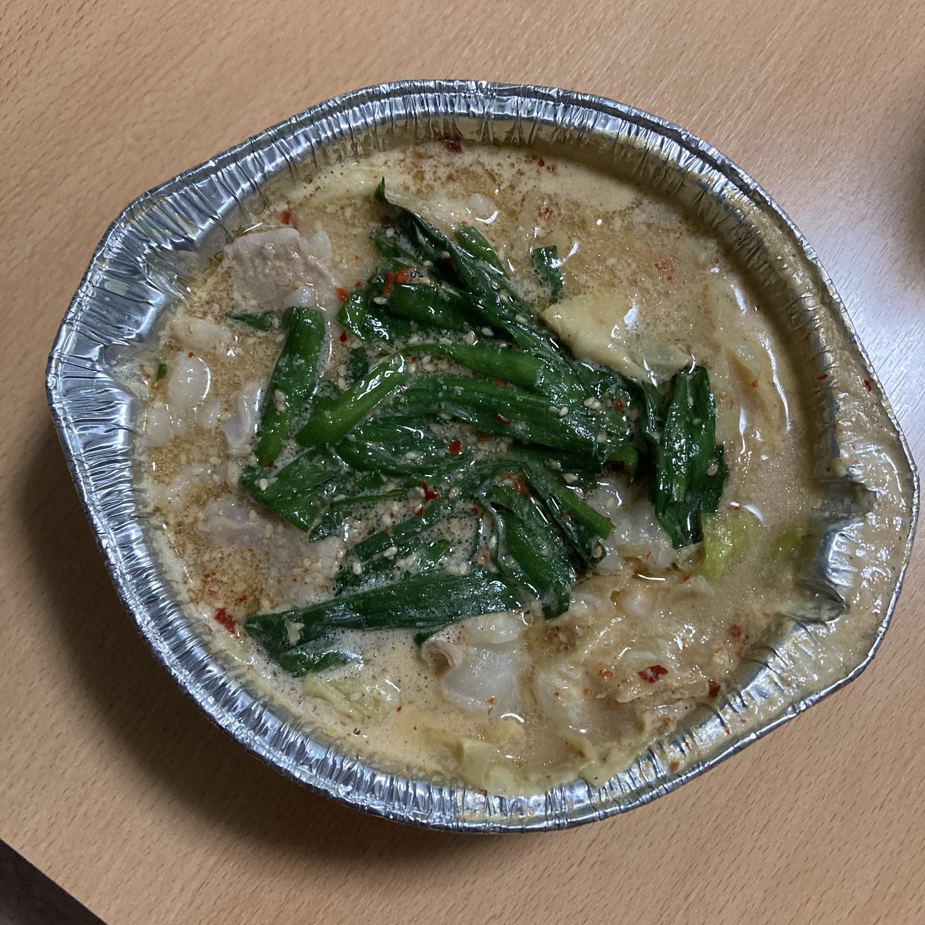 綺麗にモツが並べられ、ニラもたっぷり!煮込んでさっそくいただくと、モツも野菜もたっぷりで大満足!お味は少し濃いめ。濃すぎる方は調整すれば良いかと思います。