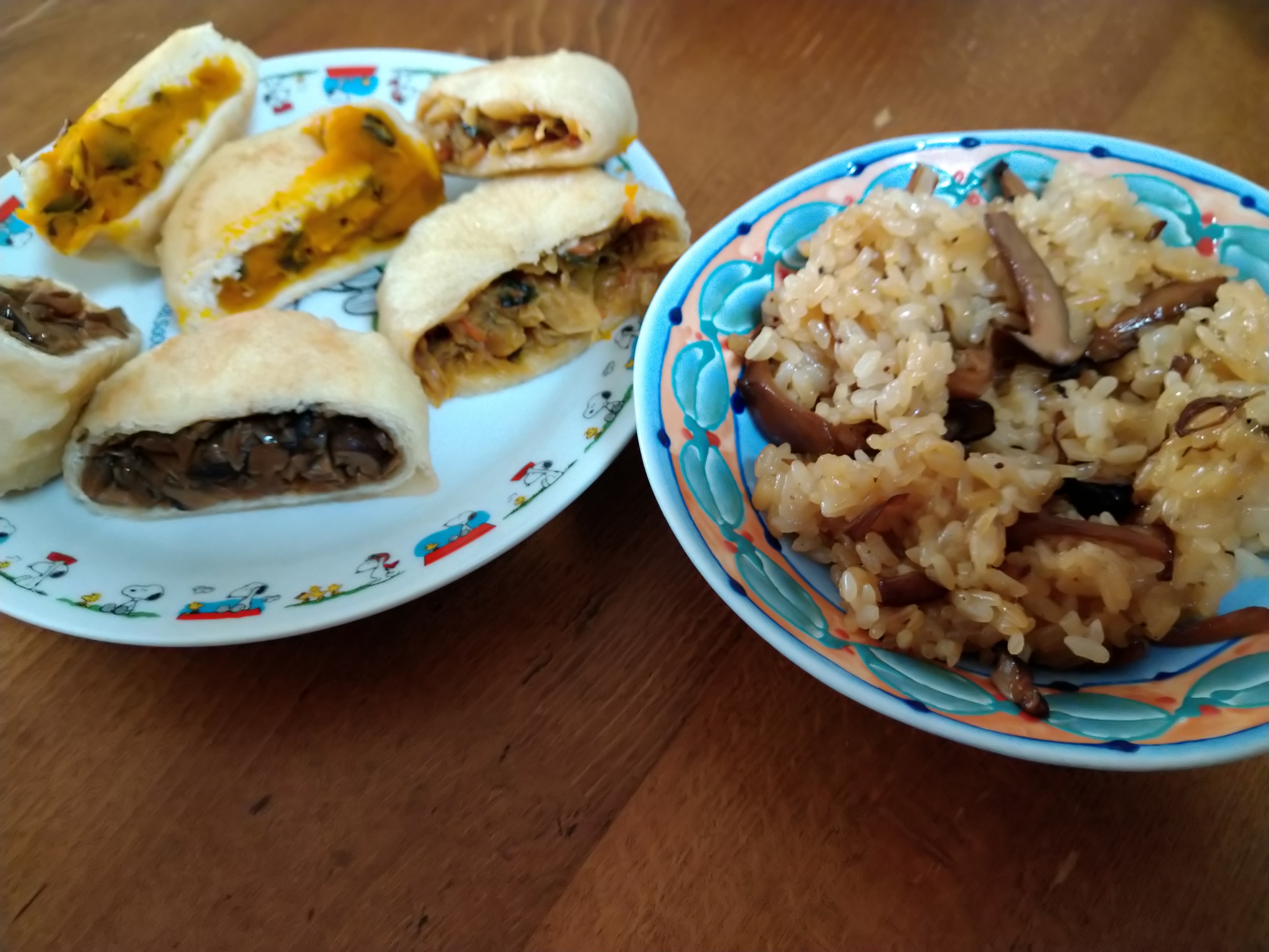 信州の郷土食「おやき」、信寿食はごちそう具材をもっちり皮で包み込んでいます。