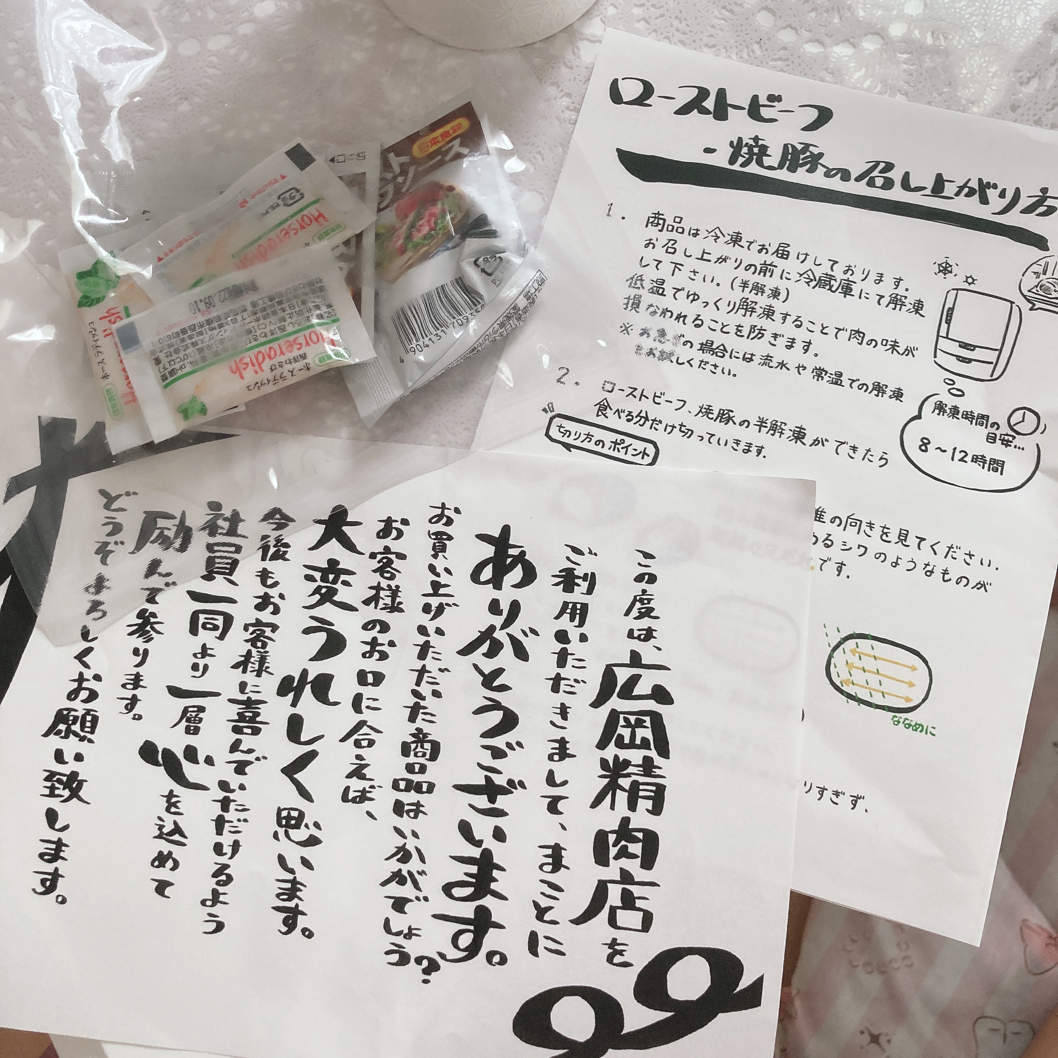 そして、美味しい食べ方が記載されたペーパーと、広岡精肉店さんからのお手紙です。