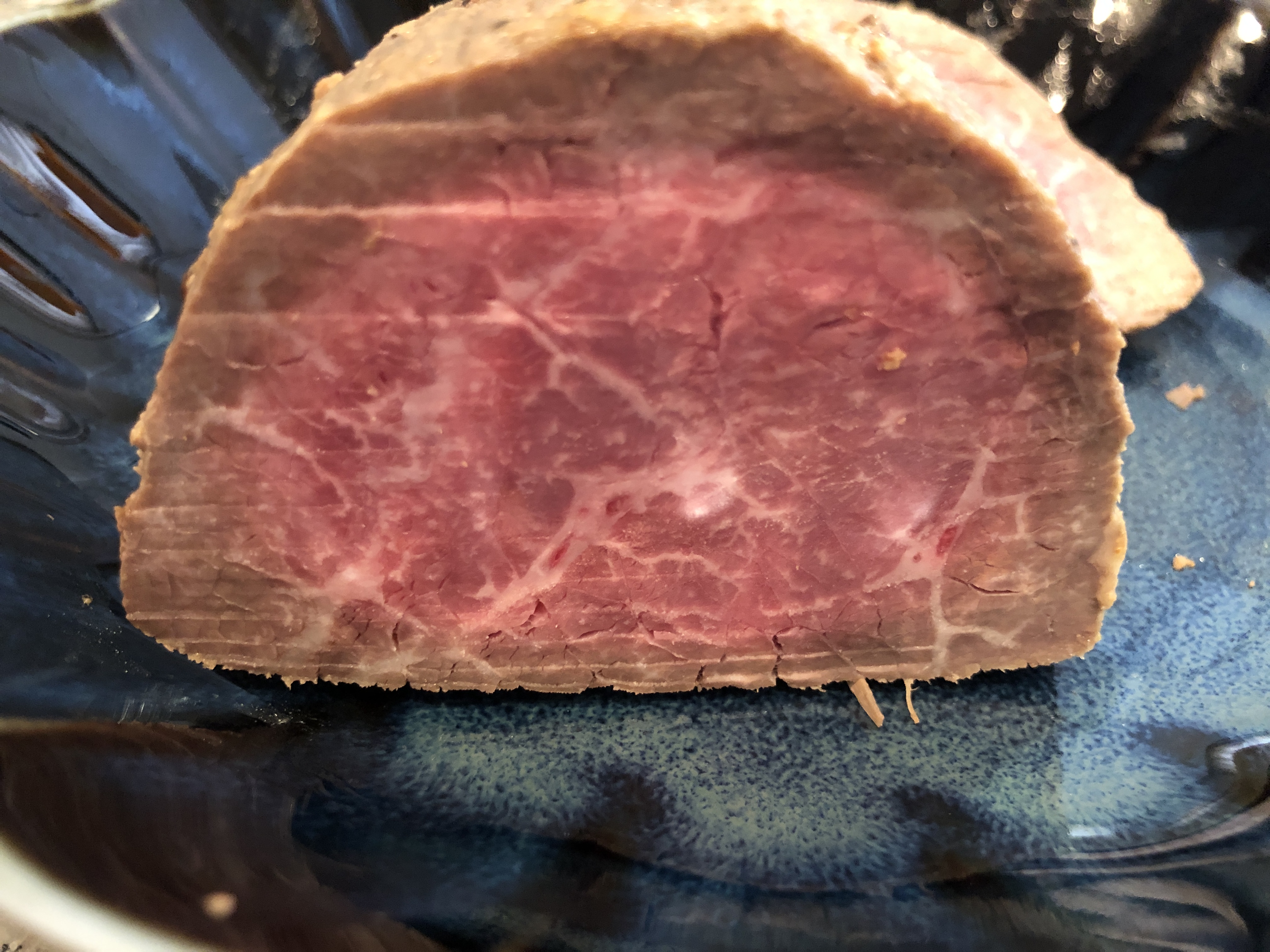 もも肉のローストビーフ、自宅用にもお取り寄せしたいお品です。