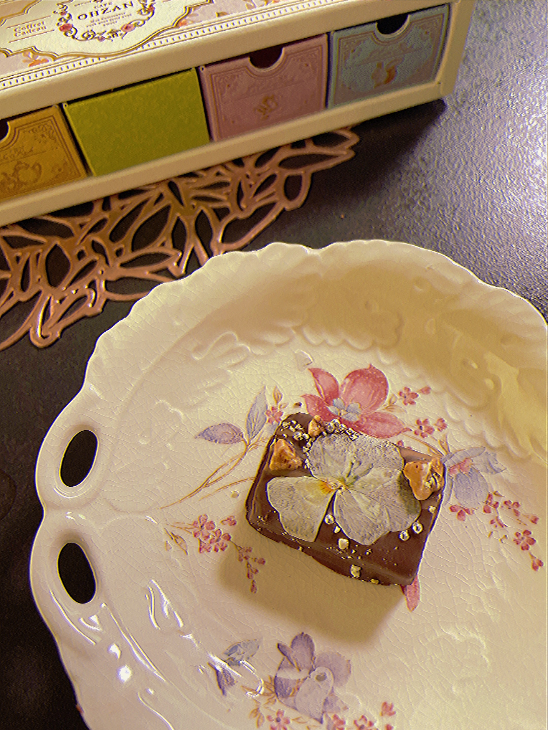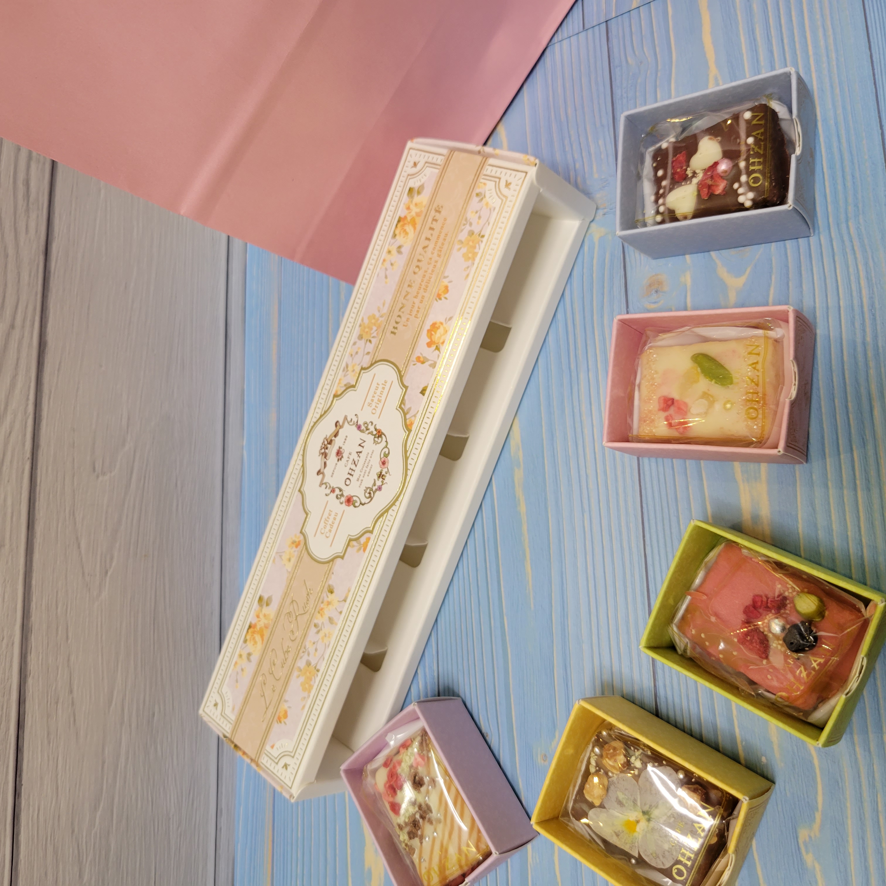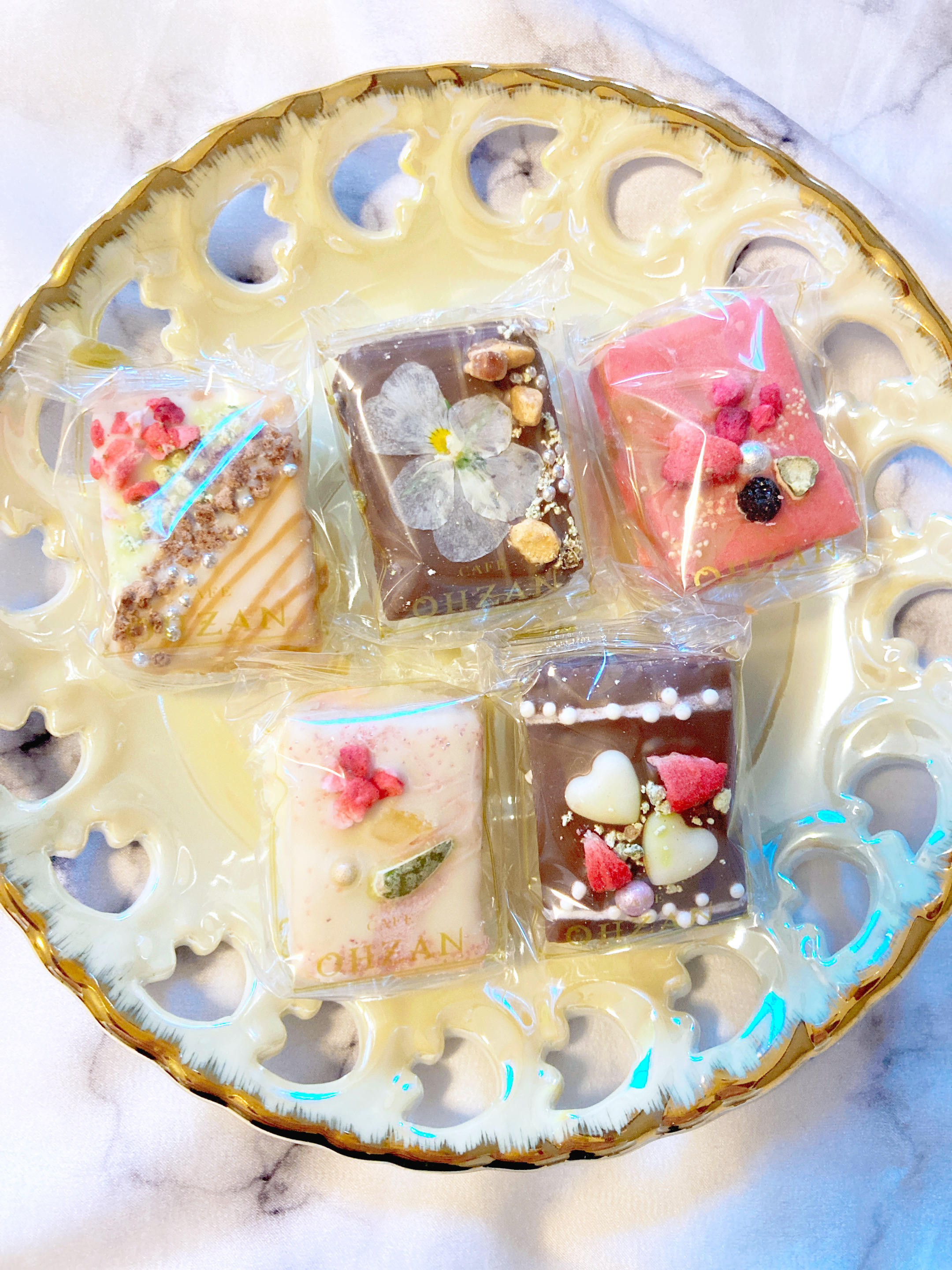 低温でじっくり焼き上げたサクサクのパンドゥミーにチョコレートをコーティングした「キューブラスク」です。手のひらサイズのラスクに、お花やフルーツで彩り豊かにデコレーション。小さいけれど“かわいい”がぎゅっと詰まっています。花をあしらった可愛らしいボックスに入って届くので、手土産スイーツとしてもおすすめです。