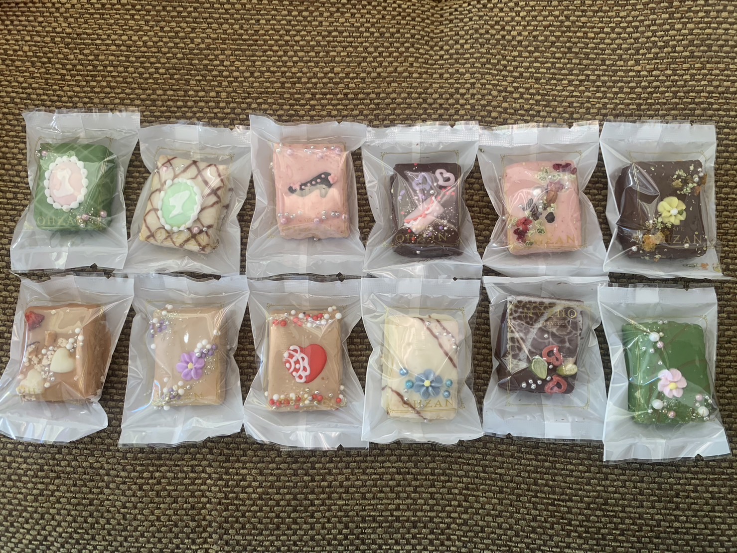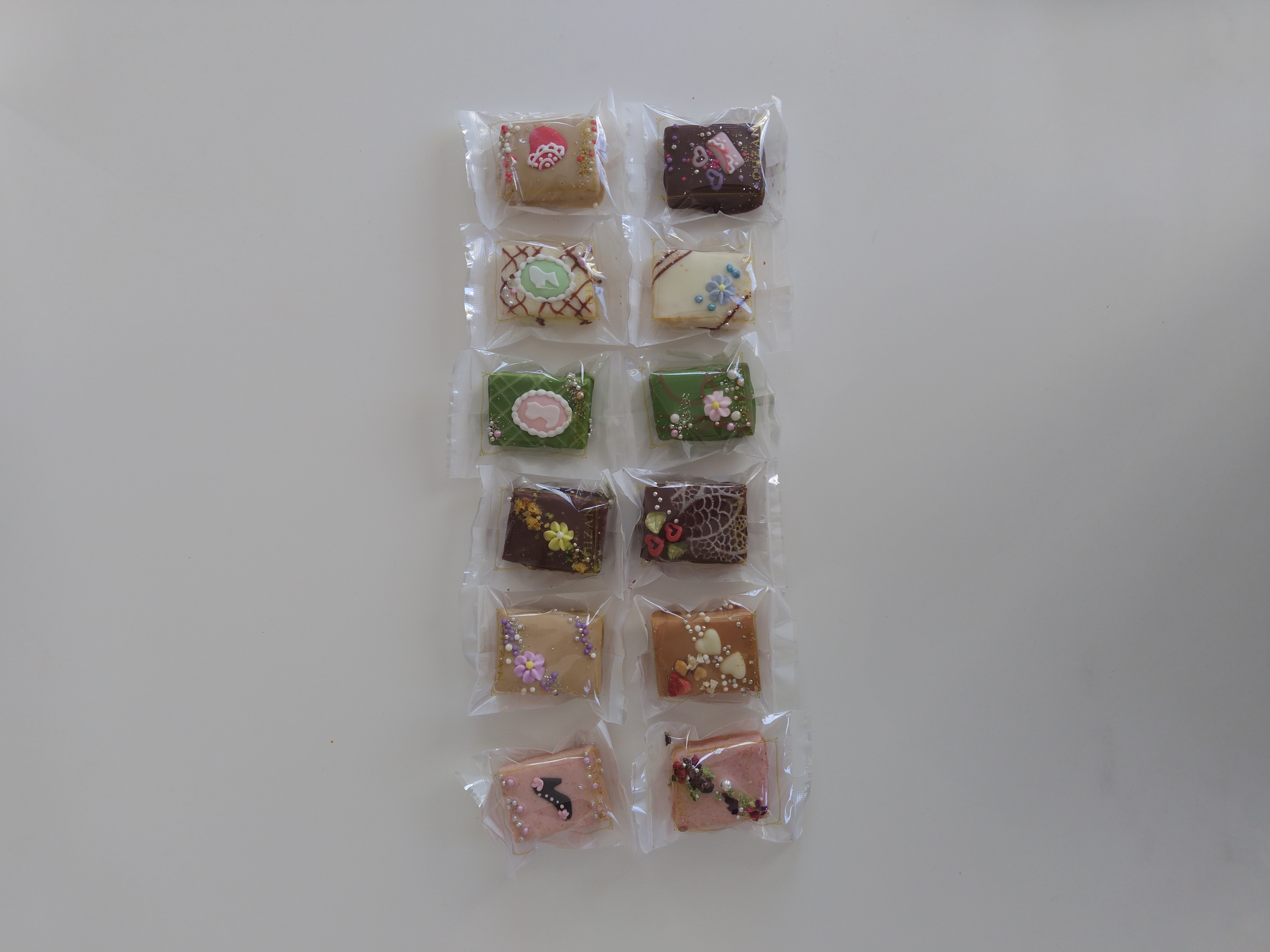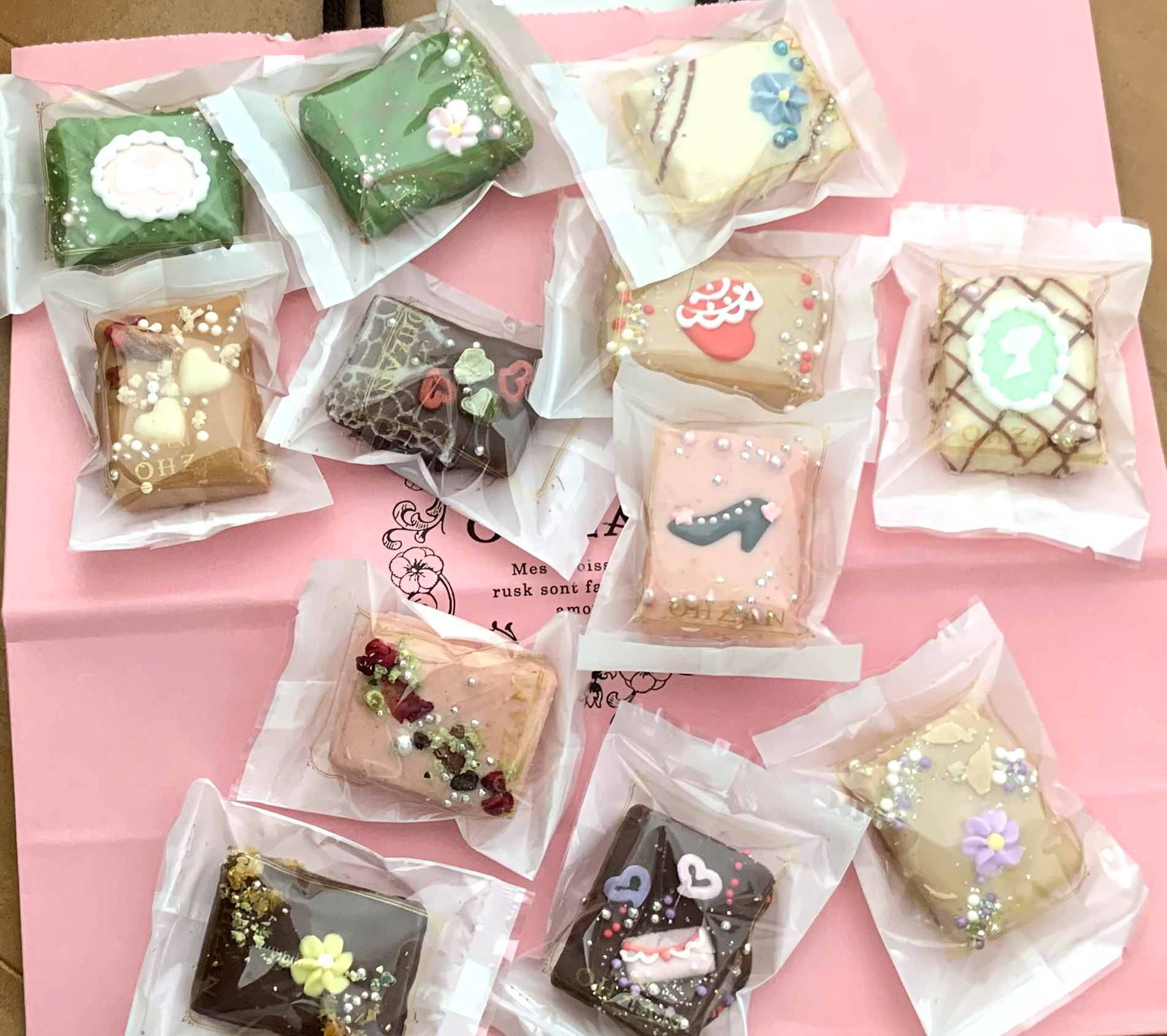 ワクワクしながら箱を開けてみると、色とりどりにデコレーションされたラスクが顔を出しました。驚いたのは、12個全部が違うデコレーションがされていたこと。手間ひまかかっているのが、一目でわかります。女子は、これを贈られたら大喜びすること間違いなし!!