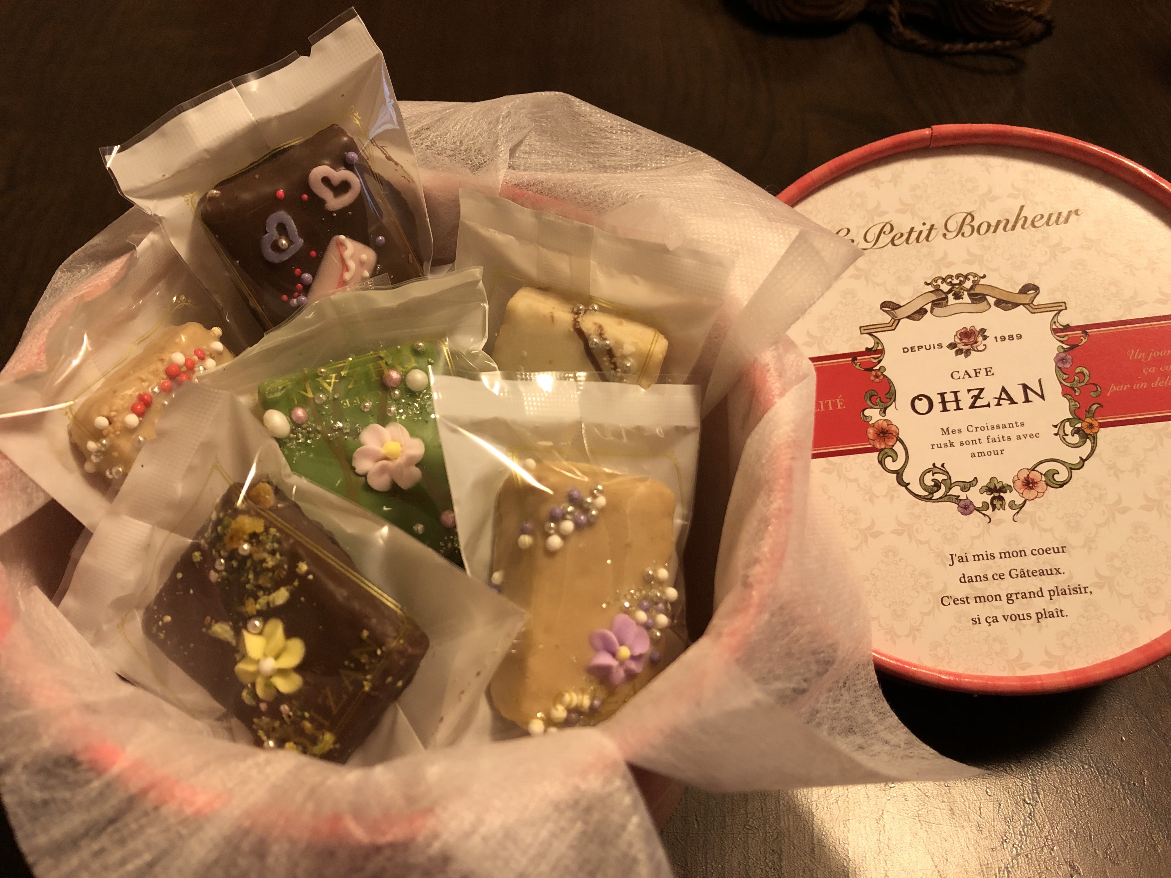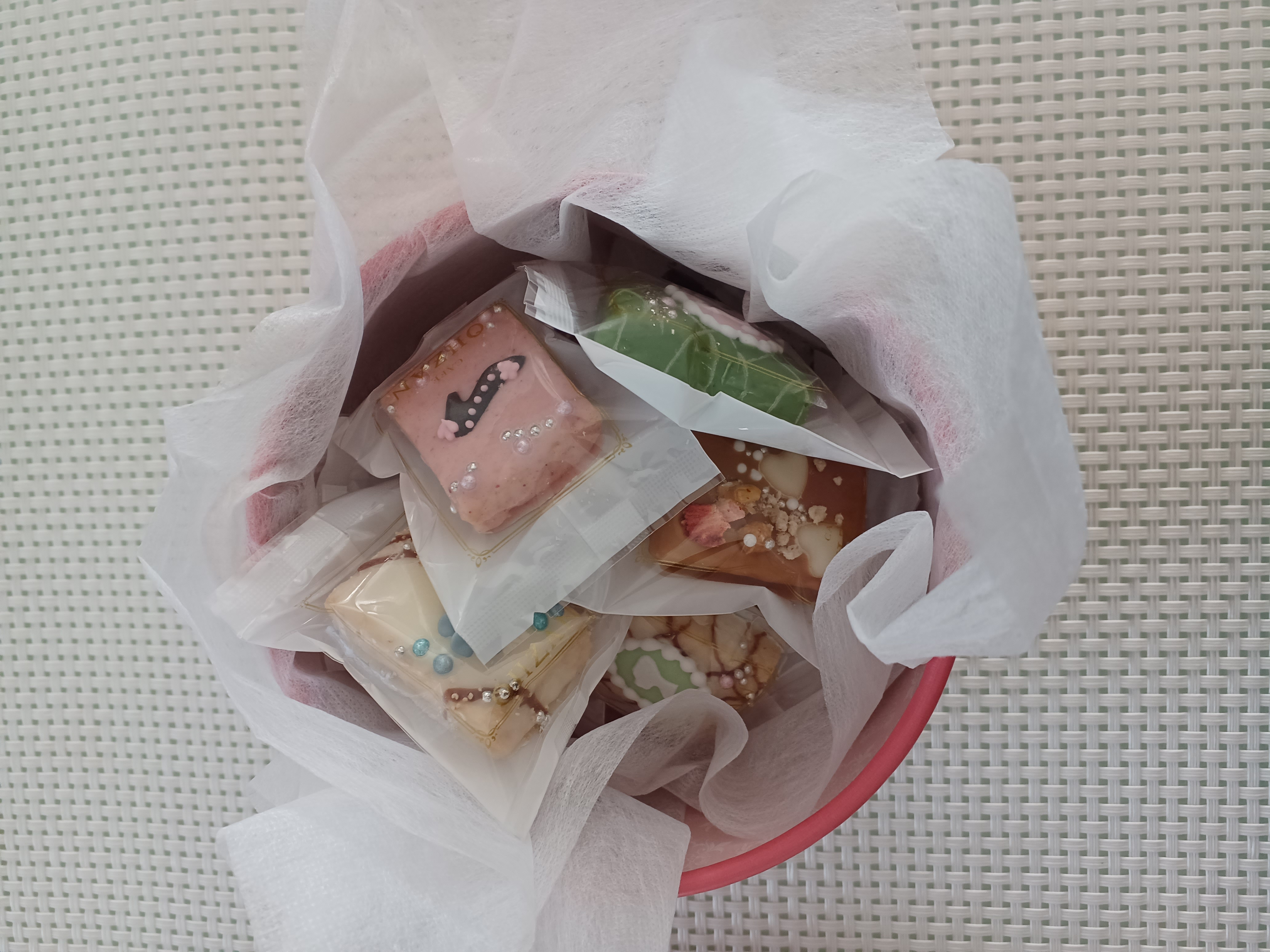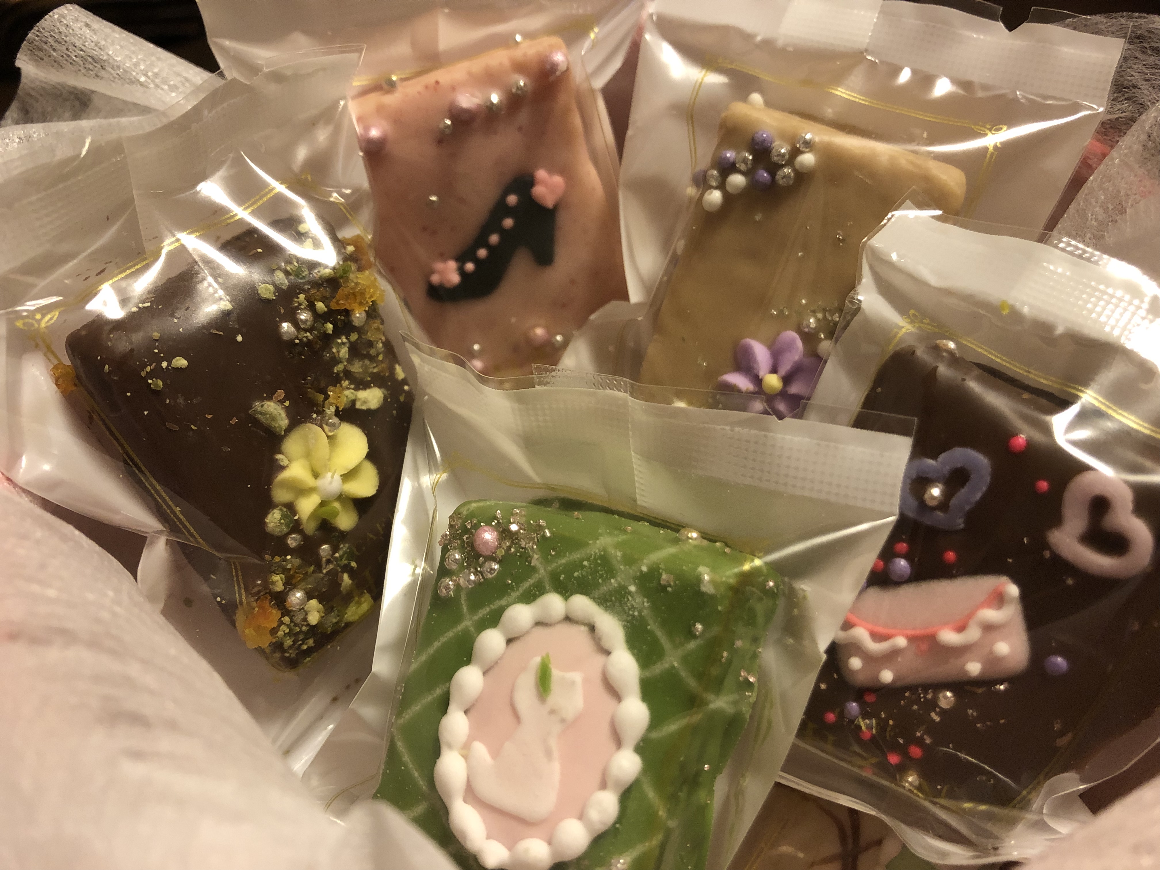 ワクワクしながら箱を開けてみると、色とりどりにデコレーションされたラスクが顔を出しました。驚いたのは、12個全部が違うデコレーションがされていたこと。手間ひまかかっているのが、一目でわかります。女子は、これを贈られたら大喜びすること間違いなし!!