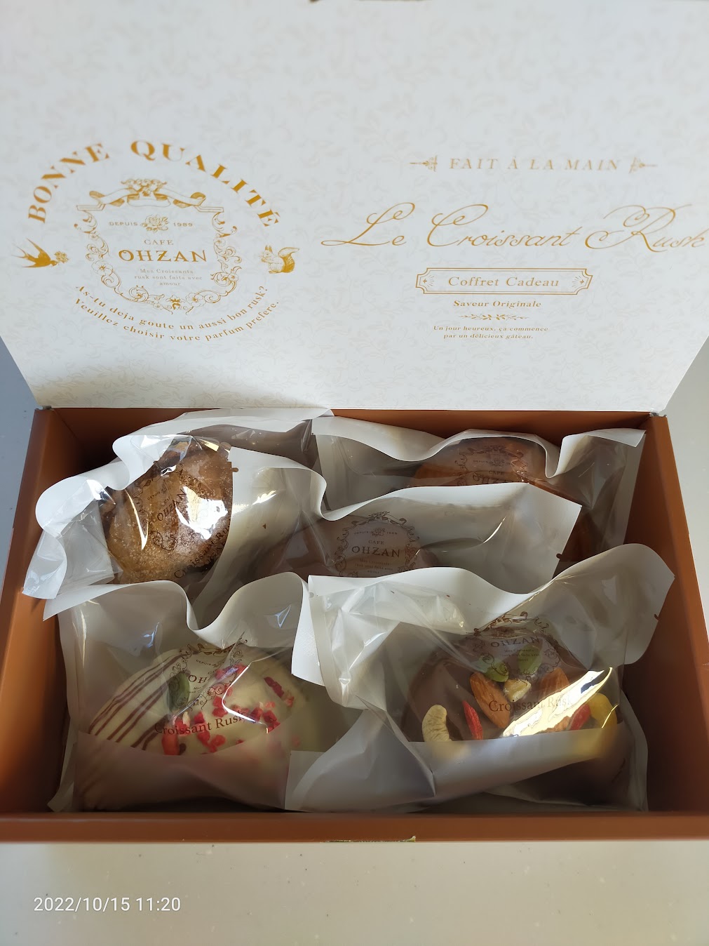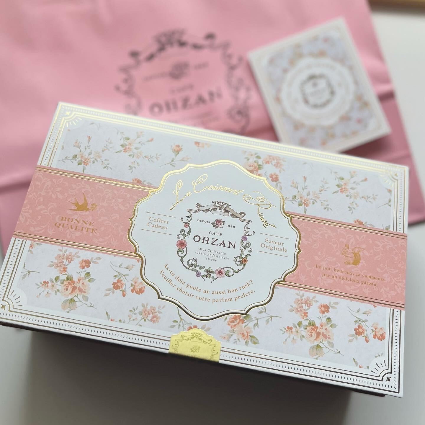 生地が細かく軽い食感のクロワッサンをじっくりと低温で二度焼きした「クロワッサンラスク」です。砂糖やキャラメルをトッピングしたシンプルな商品だけでなく、カラフルなチョコレートをコーティングし、ナッツやドライベリーなどを華やかに施した可愛らしいデザインの物など計5種セット。クロワッサンそのままの形のラスクはショップオリジナル。パッケージも可愛らしいので、手土産スイーツとしてもおすすめです。
