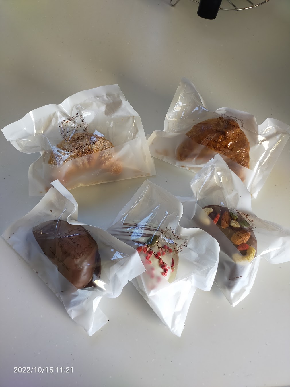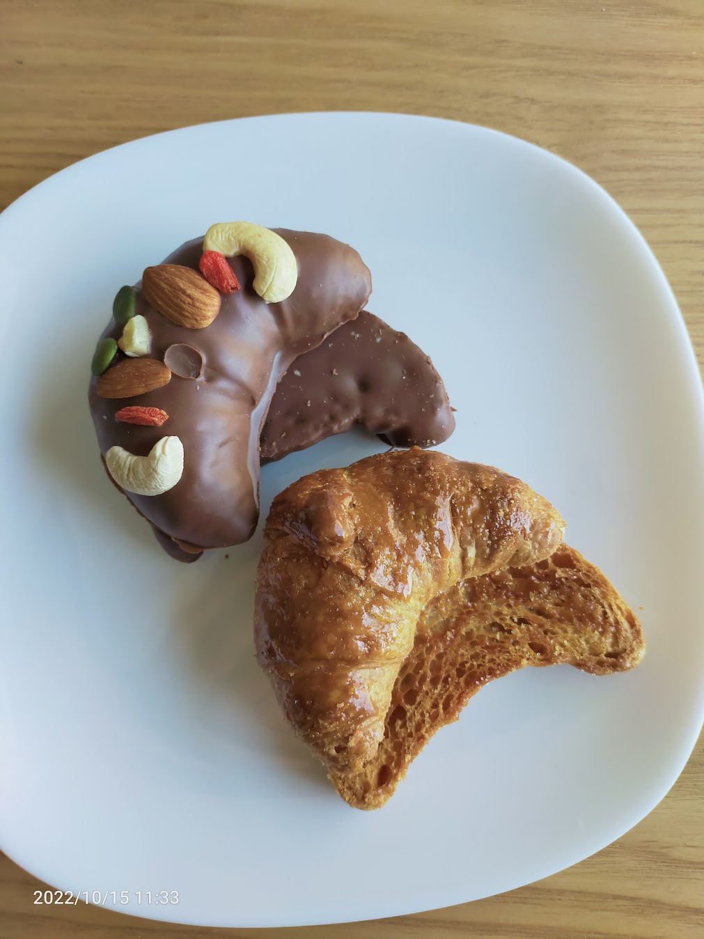 ◆ナッツミルクチョコ・・・食感が楽しいですね!いろんなナッツのカリカリ食感にクロワッサンのサクサク食感、チョコの滑らかさが加わって最高☆ナッツは、クラッシュされたものではなく、丸ごと粒で乗っているので、存在感がしっかりあります。チョコでコーティングされていることもあって、満足感もバッチリ!