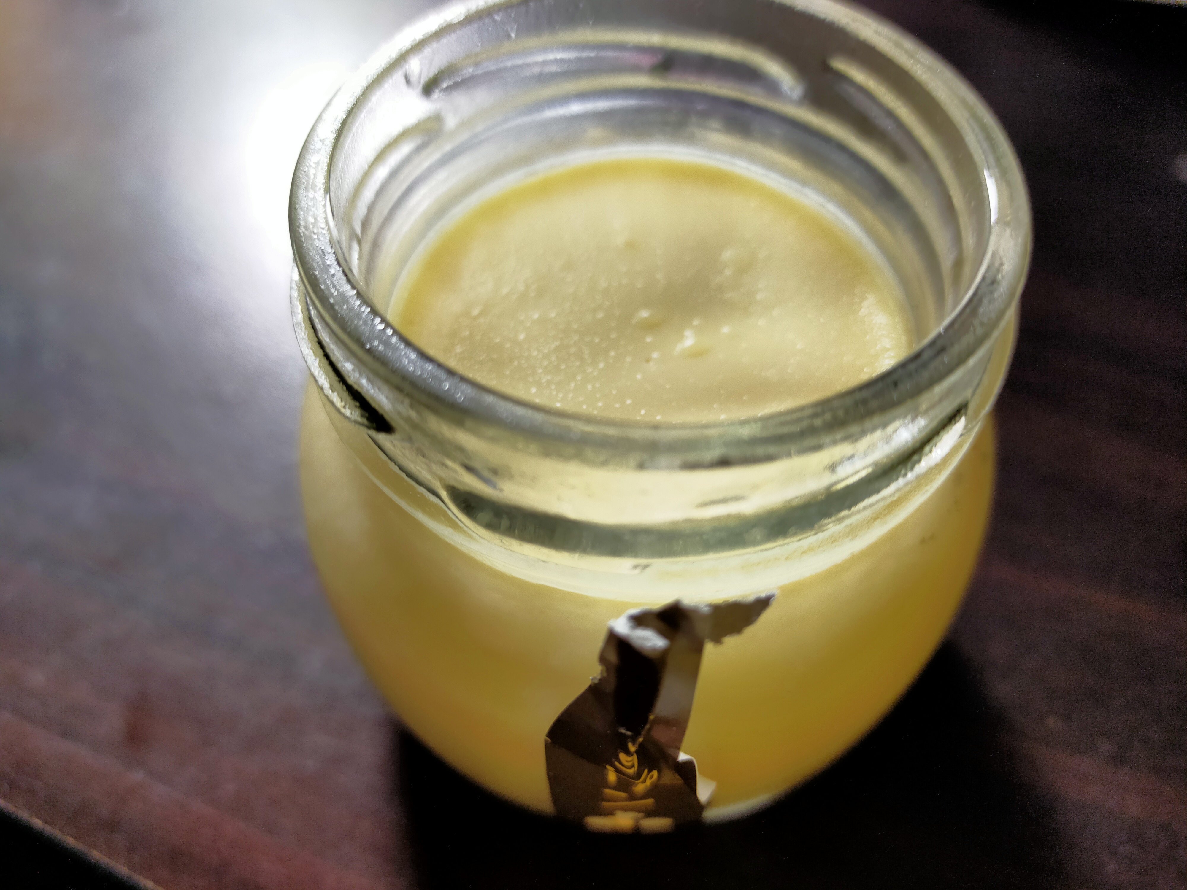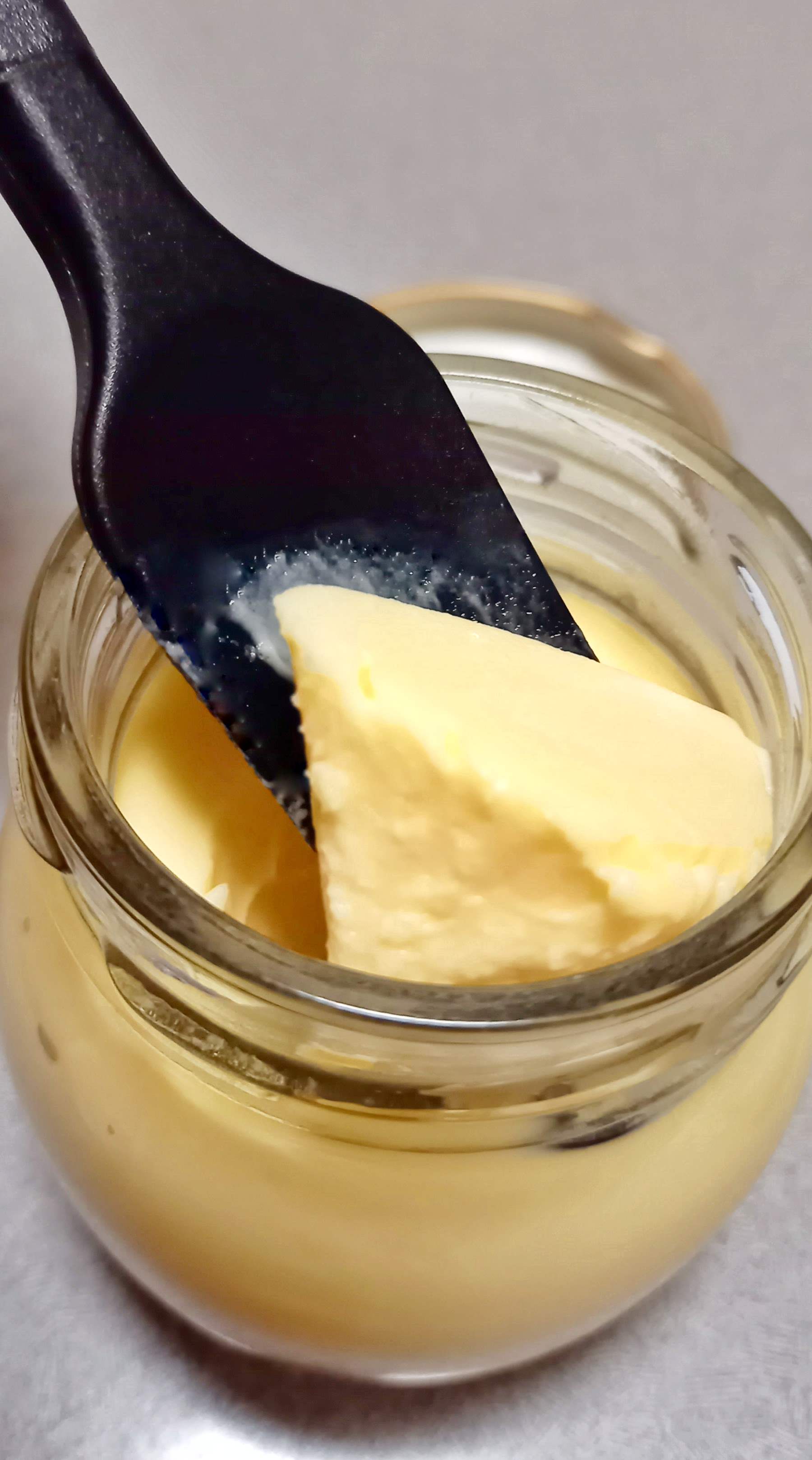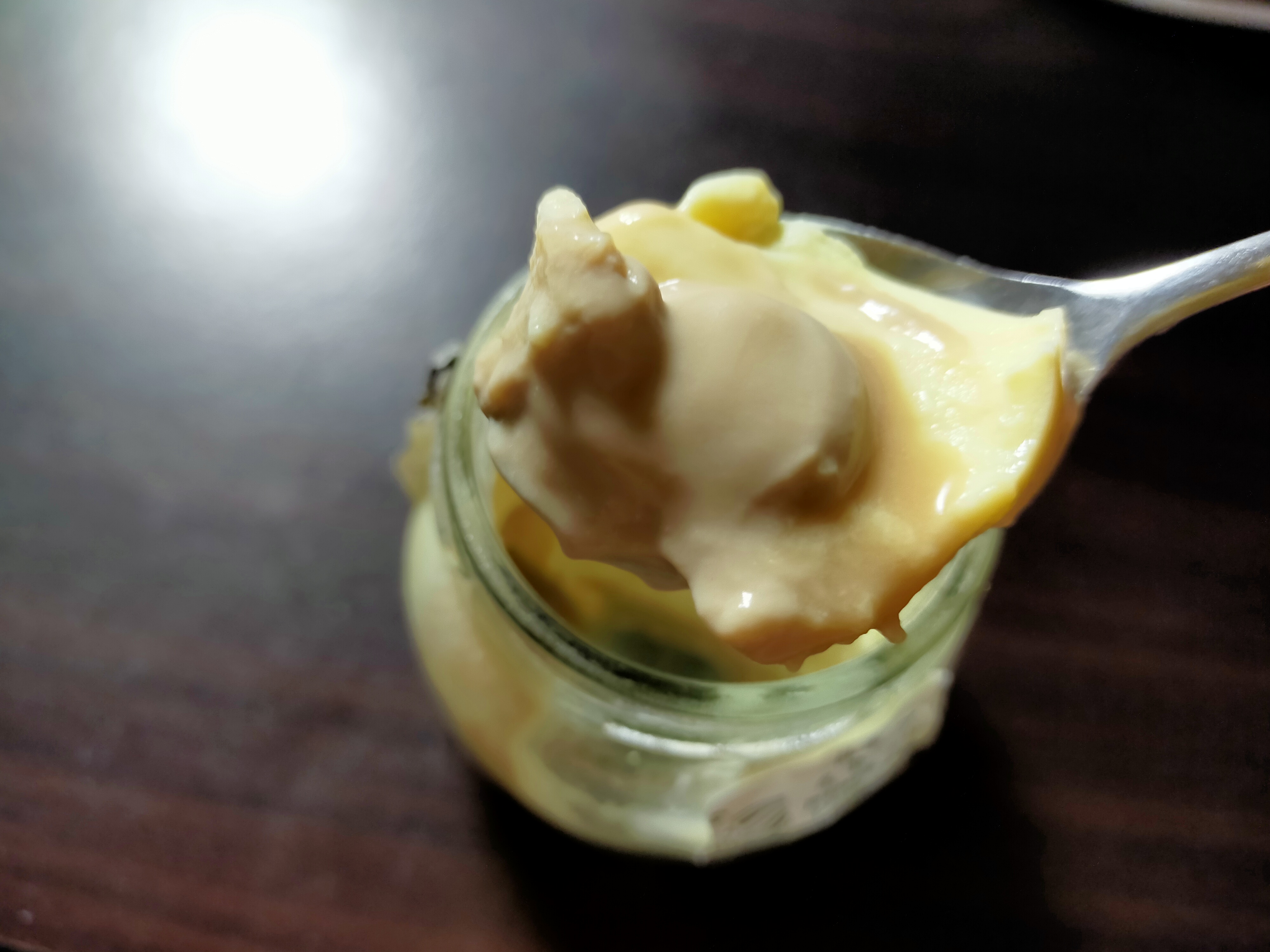 そして、瓶の底にある黒糖ソースまで一気にスプーンを指し、下からソースをすくい上げるようにお召し上がりください。